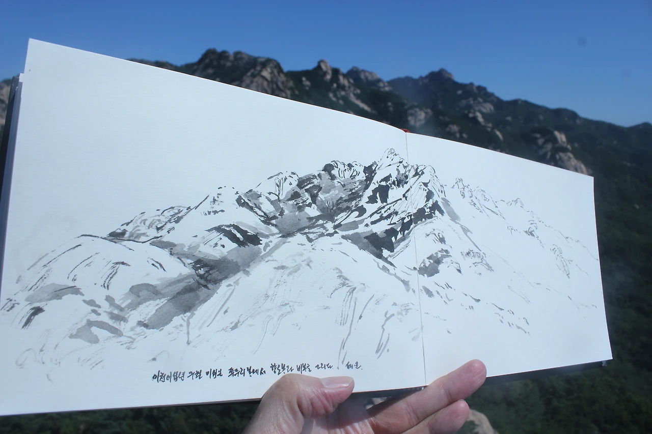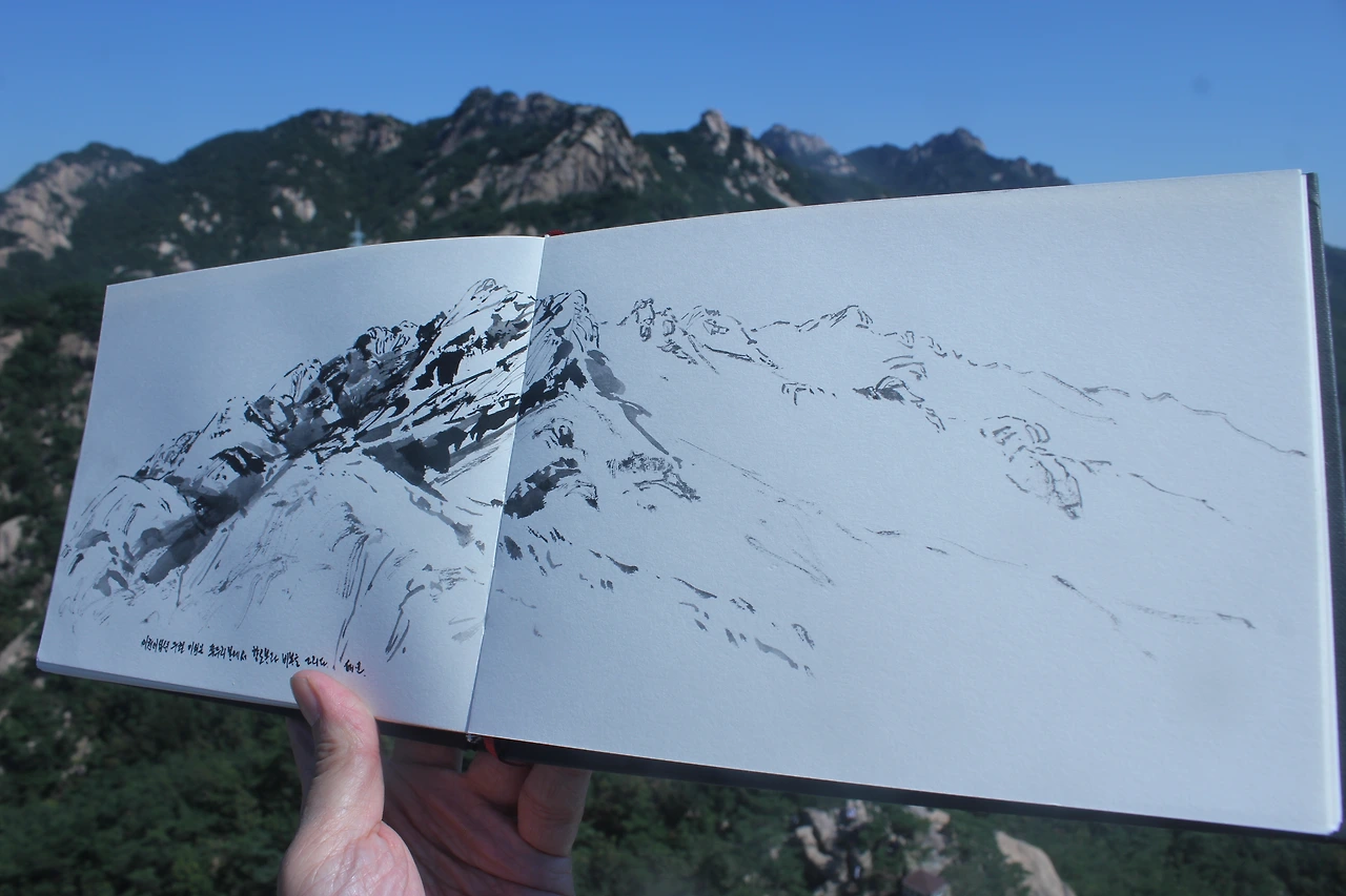 아름다운 산세에 반해 바로 스케치북을 꺼낸다.