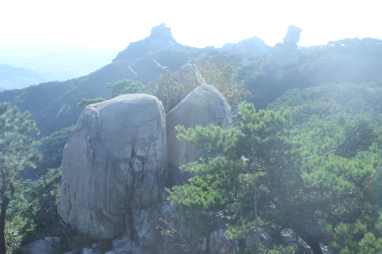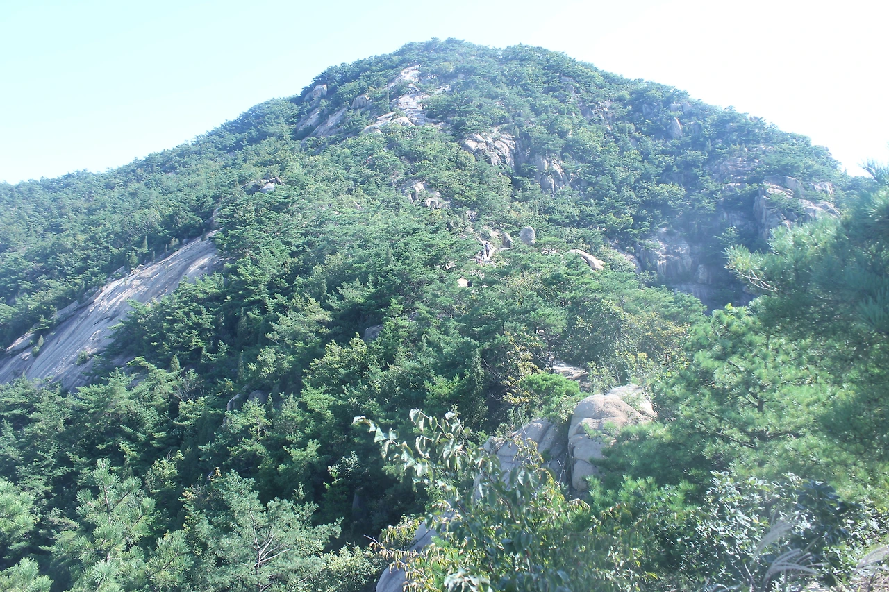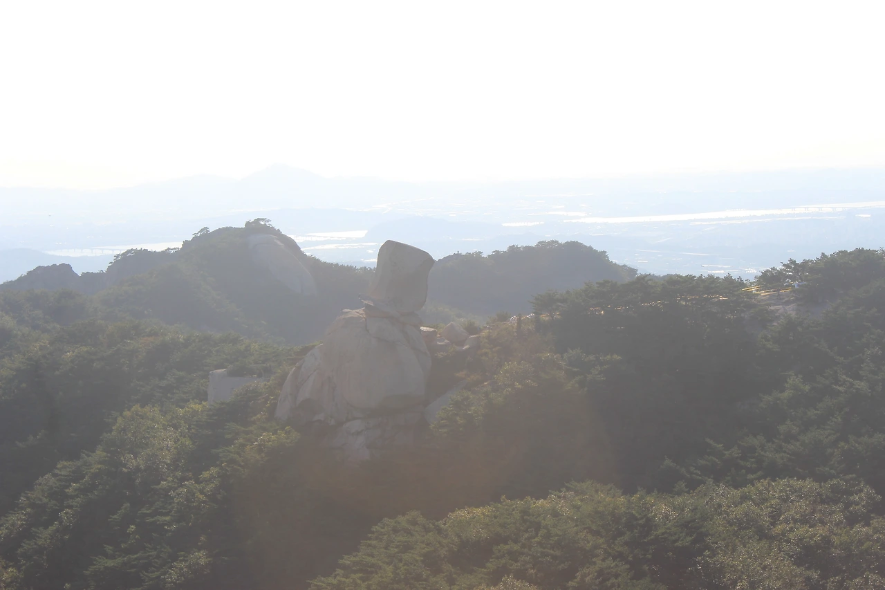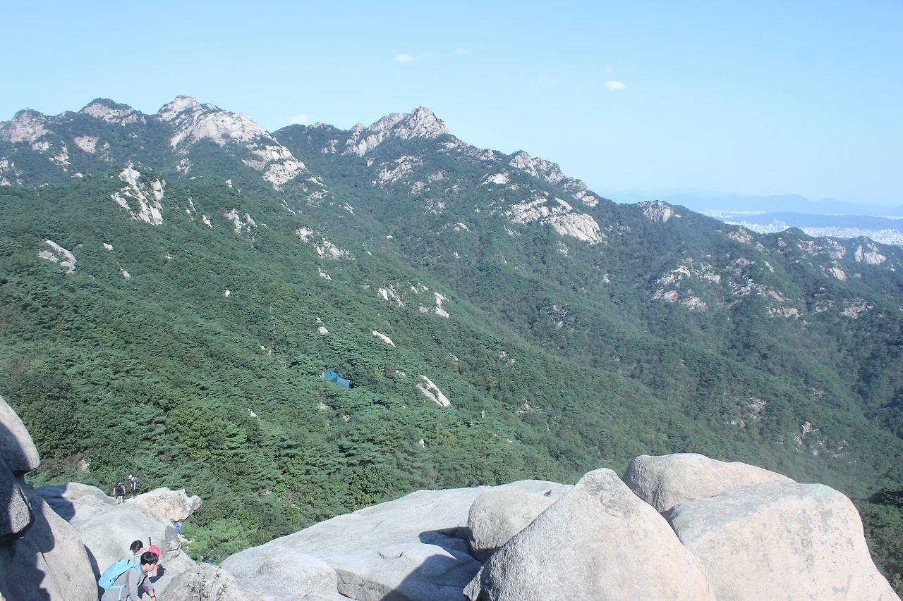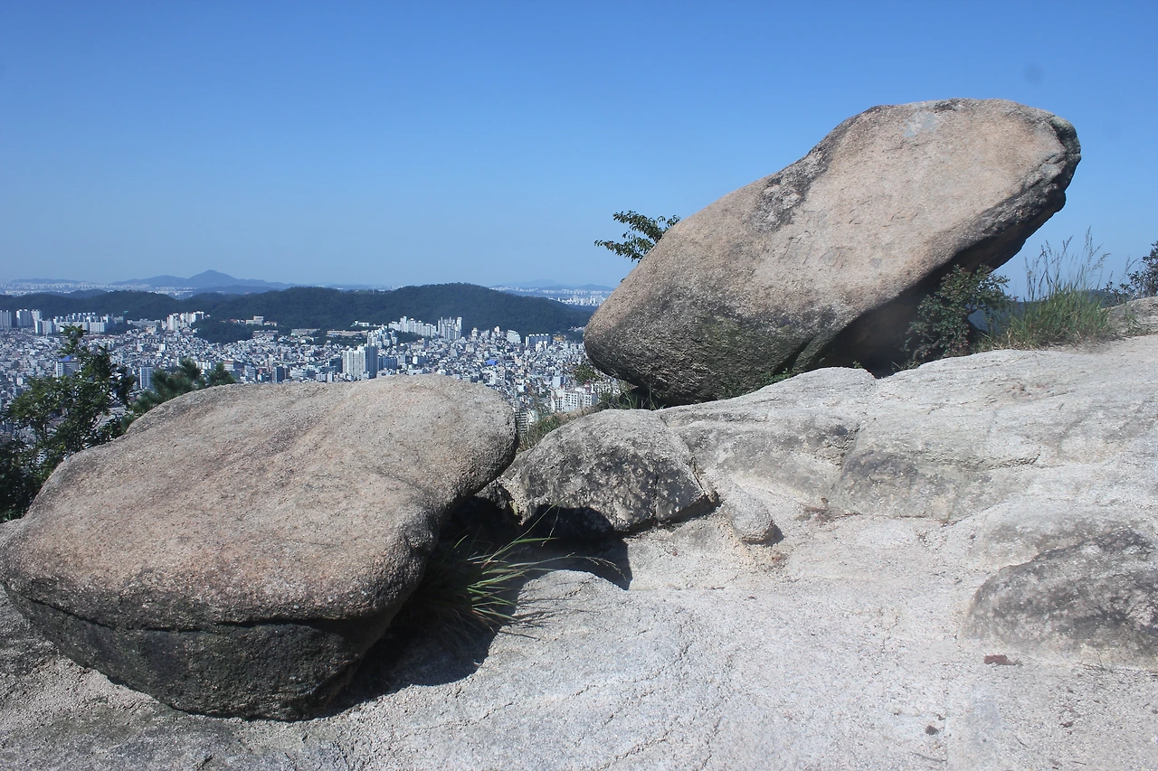 산이 흙이 아니라 커다란 바위로 만들어진 듯 바위의 결을 따라 바위의 층층을 따라 걷다 보니 바람이 시원하고 하늘이 높은 게 완연한 가을 하늘의 시작이다.