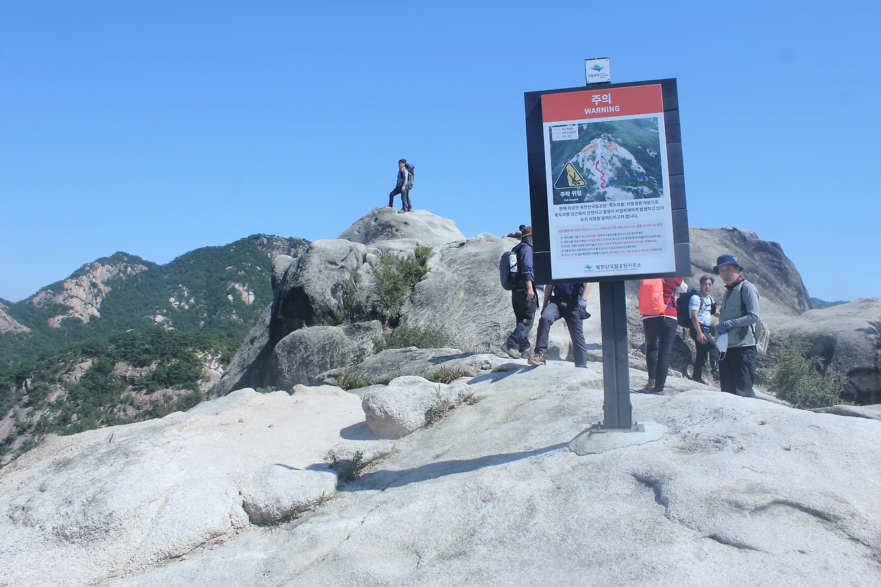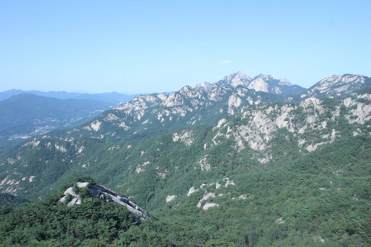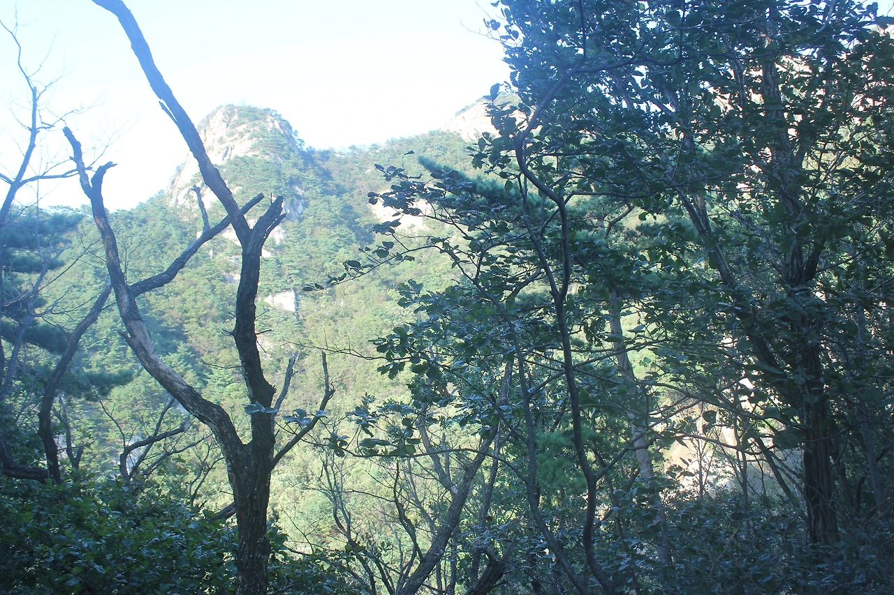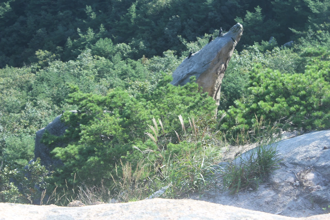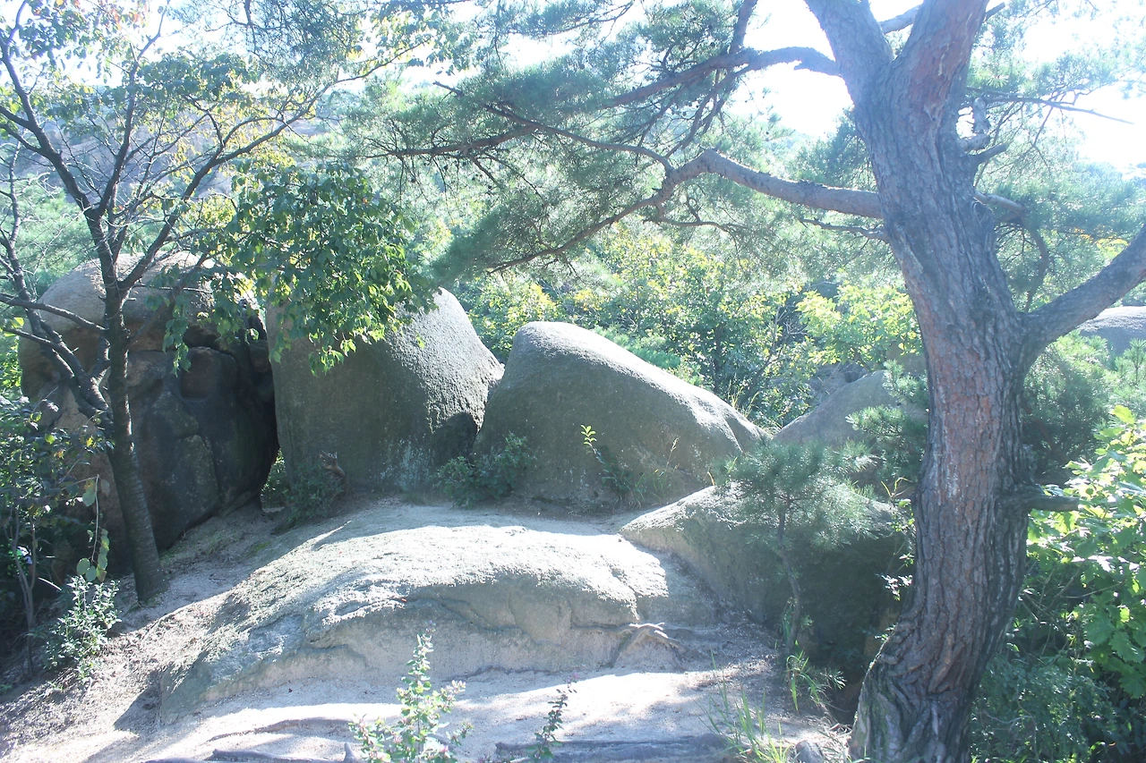 산이 흙이 아니라 커다란 바위로 만들어진 듯 바위의 결을 따라 바위의 층층을 따라 걷다 보니 바람이 시원하고 하늘이 높은 게 완연한 가을 하늘의 시작이다.