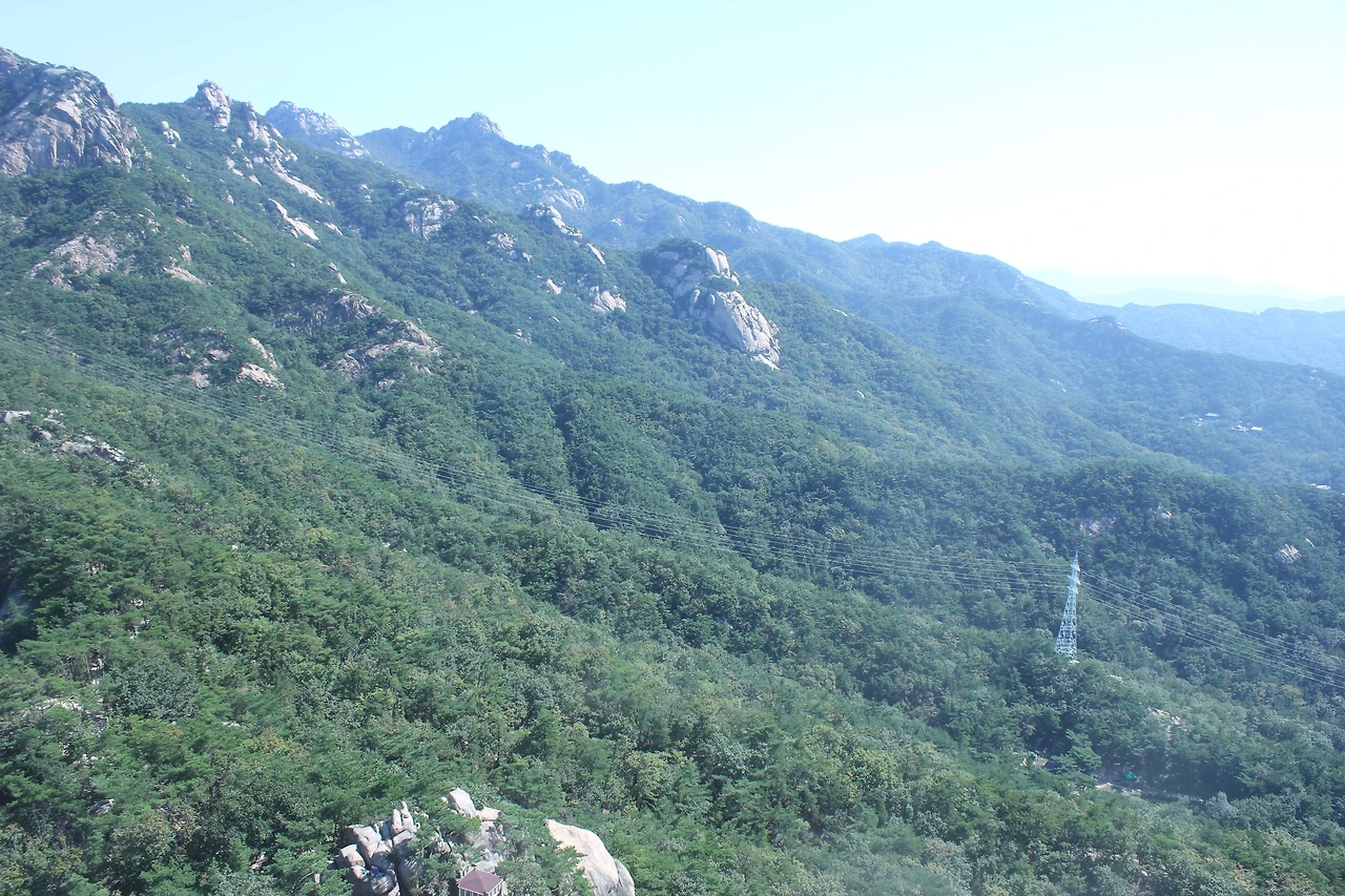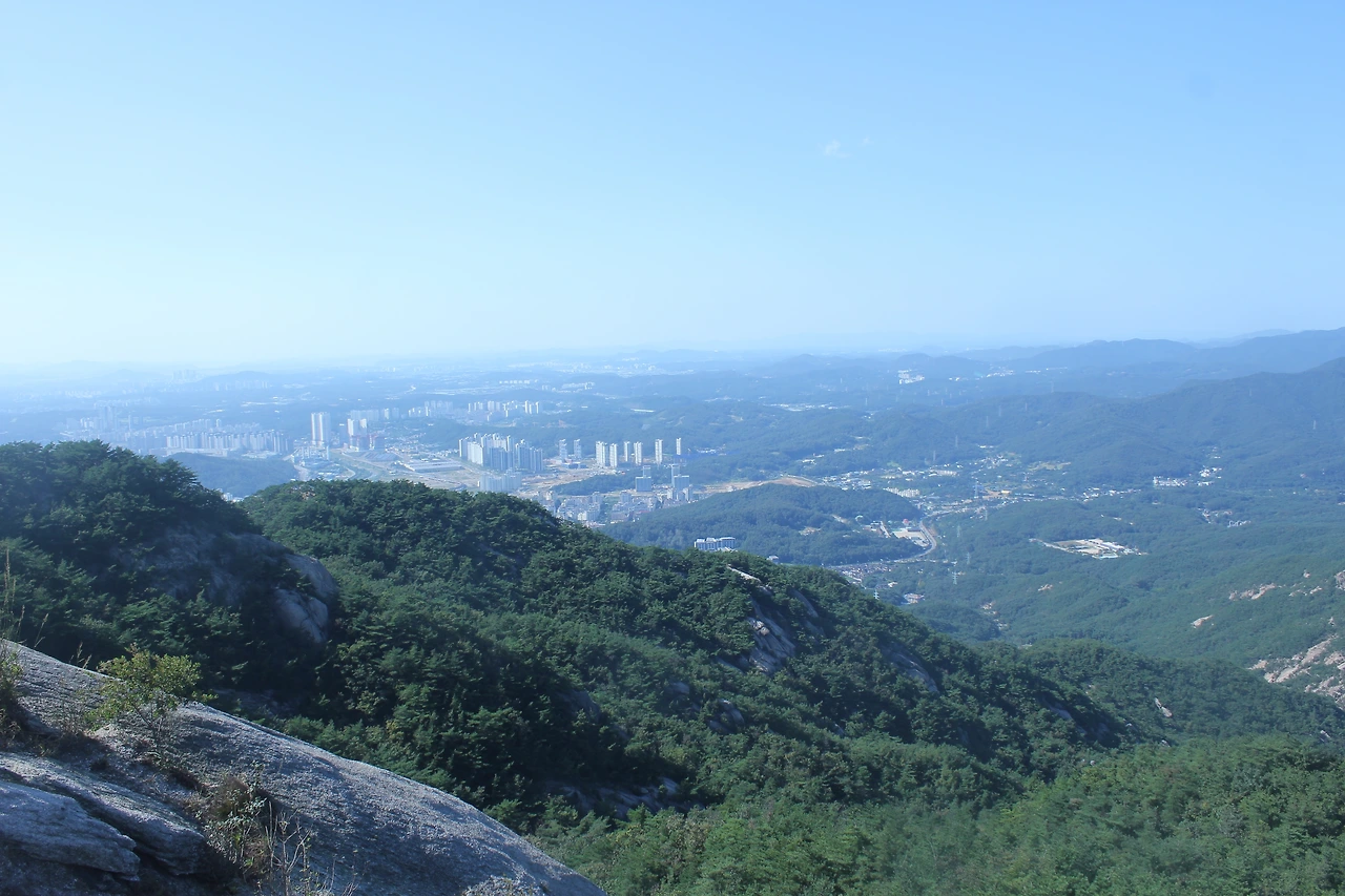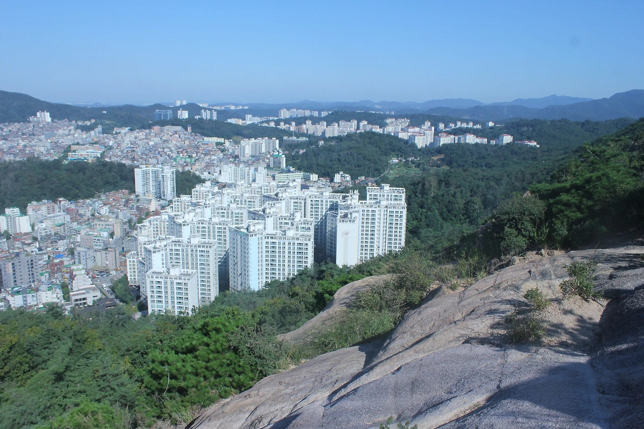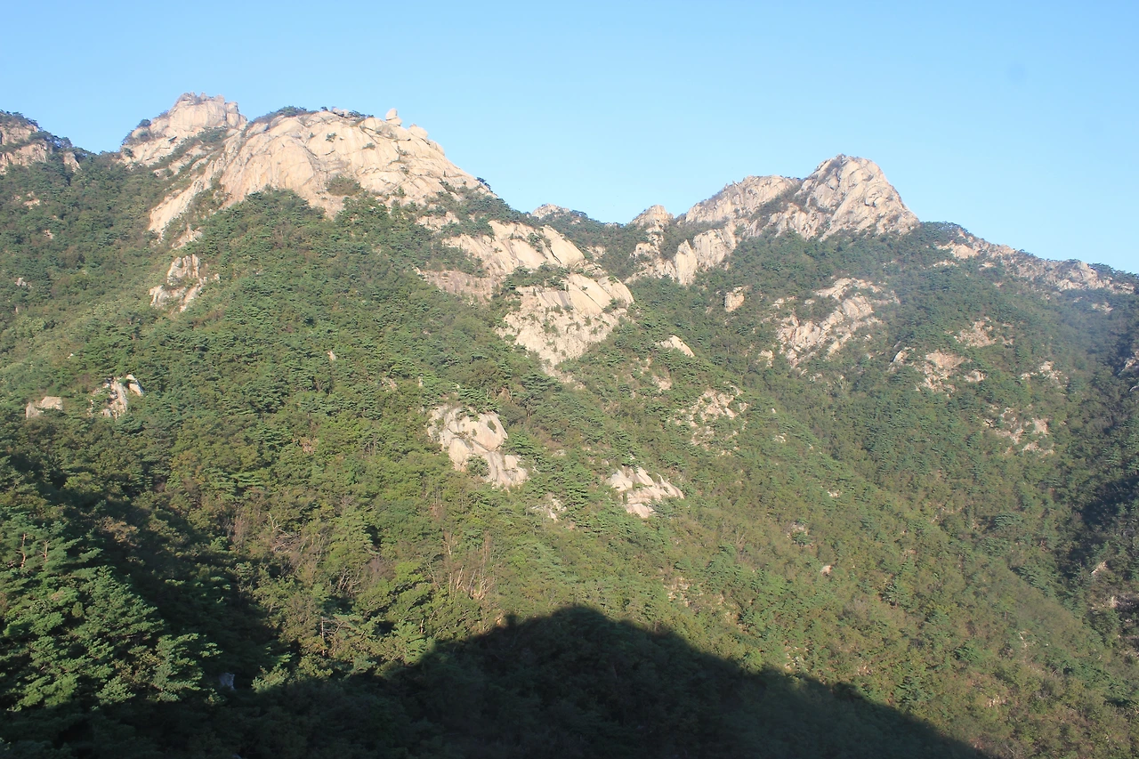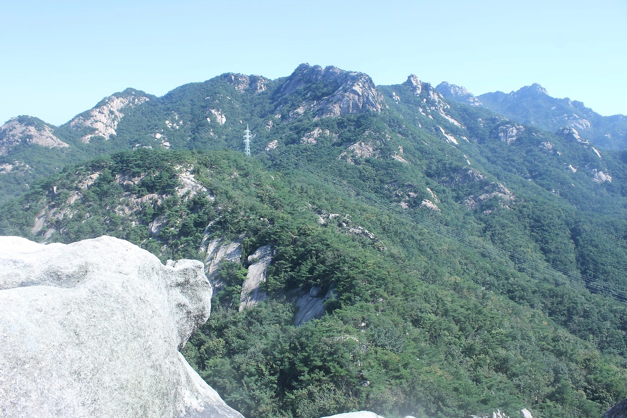 산이 흙이 아니라 커다란 바위로 만들어진 듯 바위의 결을 따라 바위의 층층을 따라 걷다 보니 바람이 시원하고 하늘이 높은 게 완연한 가을 하늘의 시작이다.