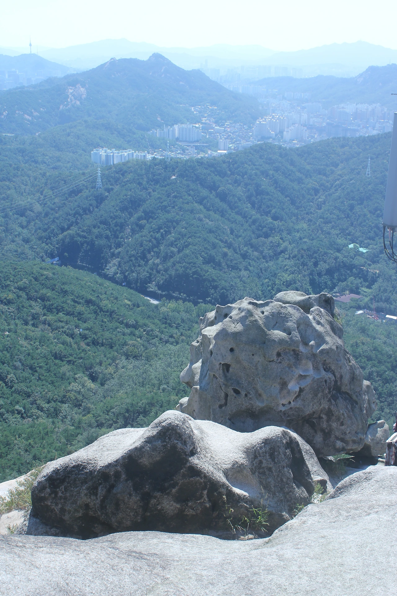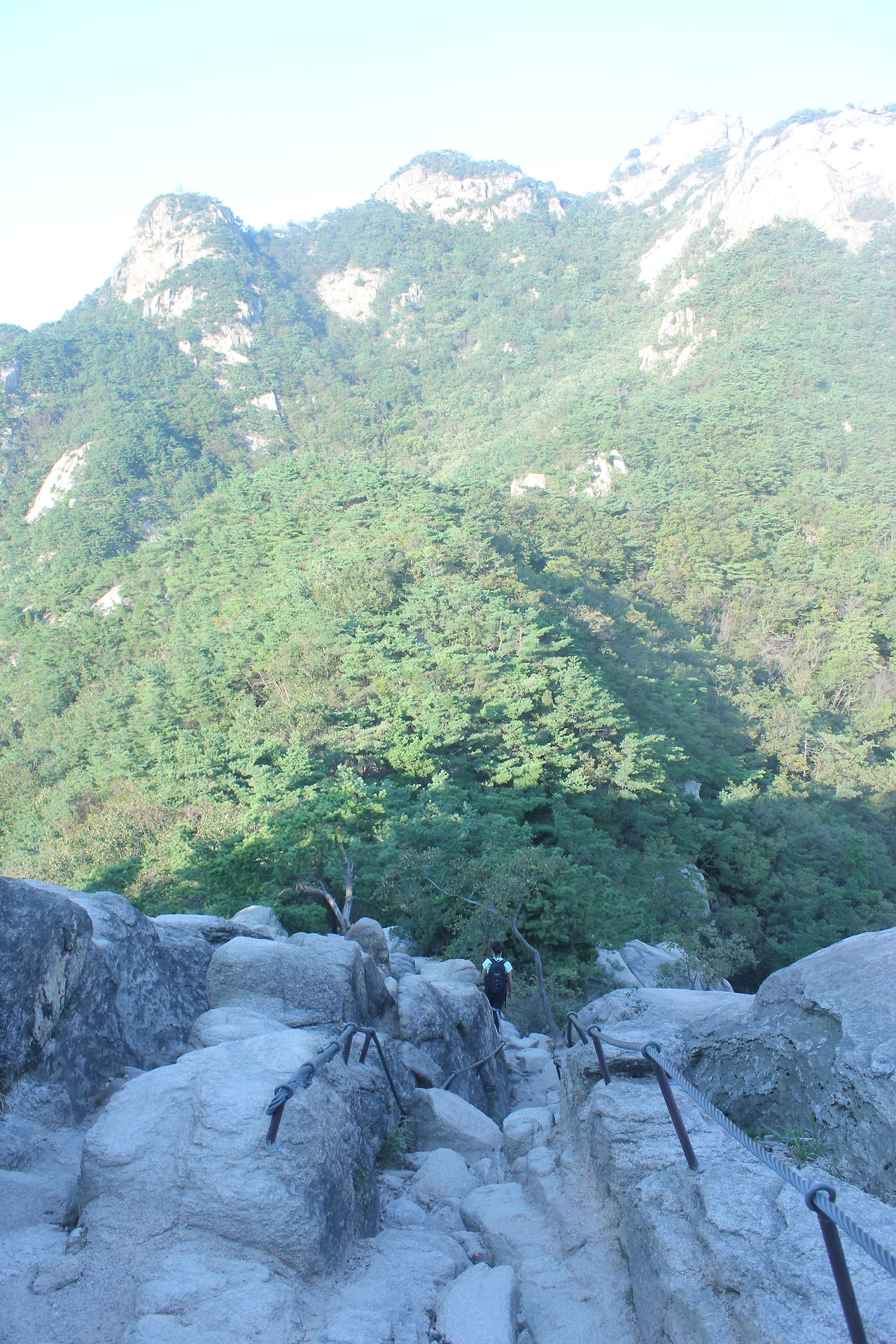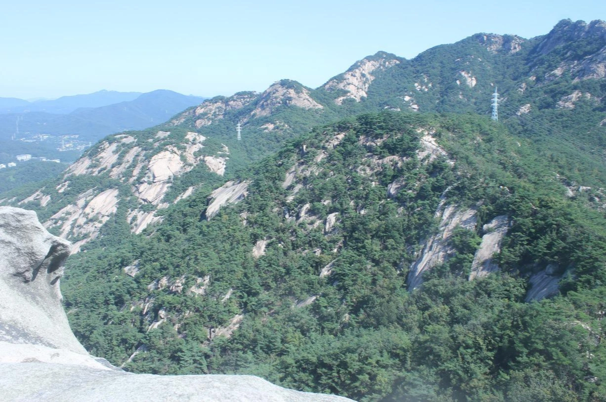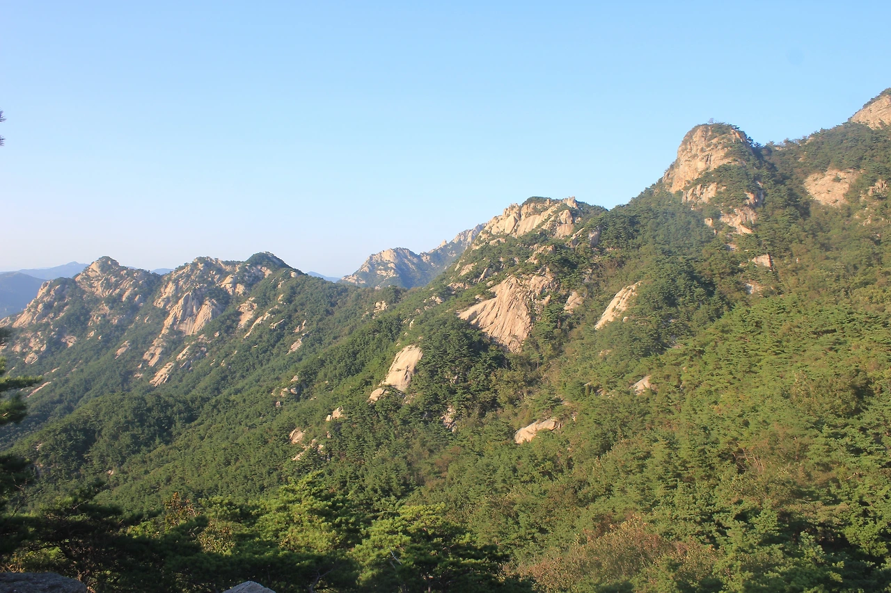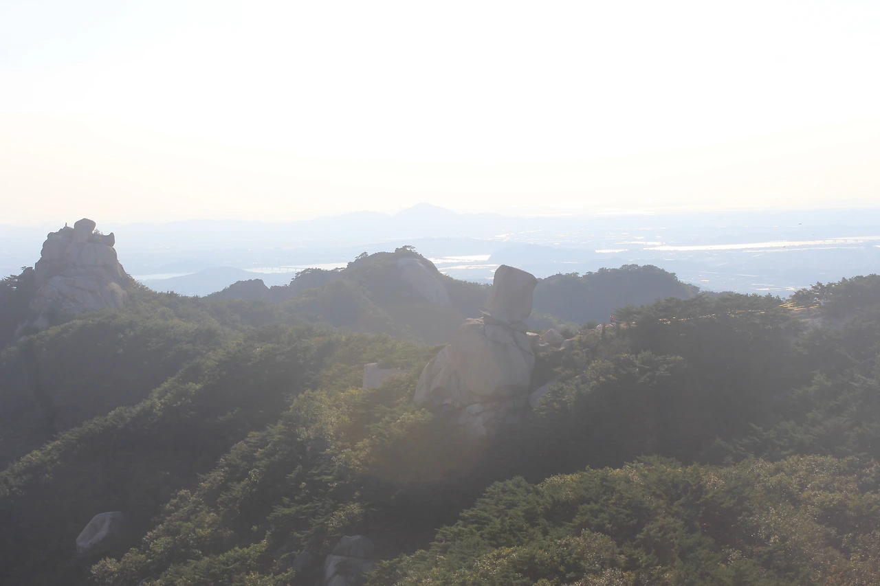 산이 흙이 아니라 커다란 바위로 만들어진 듯 바위의 결을 따라 바위의 층층을 따라 걷다 보니 바람이 시원하고 하늘이 높은 게 완연한 가을 하늘의 시작이다.