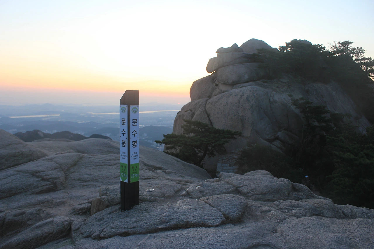 한참을 산을 돌아 '문수봉'으로 오르는 길을 접어들었다가 성곽 따라 오르니 길이 막다른 곳이다. 그 막다른 곳을 돌아 노을이 보이는 곳에서 '사발면'을 먹고 내려가니 '청수동암문'이 보이고, 그 문을 따라 다시 우측으로 꺾으니 나타나는 '문수봉' 거기서 다시 사진을 찍고 하산길을 선택한다.