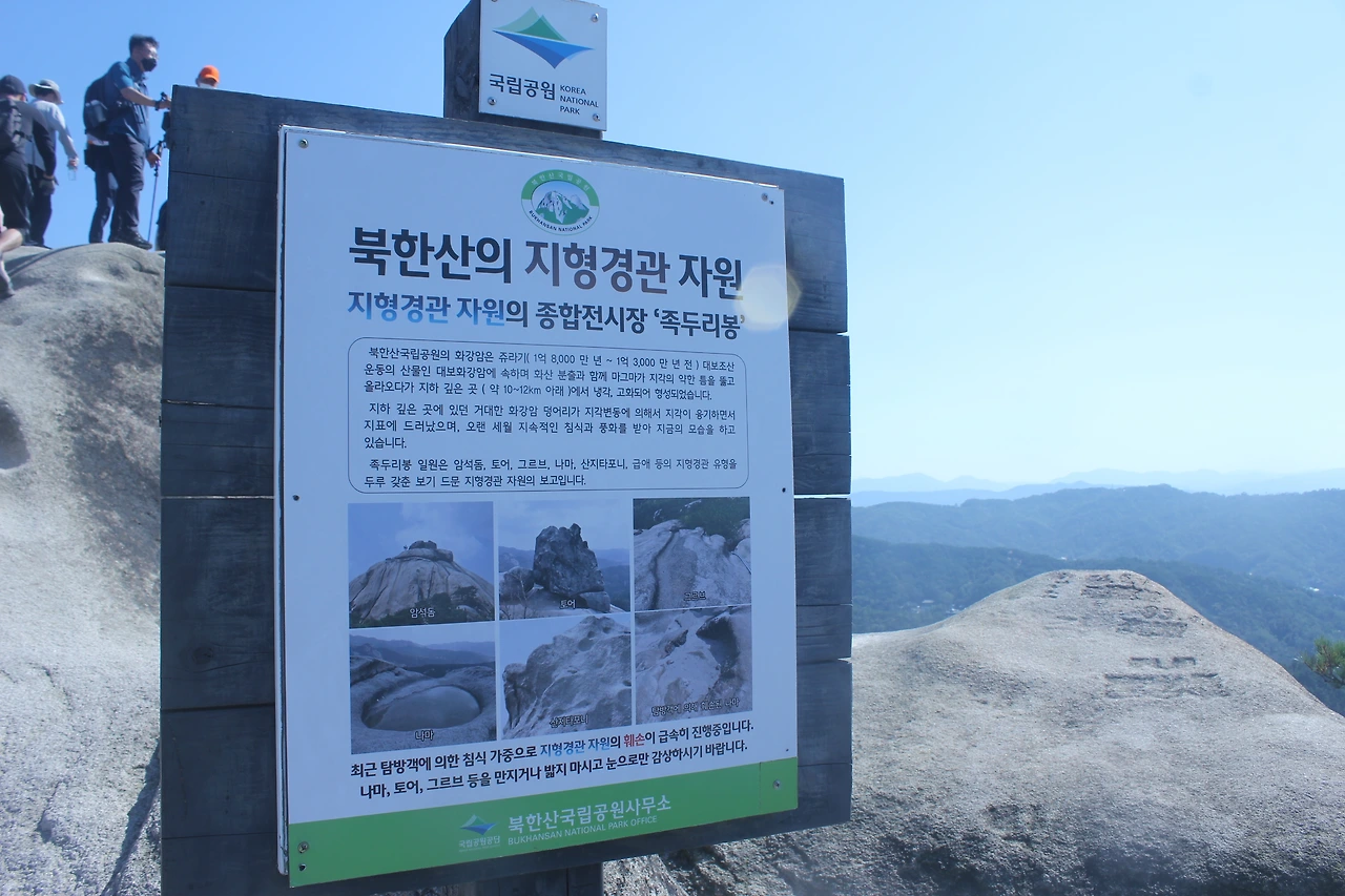 발걸음을 재촉해 바위를 타고 올라 '쪽두리봉'의 정상에 오르니 왼쪽으로 '노적봉'과 '만경대' '백운대'가 비현실적으로 보이고 정면과 오른쪽으로 '향로봉', '비봉', '사모바위', '승가봉'이 늘어서 있다.
