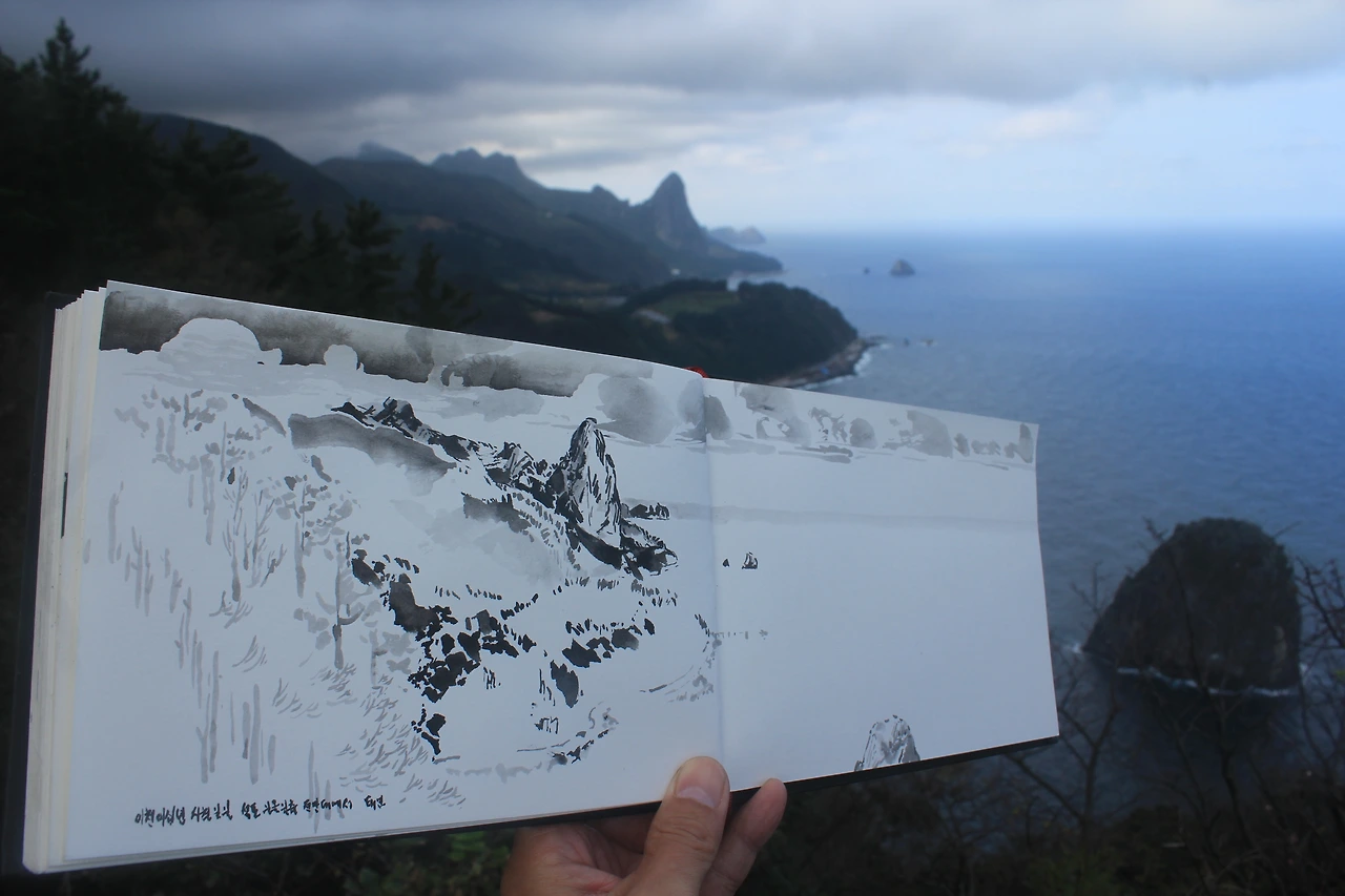 울릉도, 동양화, 한국화, 어반 스케치, 수묵화, 스케치, 김태연작가