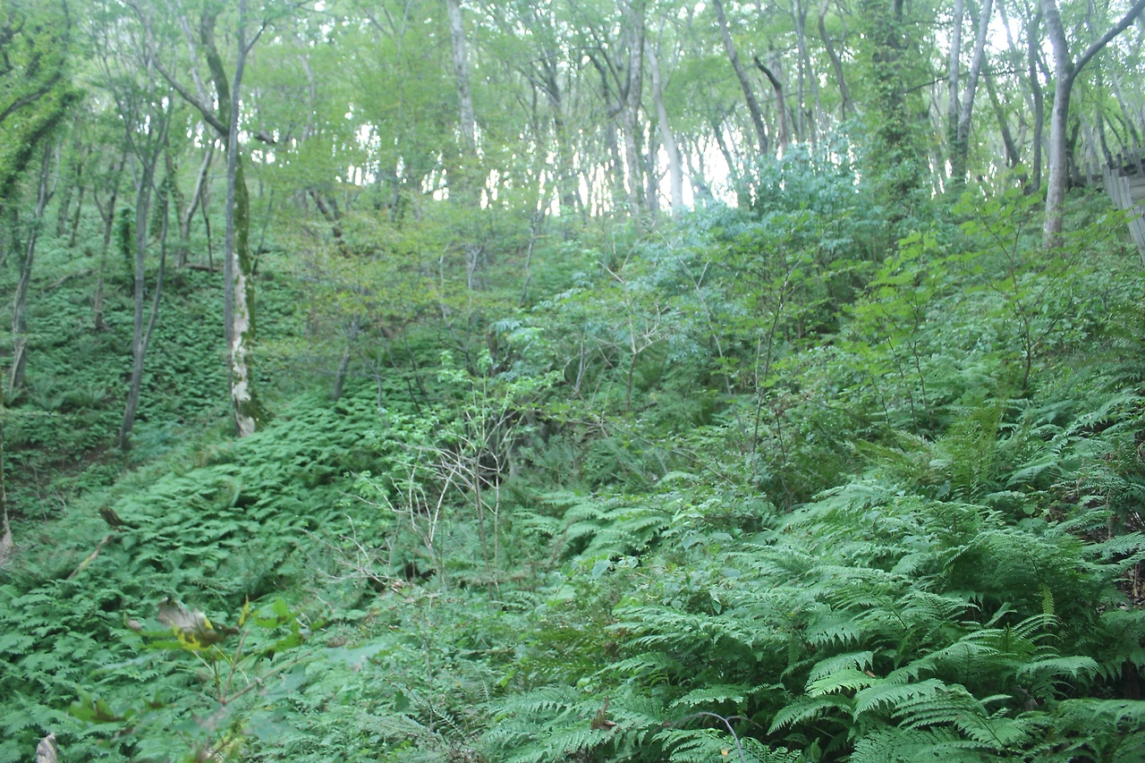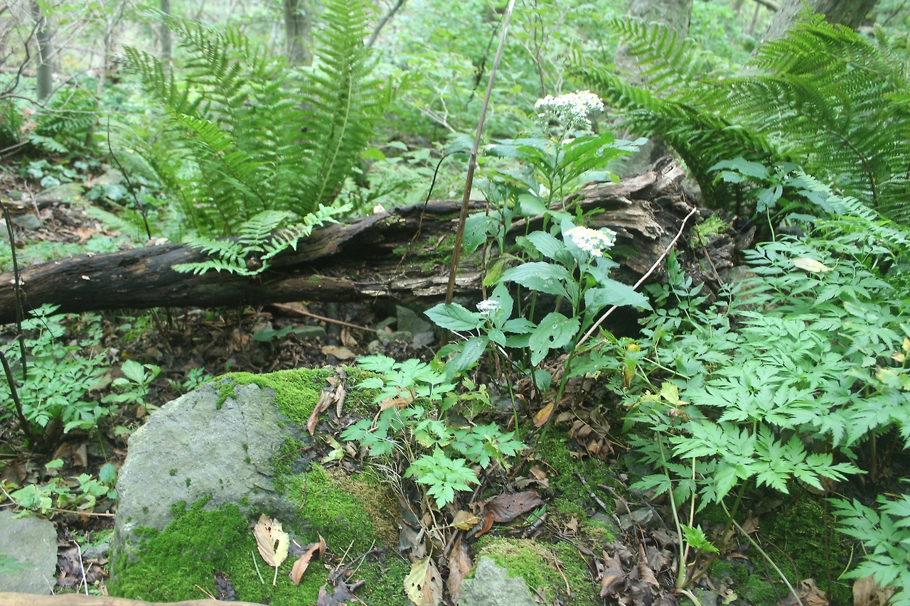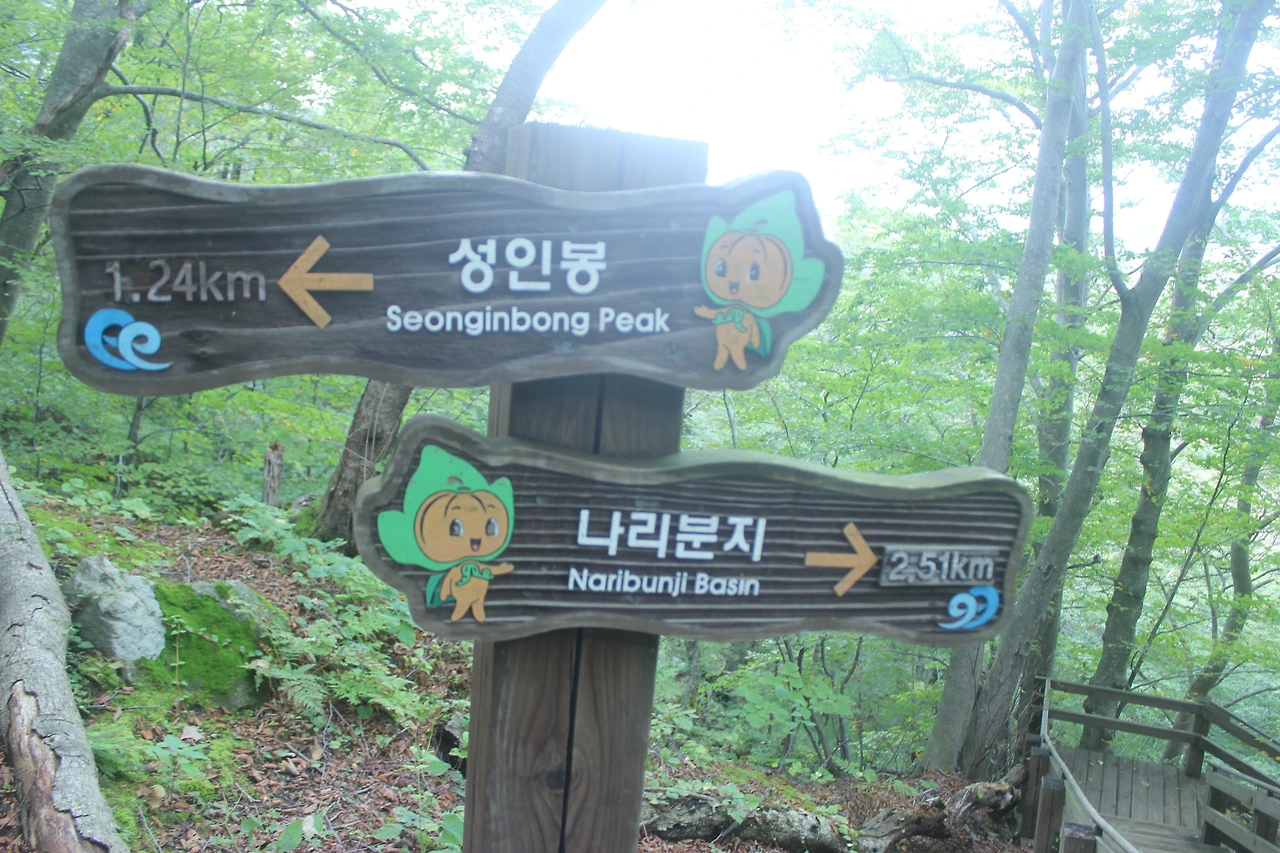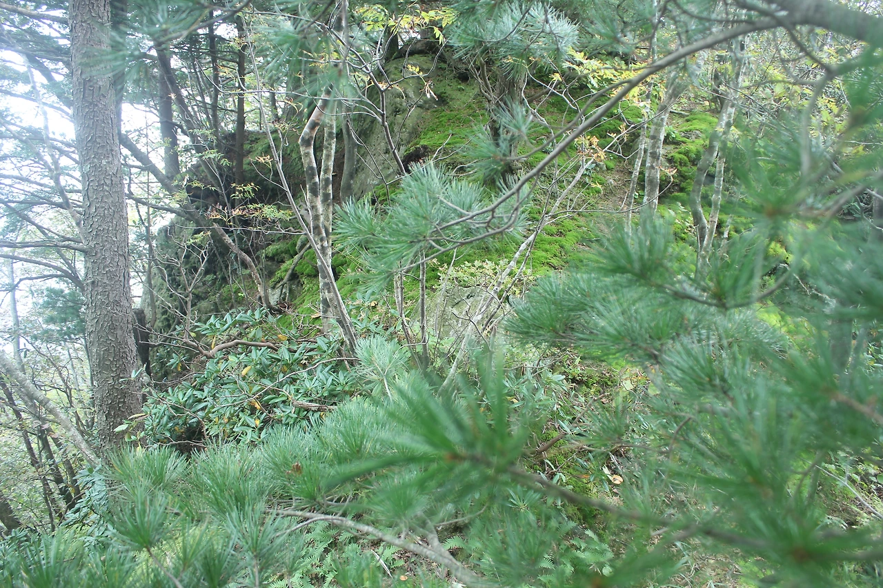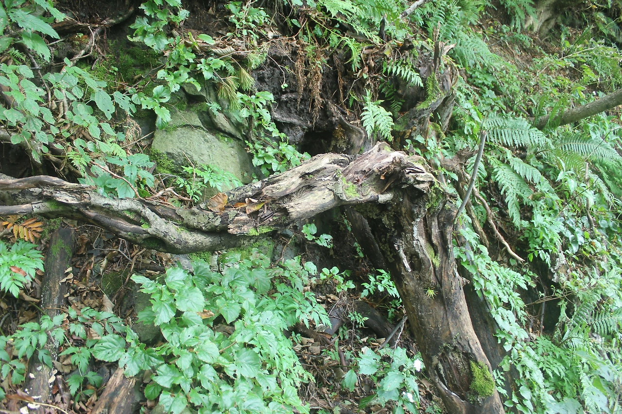 kbs에서 오는 길과 마주치는 삼거리까지 가기 위해 성인봉 방향으로 내 키보다 더 높은 조릿대를 헤치며 보이지 않는 밀림을 한 시간쯤 달리다 지칠 때쯤 드디어 나타나는 '삼거리', 그곳으로 부터는 정리정돈되어있는 길이라 수월하게 올라간다.