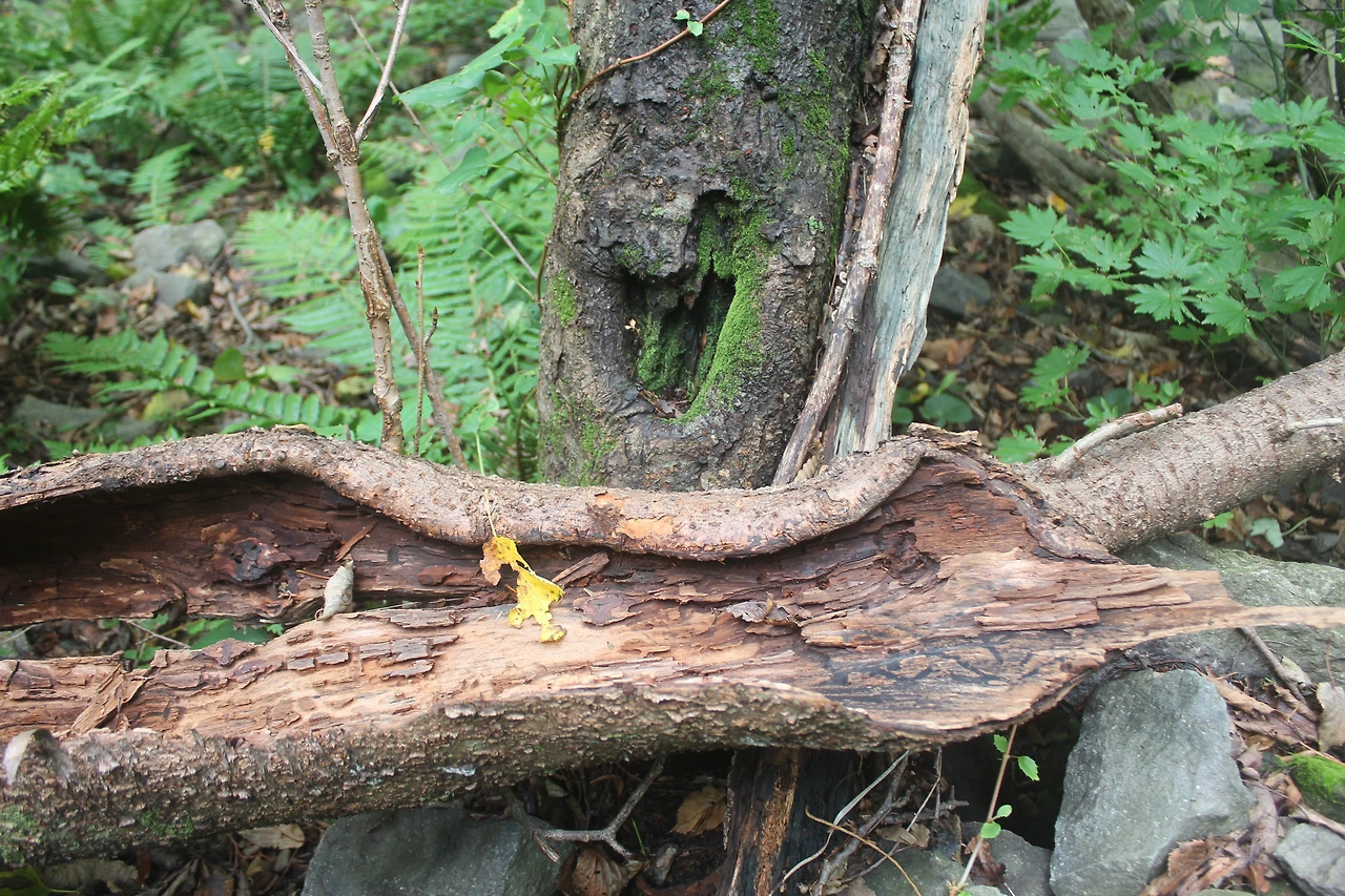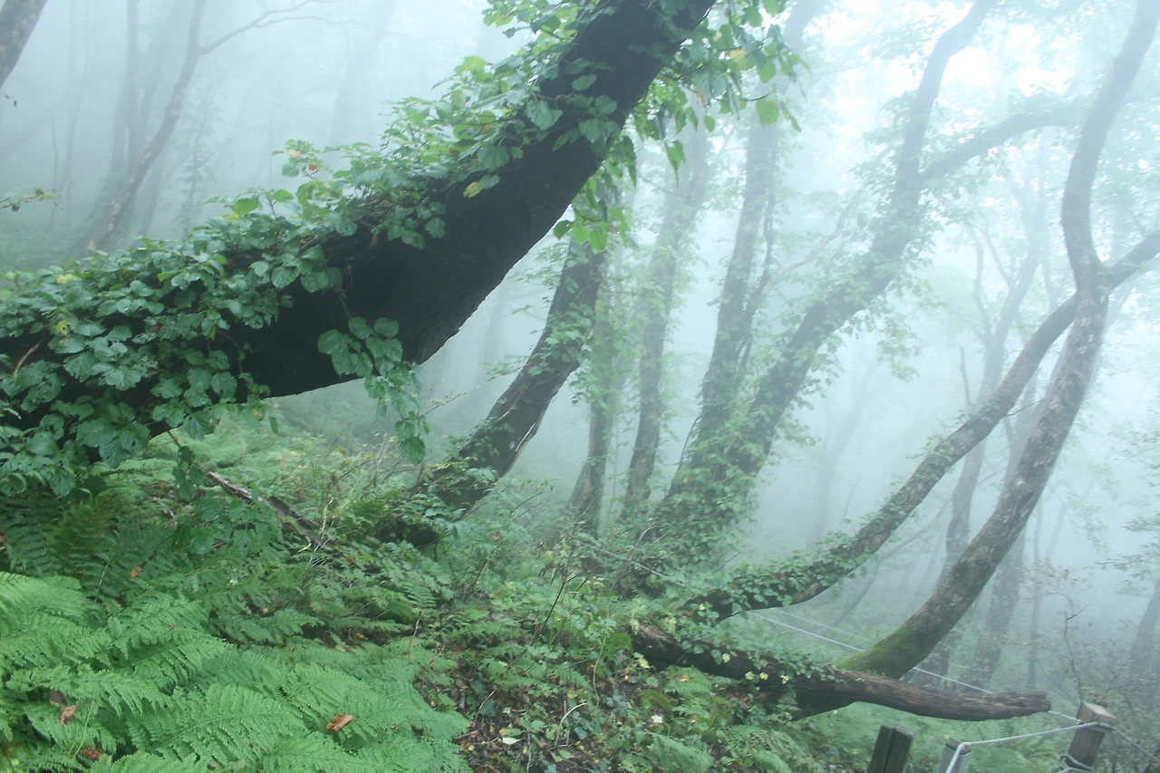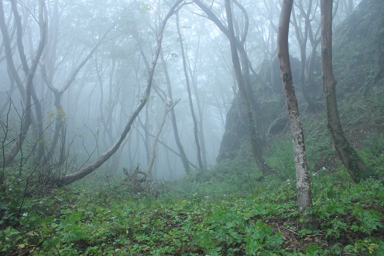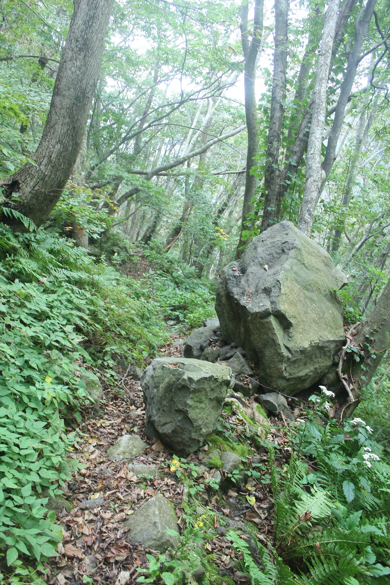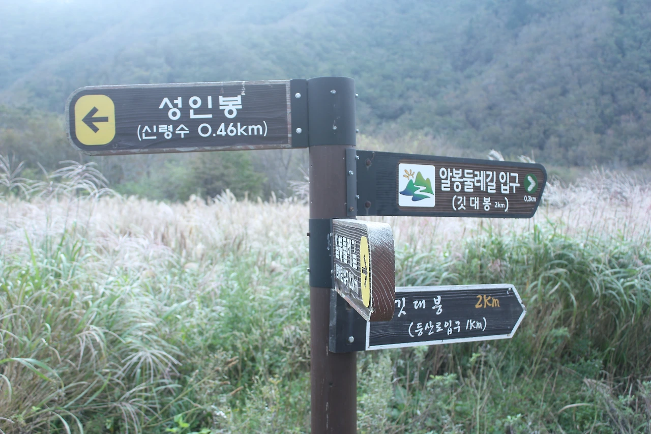 kbs에서 오는 길과 마주치는 삼거리까지 가기 위해 성인봉 방향으로 내 키보다 더 높은 조릿대를 헤치며 보이지 않는 밀림을 한 시간쯤 달리다 지칠 때쯤 드디어 나타나는 '삼거리', 그곳으로 부터는 정리정돈되어있는 길이라 수월하게 올라간다.