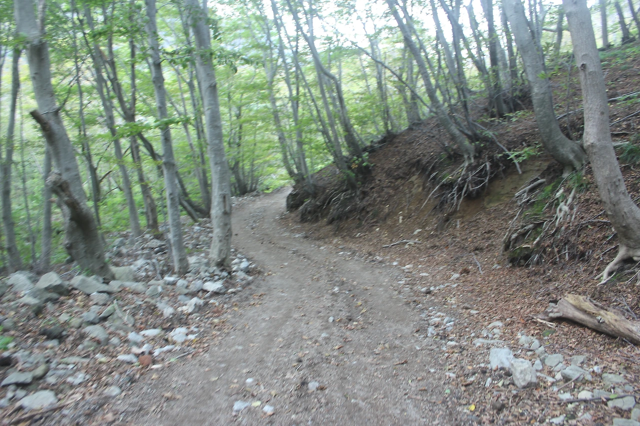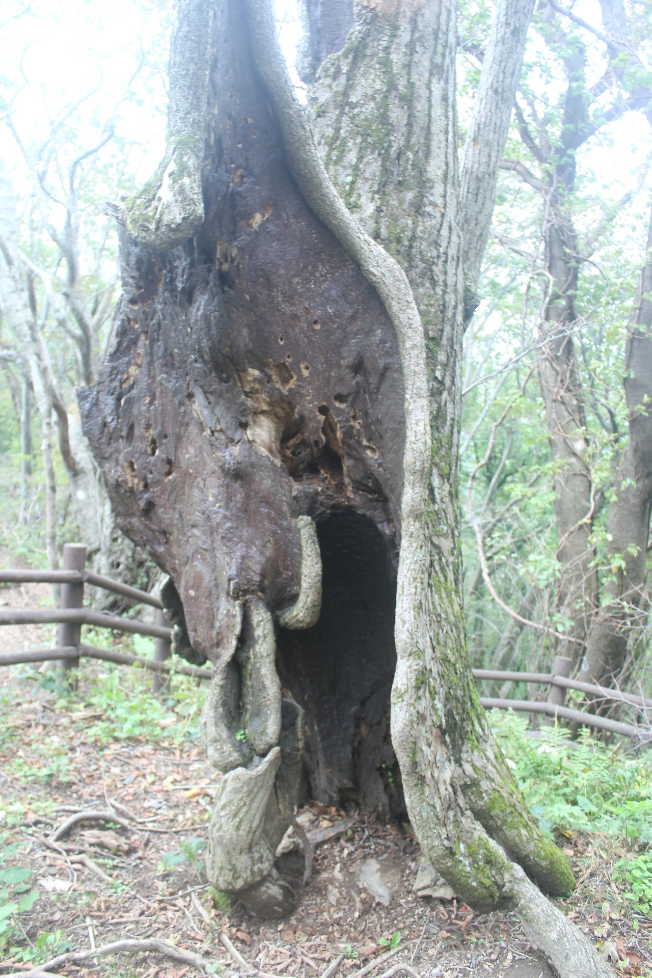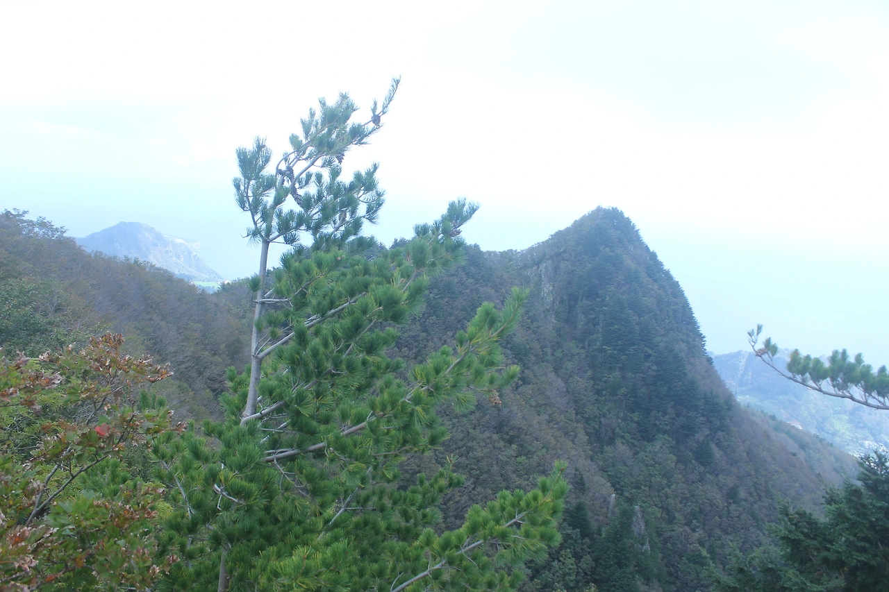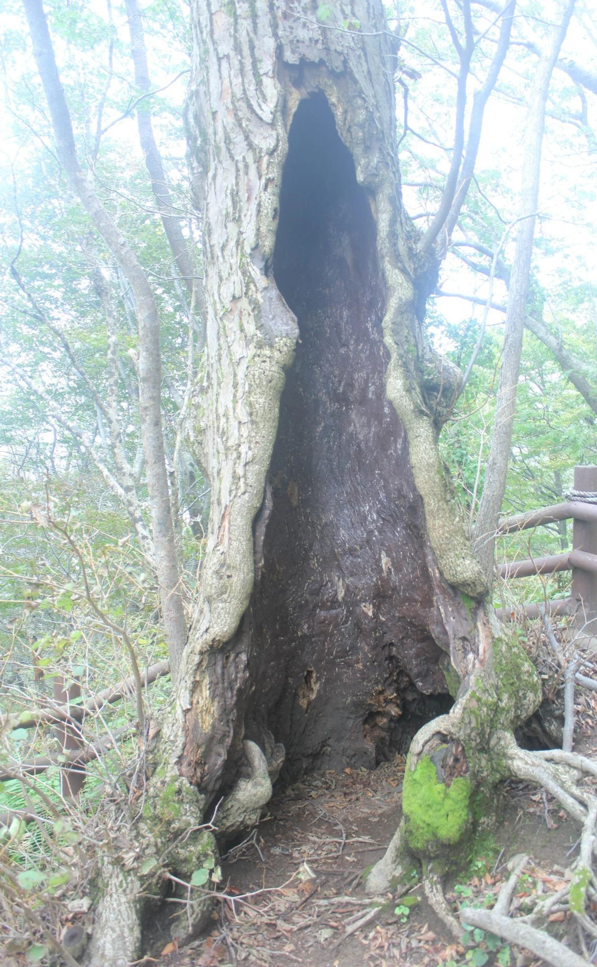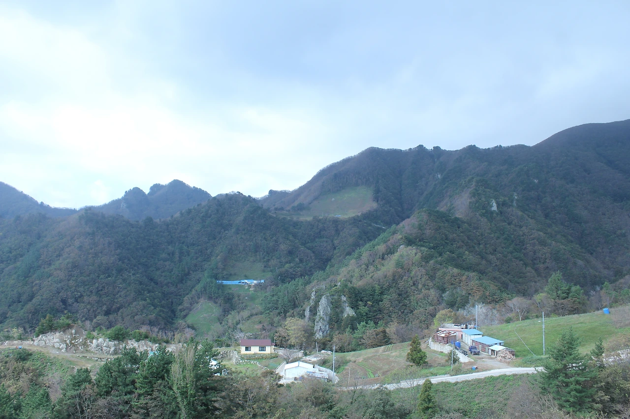 조금 내려가면 있는 '성인수 약수터'는 그냥 지나고 오래된 잘생긴 나무들이 자리 잡은 산길을 한 시간 넘게 내려가다 보니 '깃대봉'과 '나리분지' 그리고 '알봉'과 '송곳산' 이 있는 분지 형태의 아름다운 공간이 마치 우리나라가 아닌 인도네시아 아름다운 섬나라에 와 있는 듯한 착각을 하게 만든다.