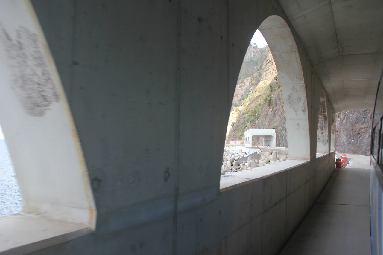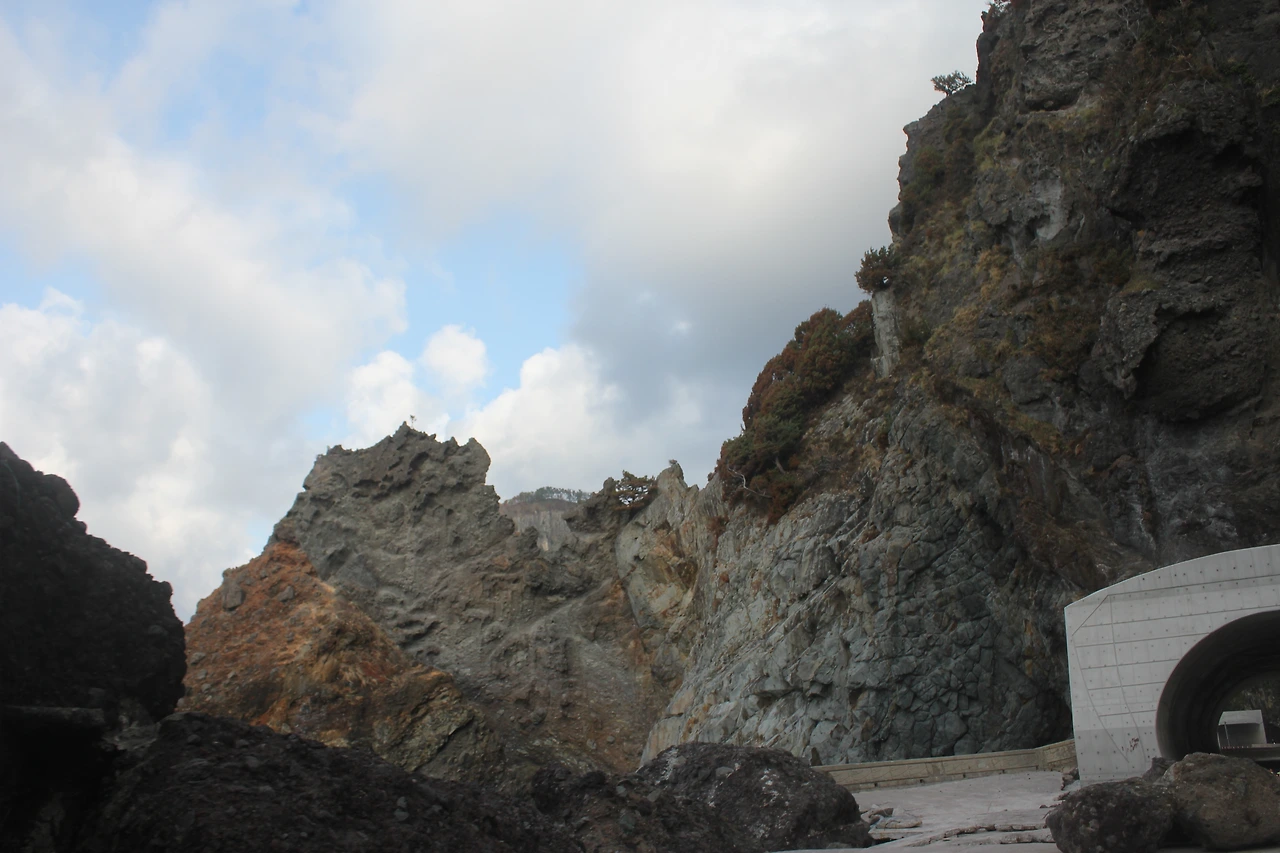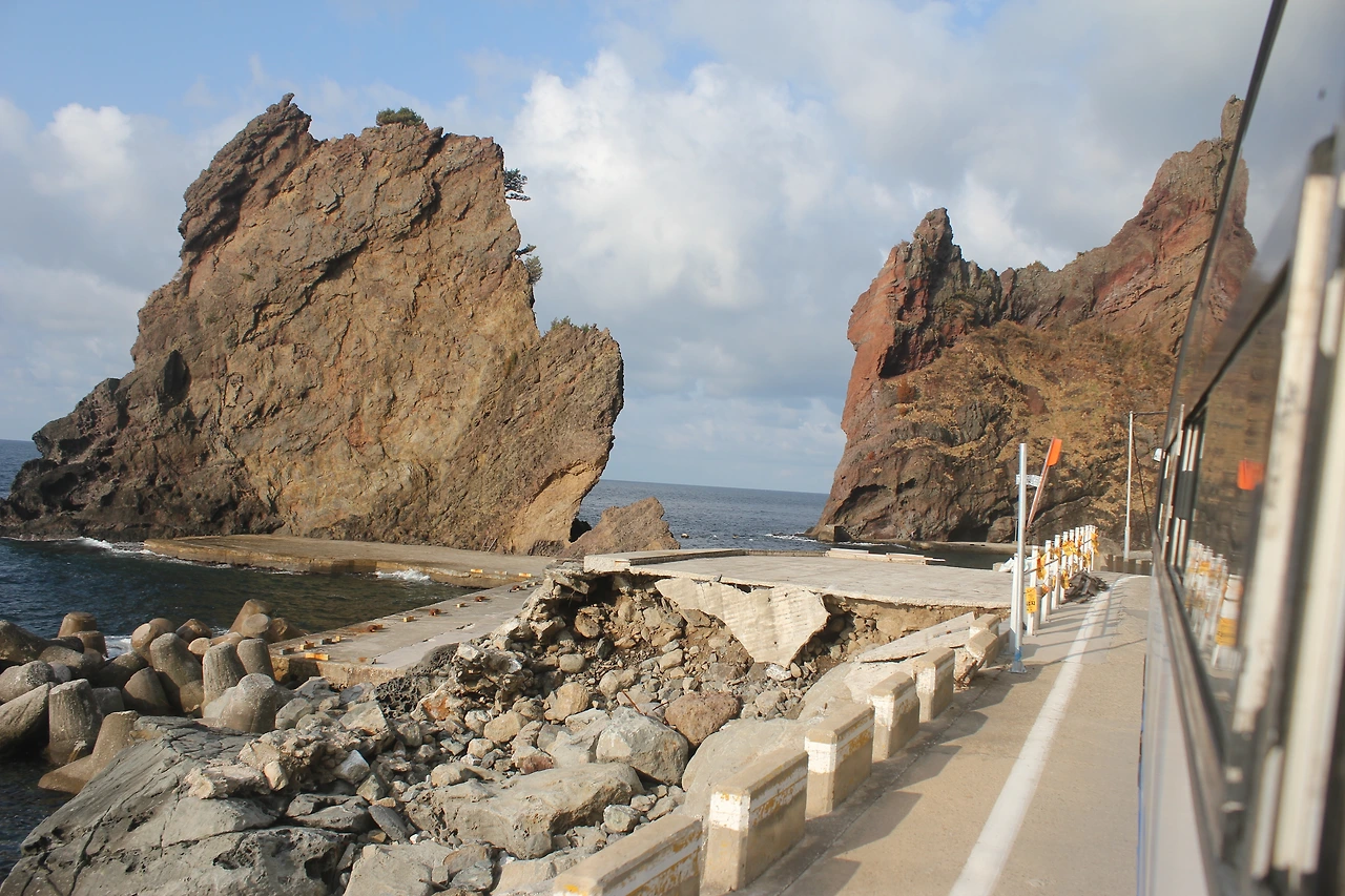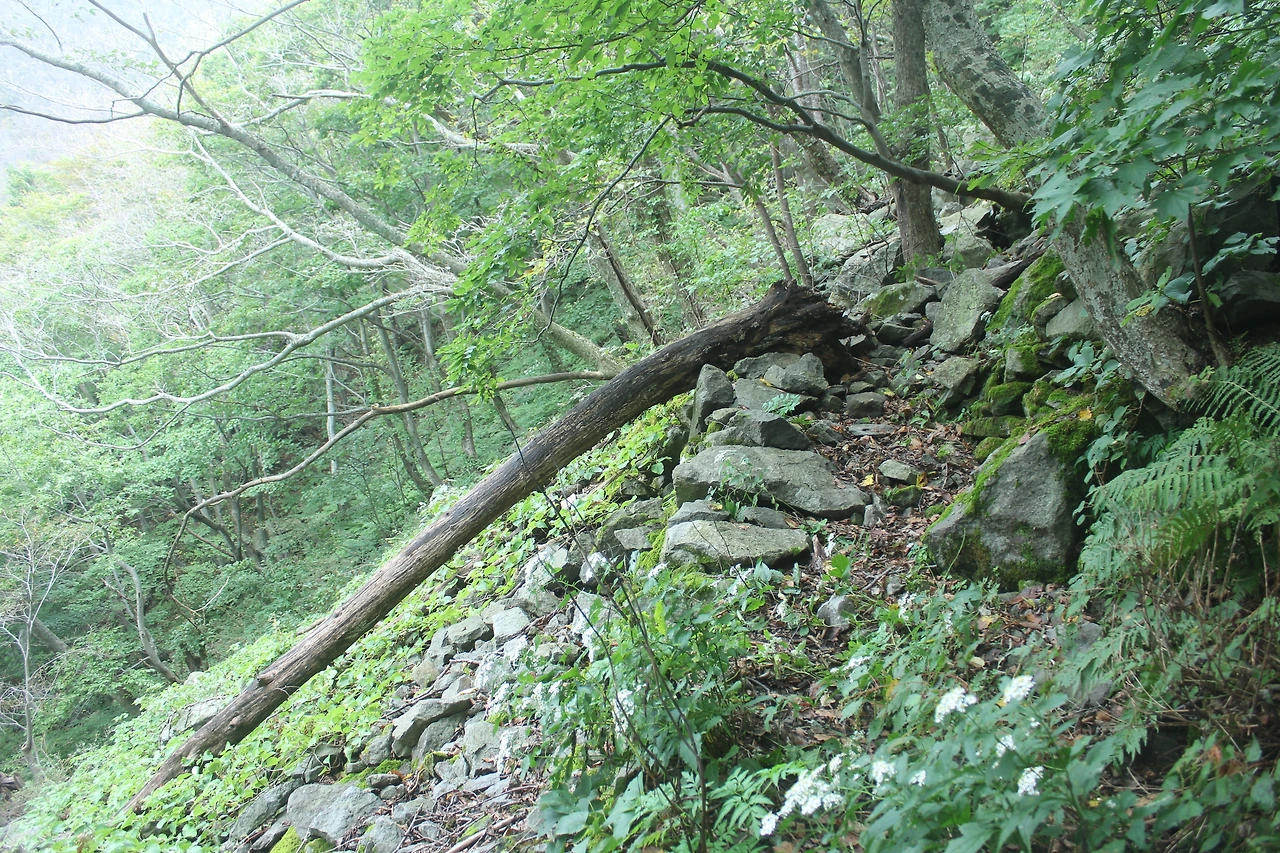 낙석으로 유실된 구간이 나타난다.