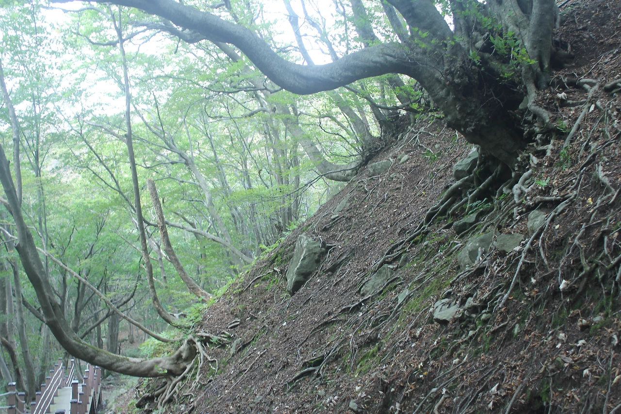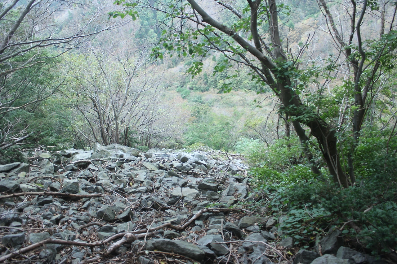 경사도 경사지만 돌들이 밀려서 굴러 떨어질까 봐 조마조마하게 되는 위험한 구간이다.