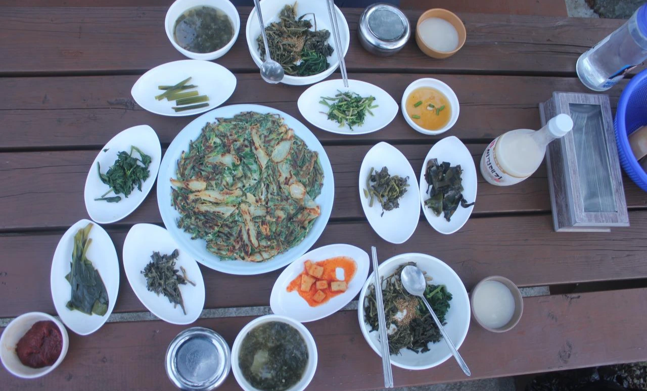 시간이 많지 않아 보여 빨리 보내주고 그들이 먹었다는 '나리 식당'에 가서 '산채비빔밥'과 '더덕 전' '조껍데기 술'을 시켜 바닥까지 보이며 맛있게 먹고 '나리분지'를 둘러본다.