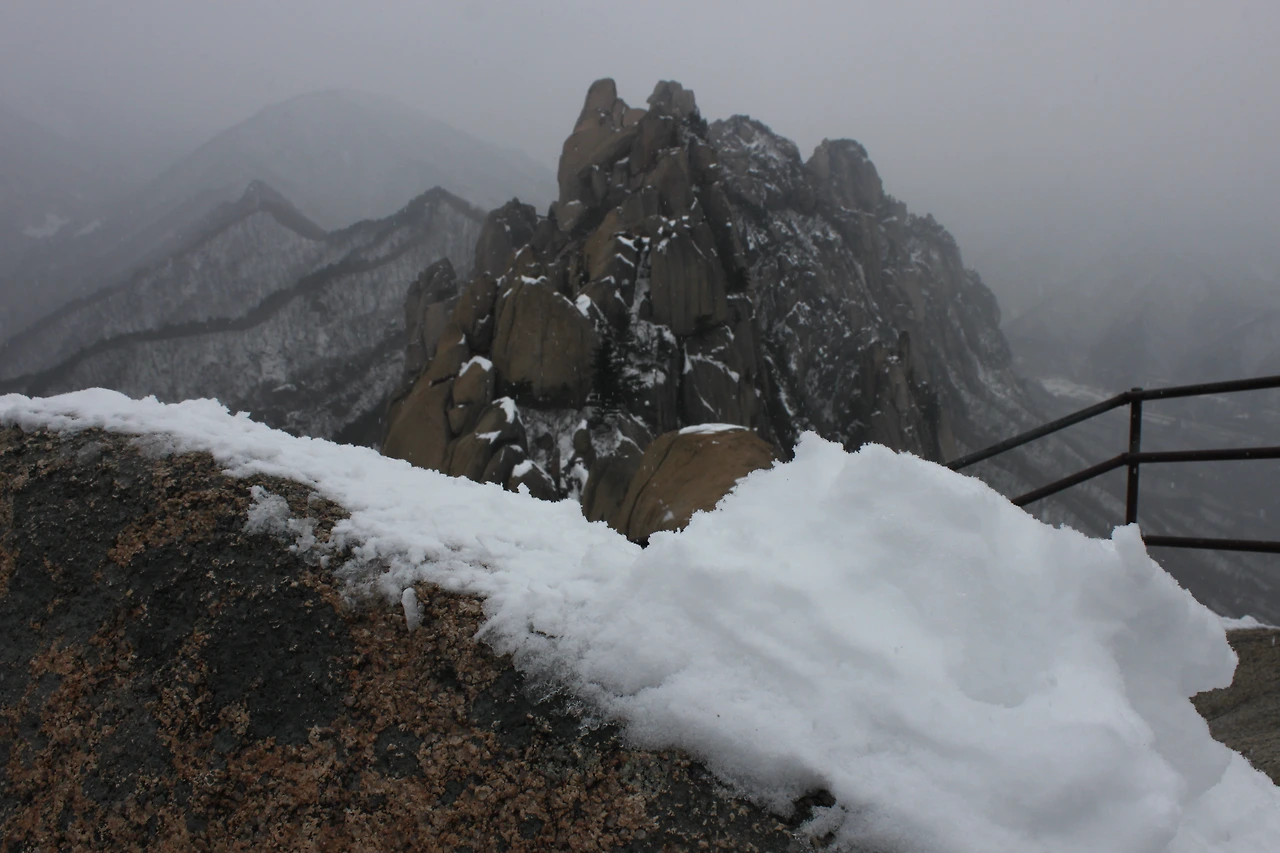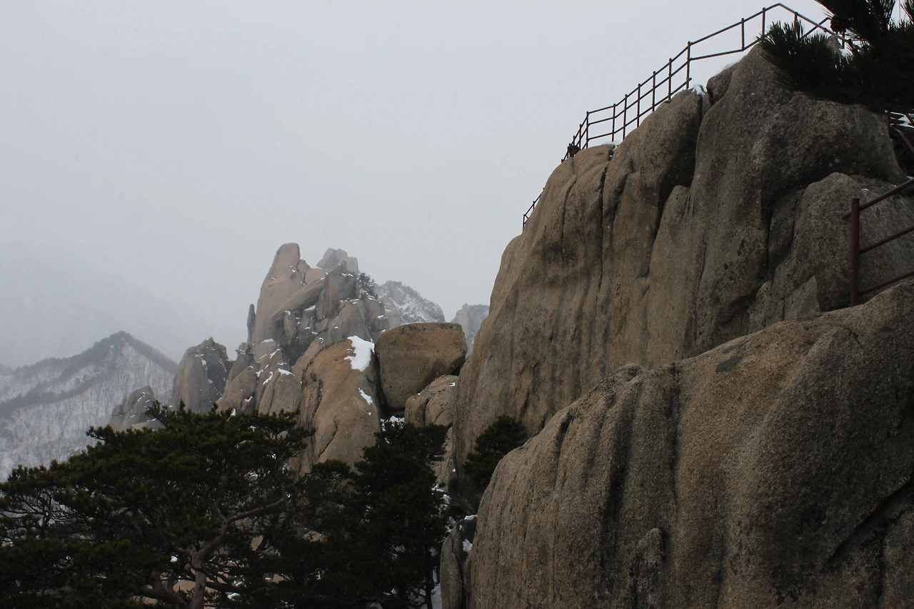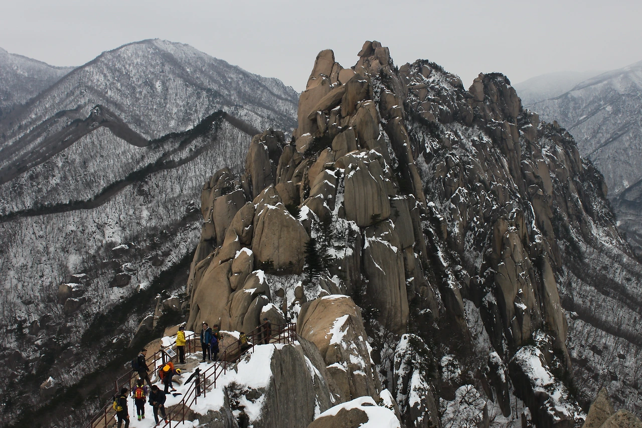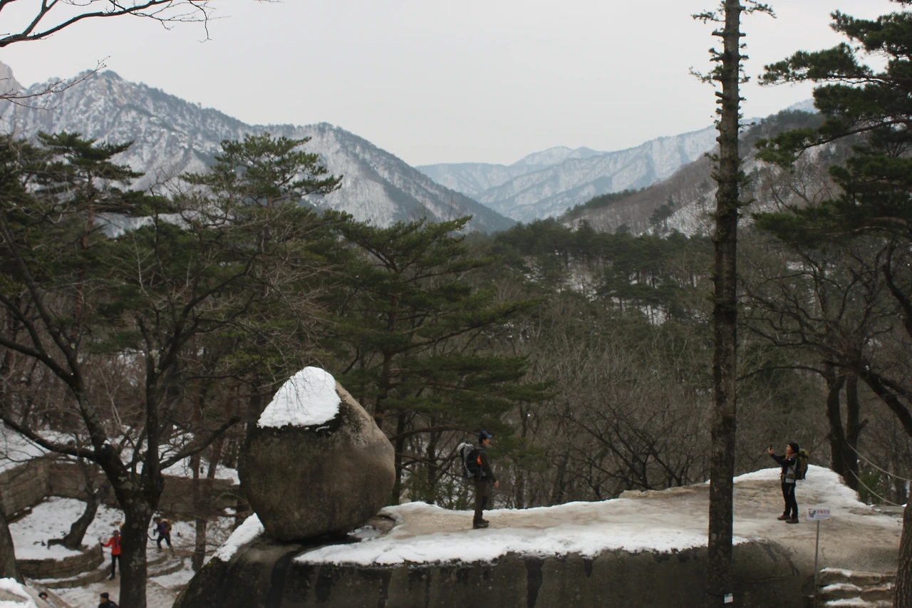 그 곳으로부터 조금 올라가자 ‘울산바위 전망대’가 자리한다. 바위 위에서 바라보는 울산바위의 모습과 저 멀리 ‘중청’ ‘대청’ ‘소청’의 모습이 천정 위에 올려진 미니어처처럼 아름답게 눈의 흰 색과 함께 자리하고 있었다.