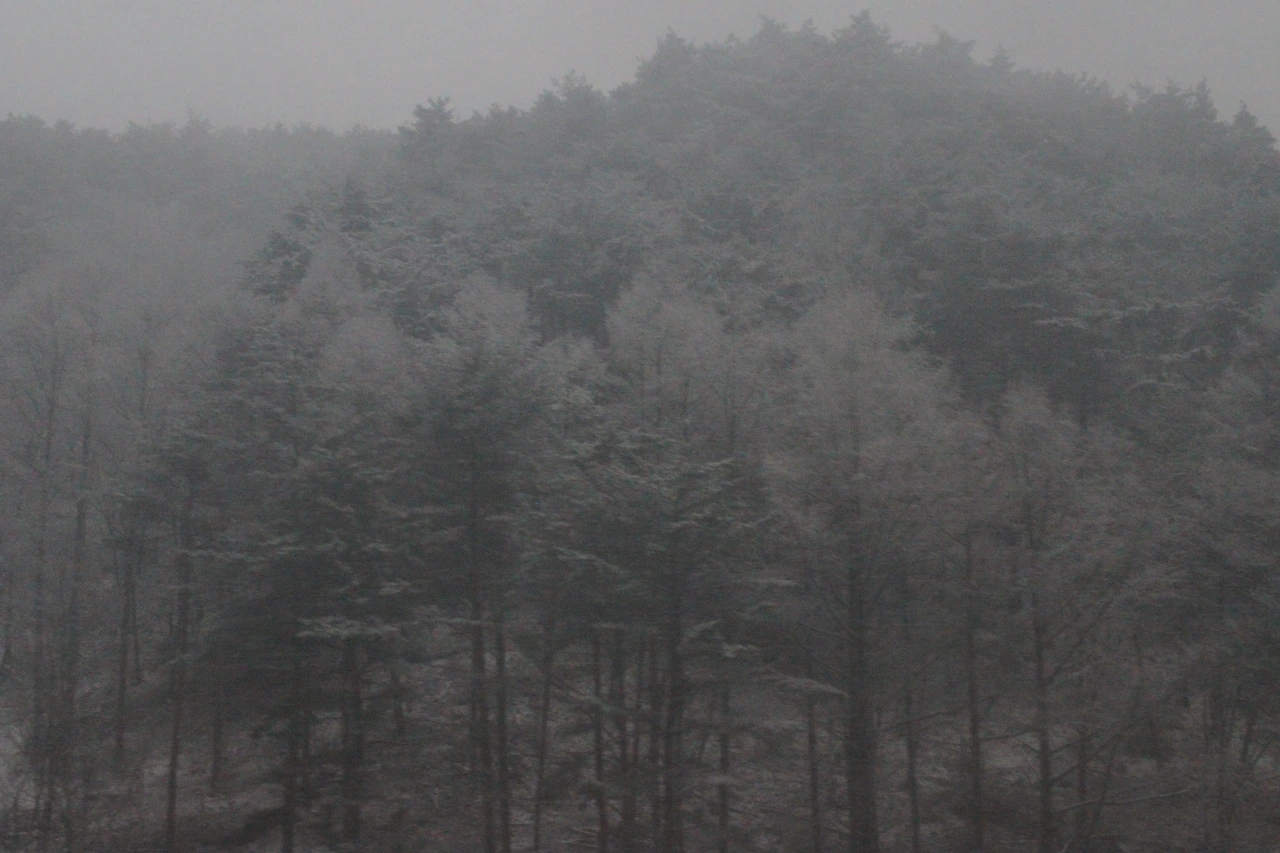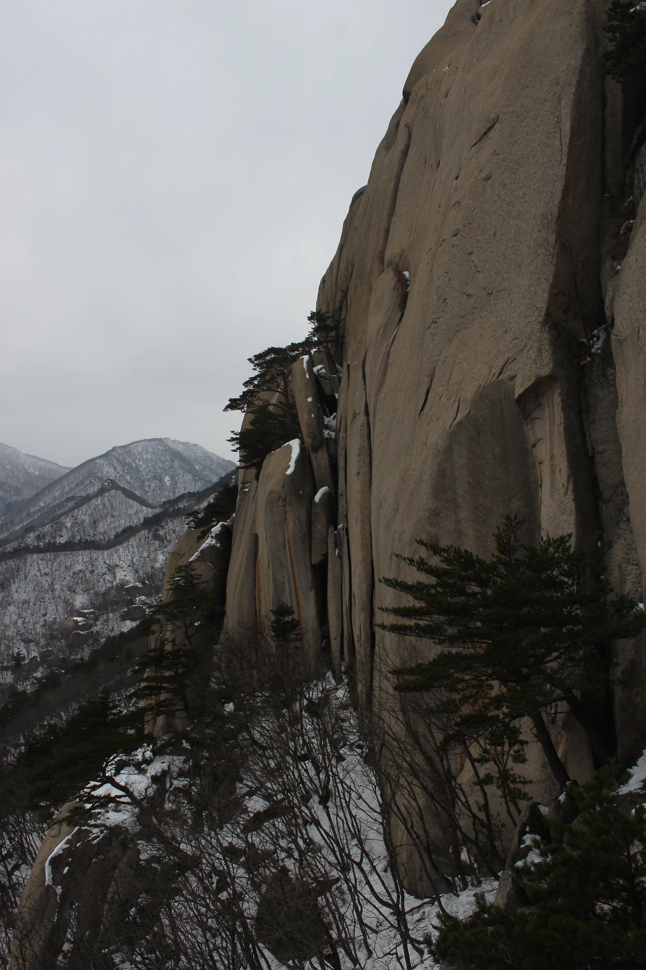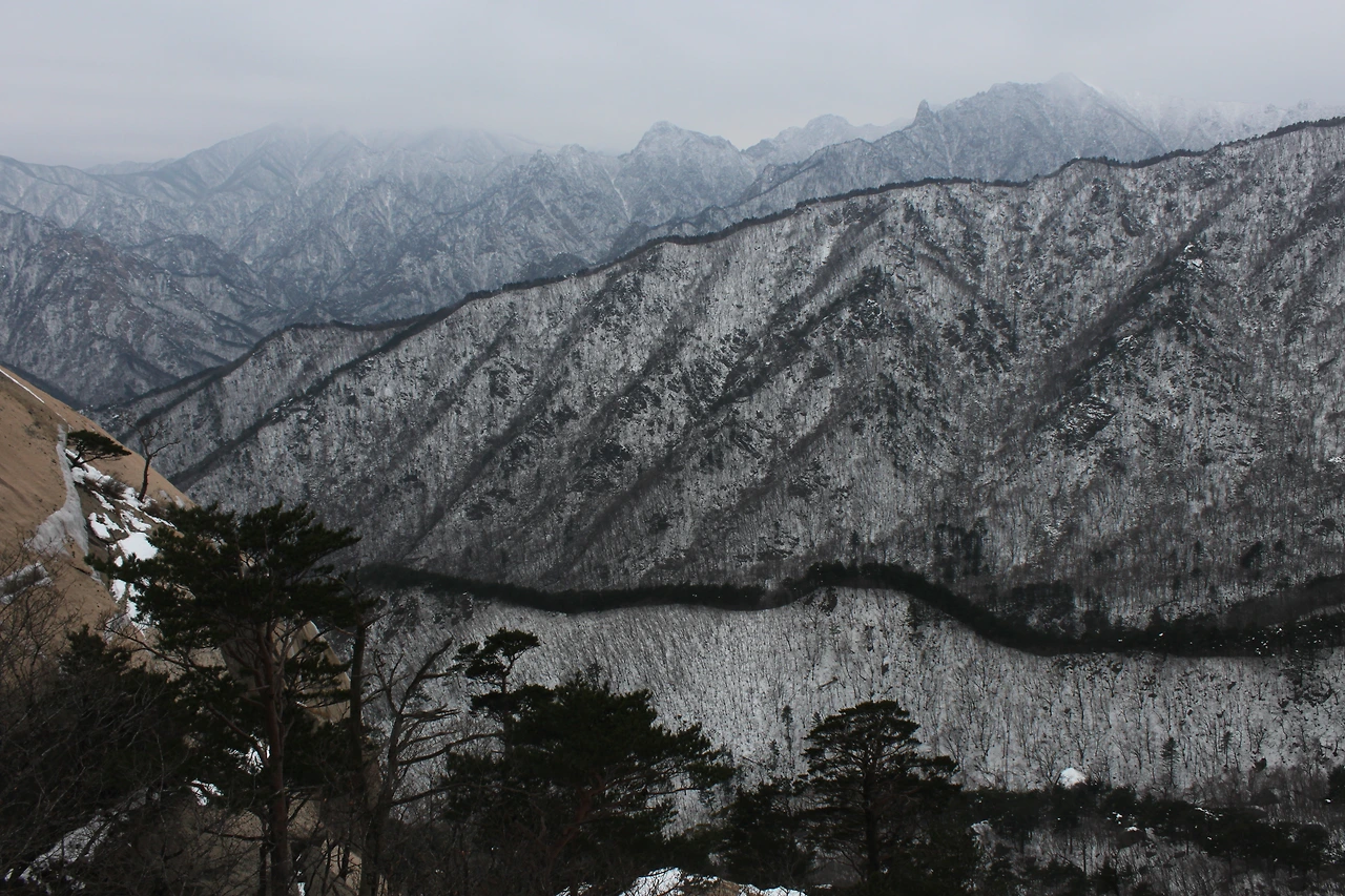 내려가는 길에는 눈발이 제법 세져서 산에 눈이 쌓이나 싶었는데 조금씩 내려가니 눈이 비로 변해 우산을 펴게 만들었다,
