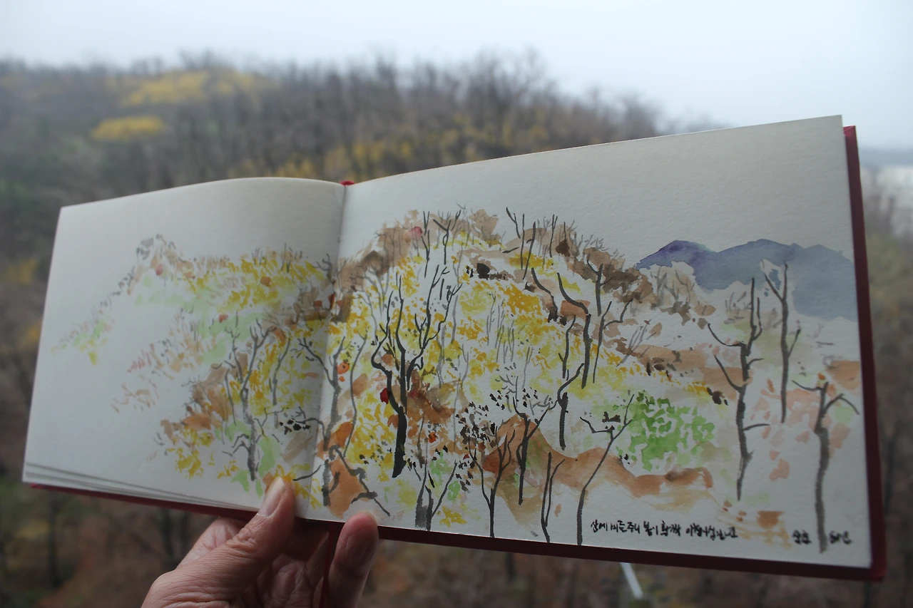 그 속으로 들어가면 꽃만 보일 것 같아 현관문을 열고 그 자리에서 그냥 스케치북을 편다.
