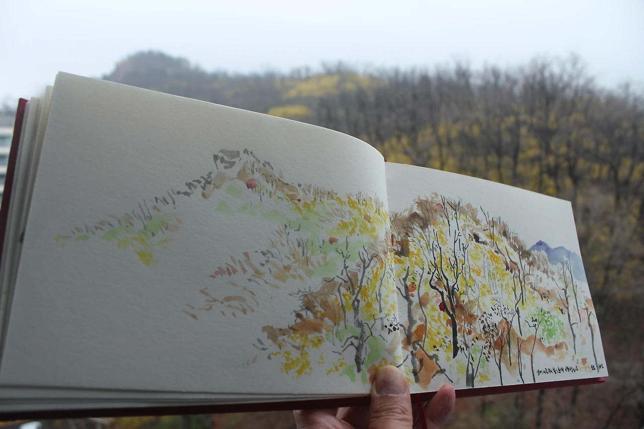 오늘 그린 그림의 왼쪽 봉우리 길이다.