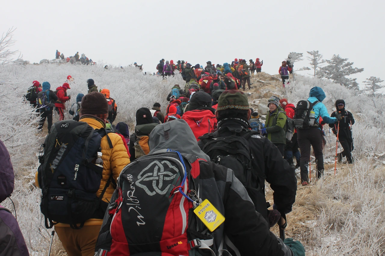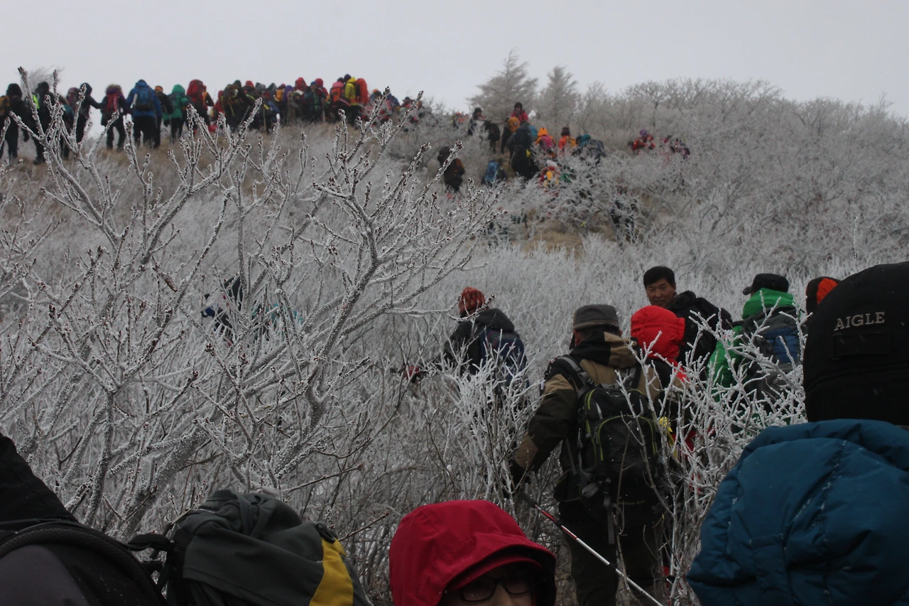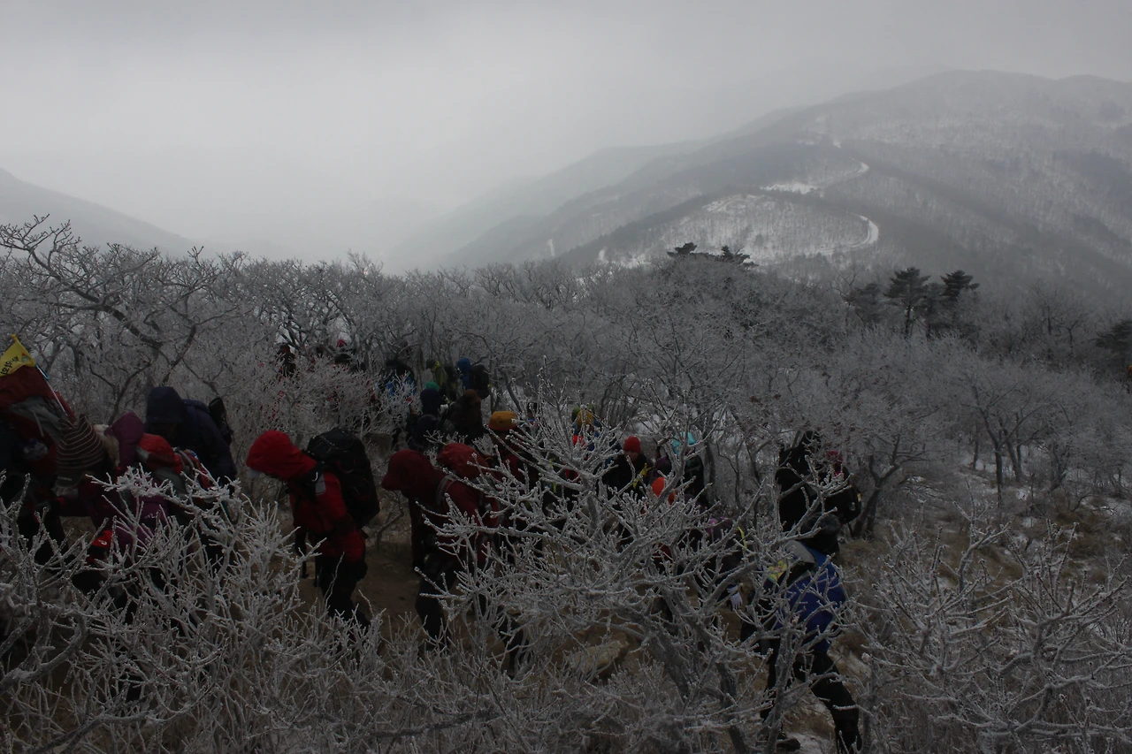 눈이 많이 왔길 기대하며 올라가는 산은 이렇게 유명한 산이었나 싶게 많은 산객들의 혼잡으로 올라가는 시간을 더디게 만들었지만 초입부터 보여주는 환상적인 상고대의 모습에 시간은 그렇게 중요한 것이 아니게 만들었다.