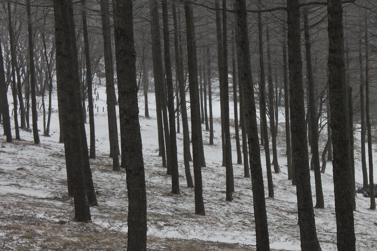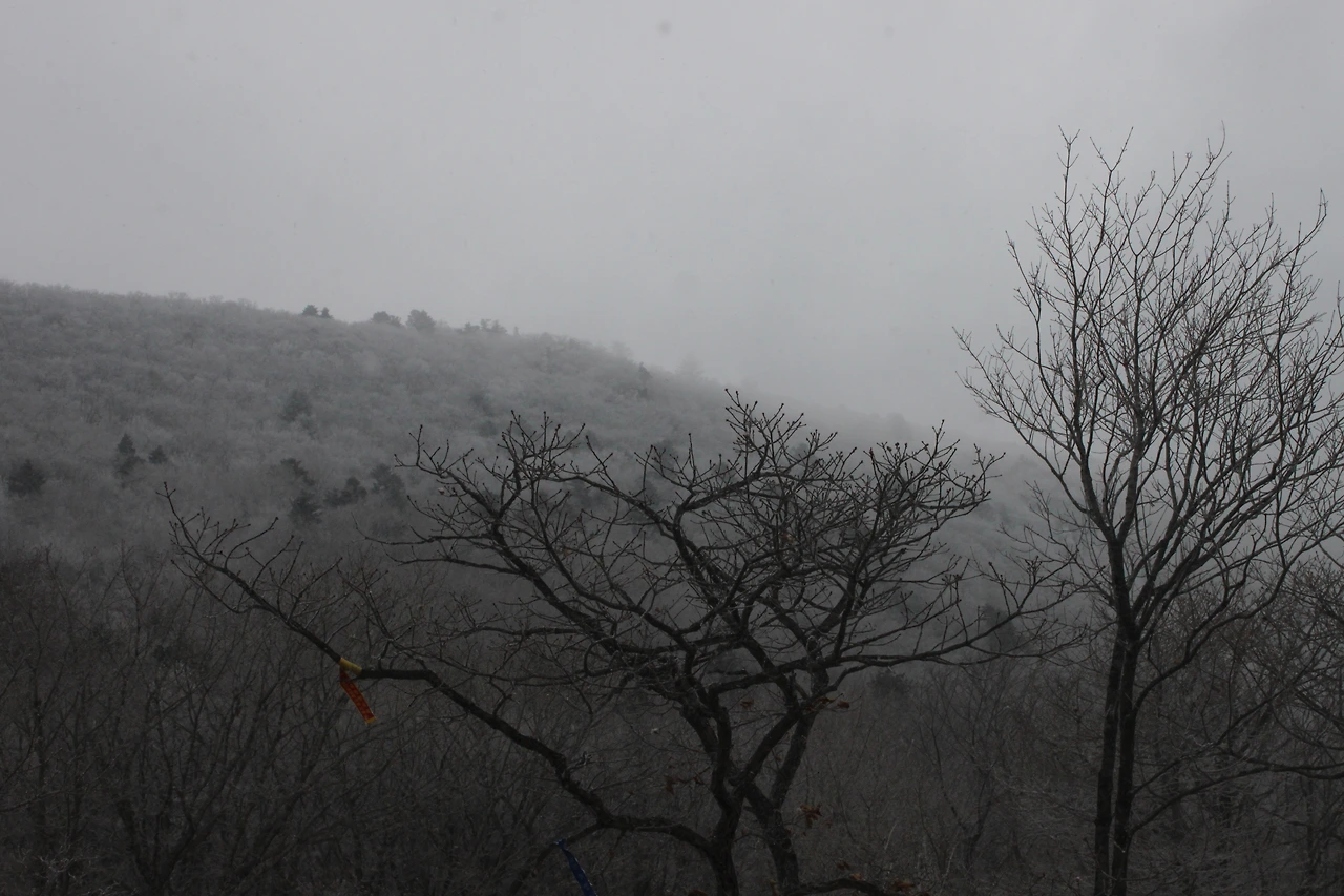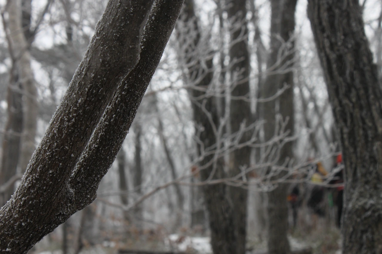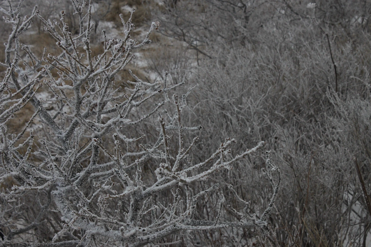새벽이슬이 얼어서 나무에 빛을 발하며 만들어낸 '상고대'에 아침부터 흩날리는 눈이 범벅이 되어 맛있는 눈의 모습을 재현하고 있었다.