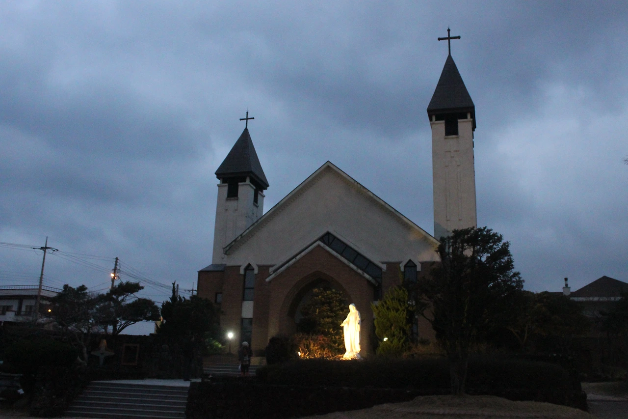 한림항의 노을을 바라보며 '한림 성당'의 마당에서 후식 한 모금 마시며 서귀포 숙소 ‘민중각’으로 가는 길을 재촉했다.