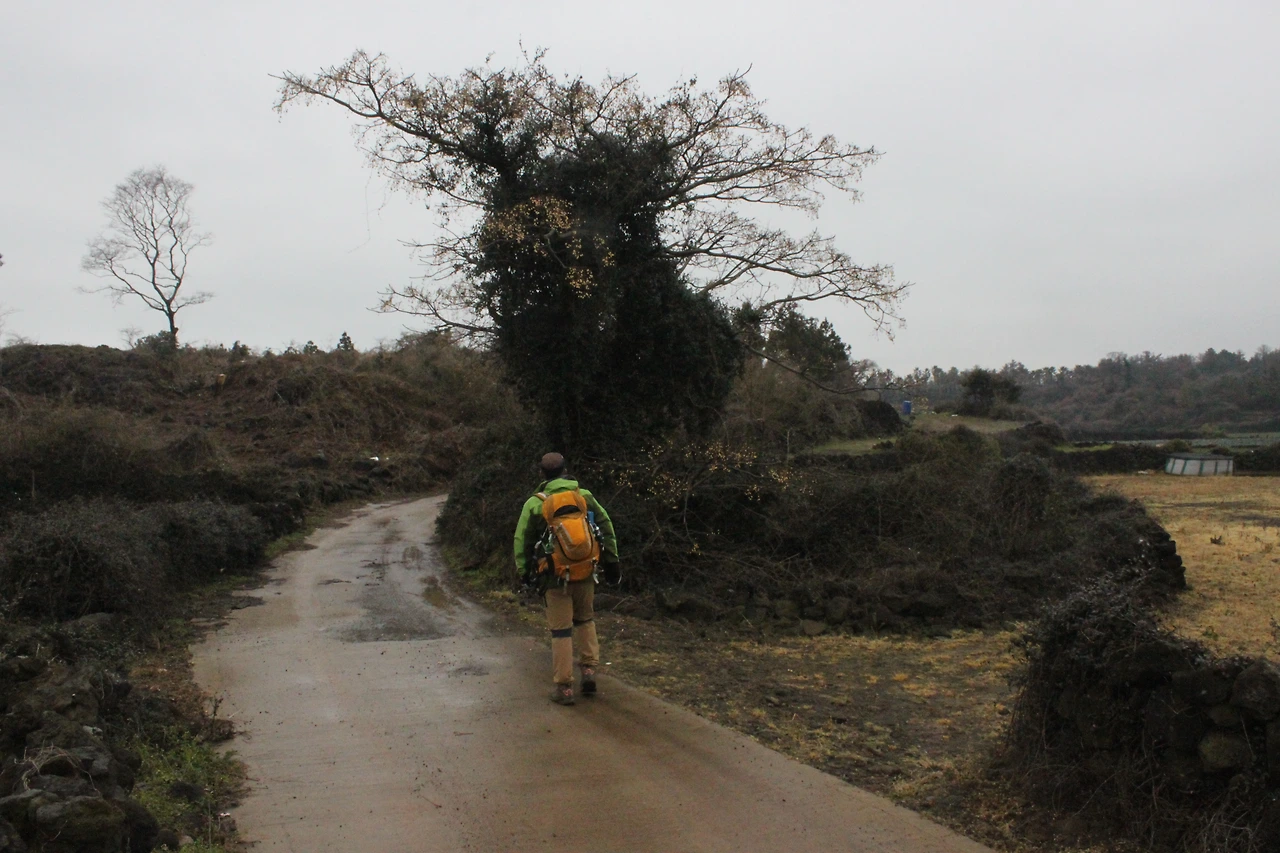 아직도 황금색 귤이 달려 있는 귤밭을 지나 동백꽃의 흔적을 찾아서 남의 집 앞마당까지 들어갔다가 집을 지키던 강아지의 우렁찬 텃새에 도망쳐 나오기도 하면서 길은 나에게 소소한 이야기를 만들어주었다.