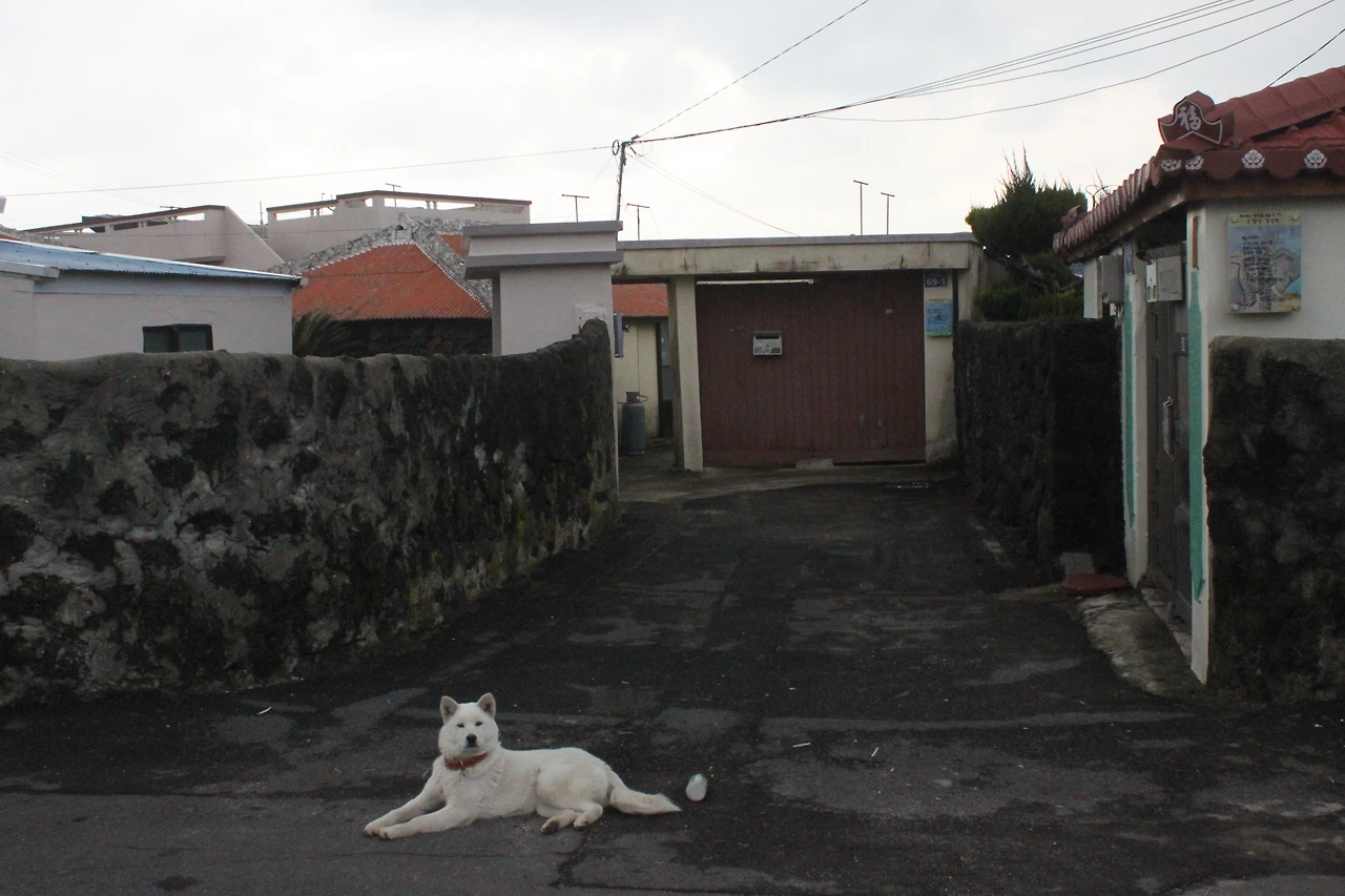새의 시체와 죽은 바다생물들이 여기저기서 이곳은 격정적인 공간이라고 이야기하고 있는 것 같았다. 바닷가를 어느 정도 지나자 ‘월령 포구‘와 마을이 나타난다. 동네에서 보이는 거라곤 하얀 백구 한 마리다.
