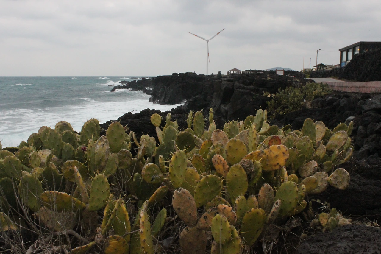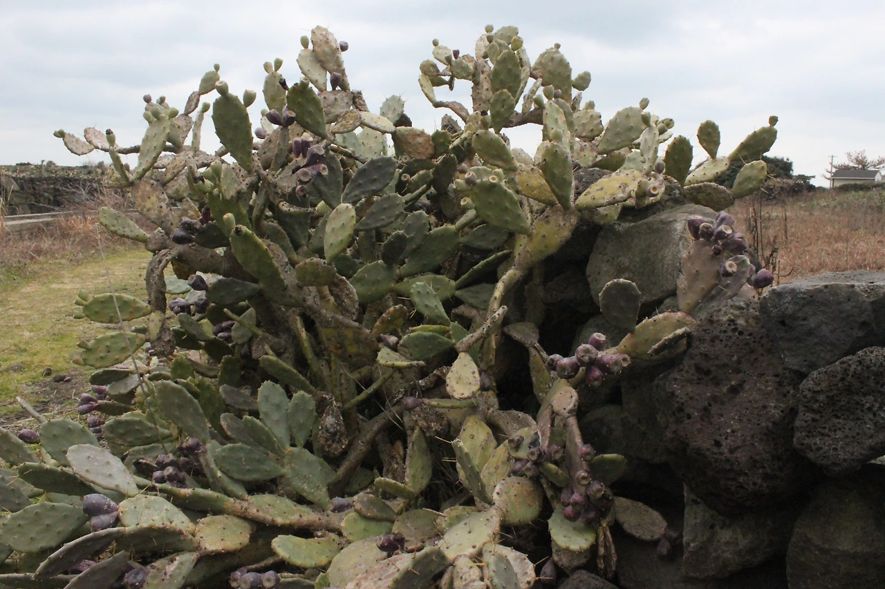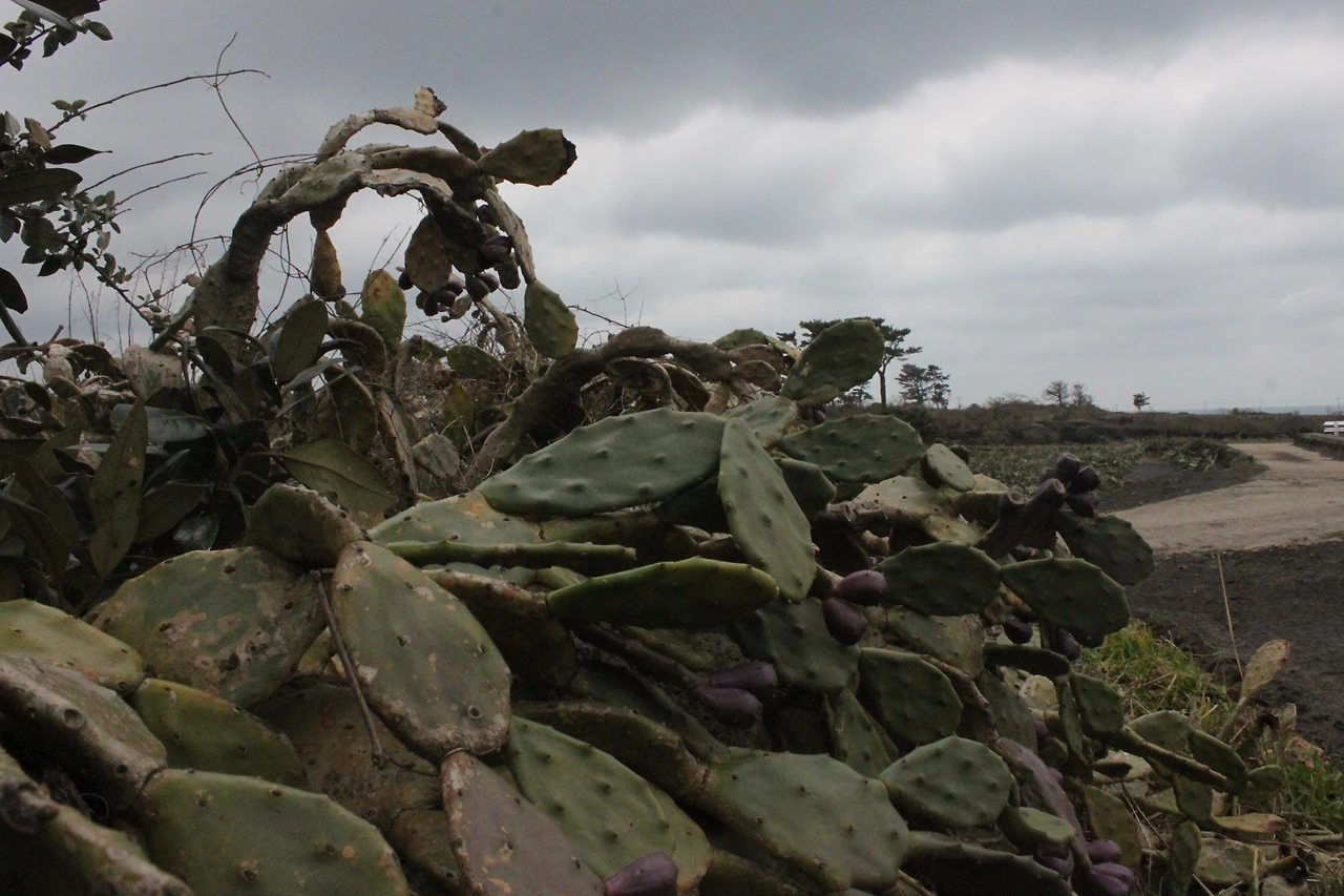 저 멀리 바다가 어렴풋 보일 때쯤 '선인장 자생지'가 조금씩 나타난다.