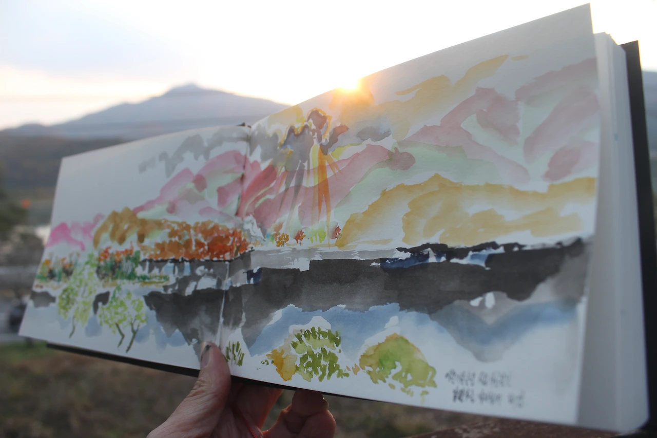 그 자전거길에서 스케치북을 꺼내 여유로운 시간을 갖는다.
