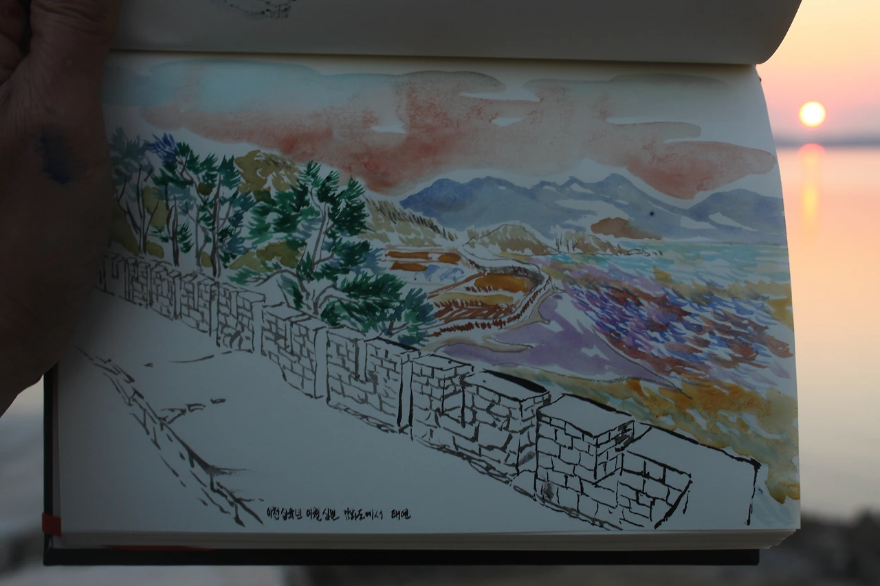 한참을 그리고 있자니 한쪽 편으로 해가 아주 빨갛게 가라앉는다.