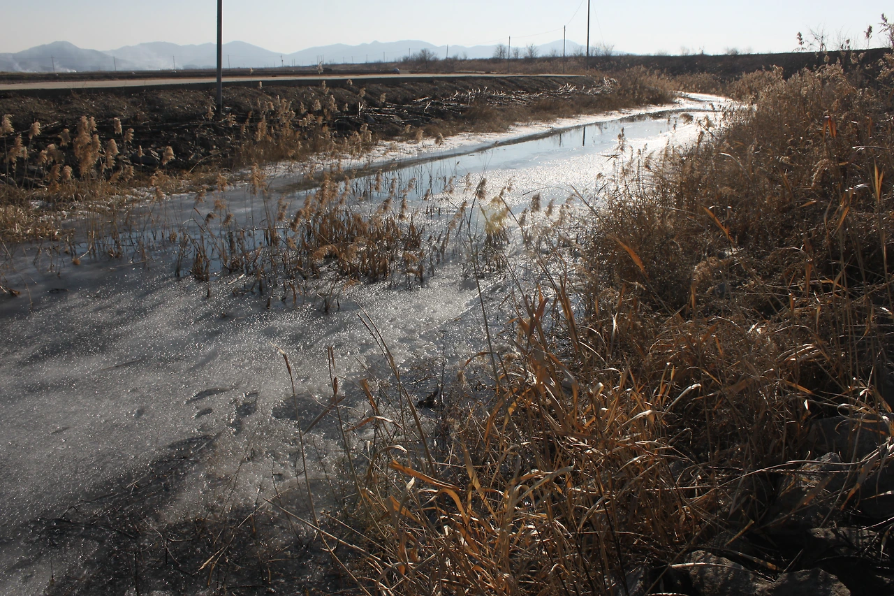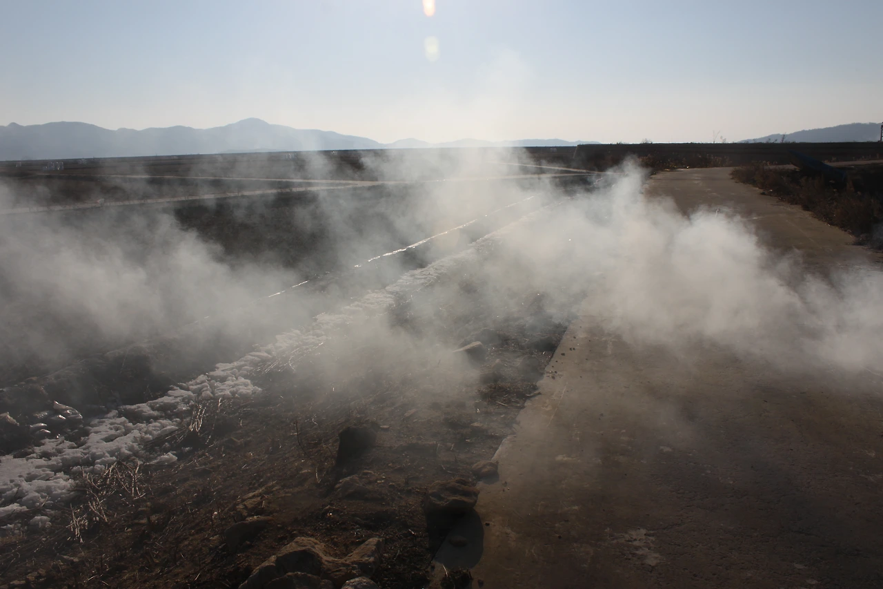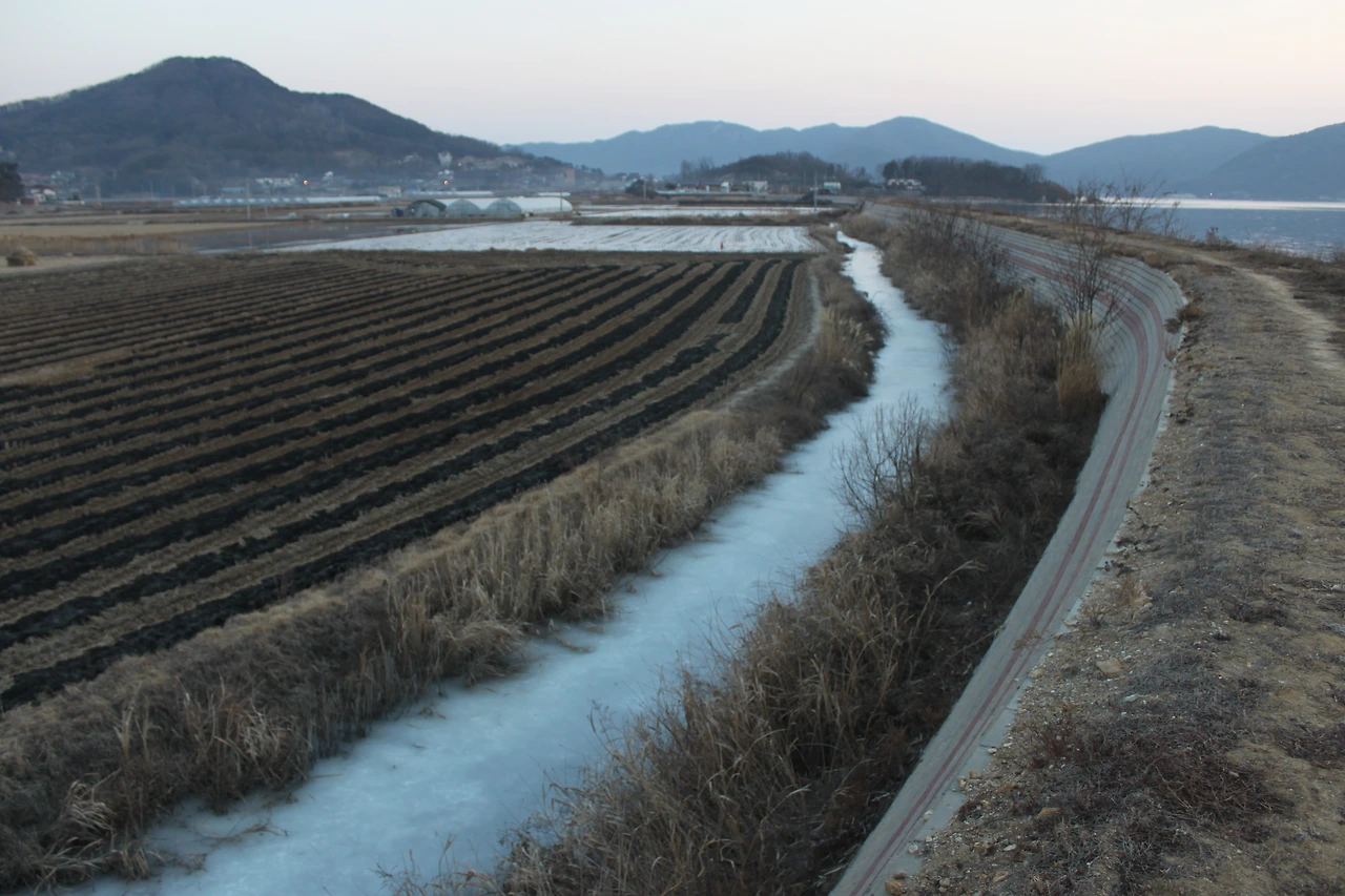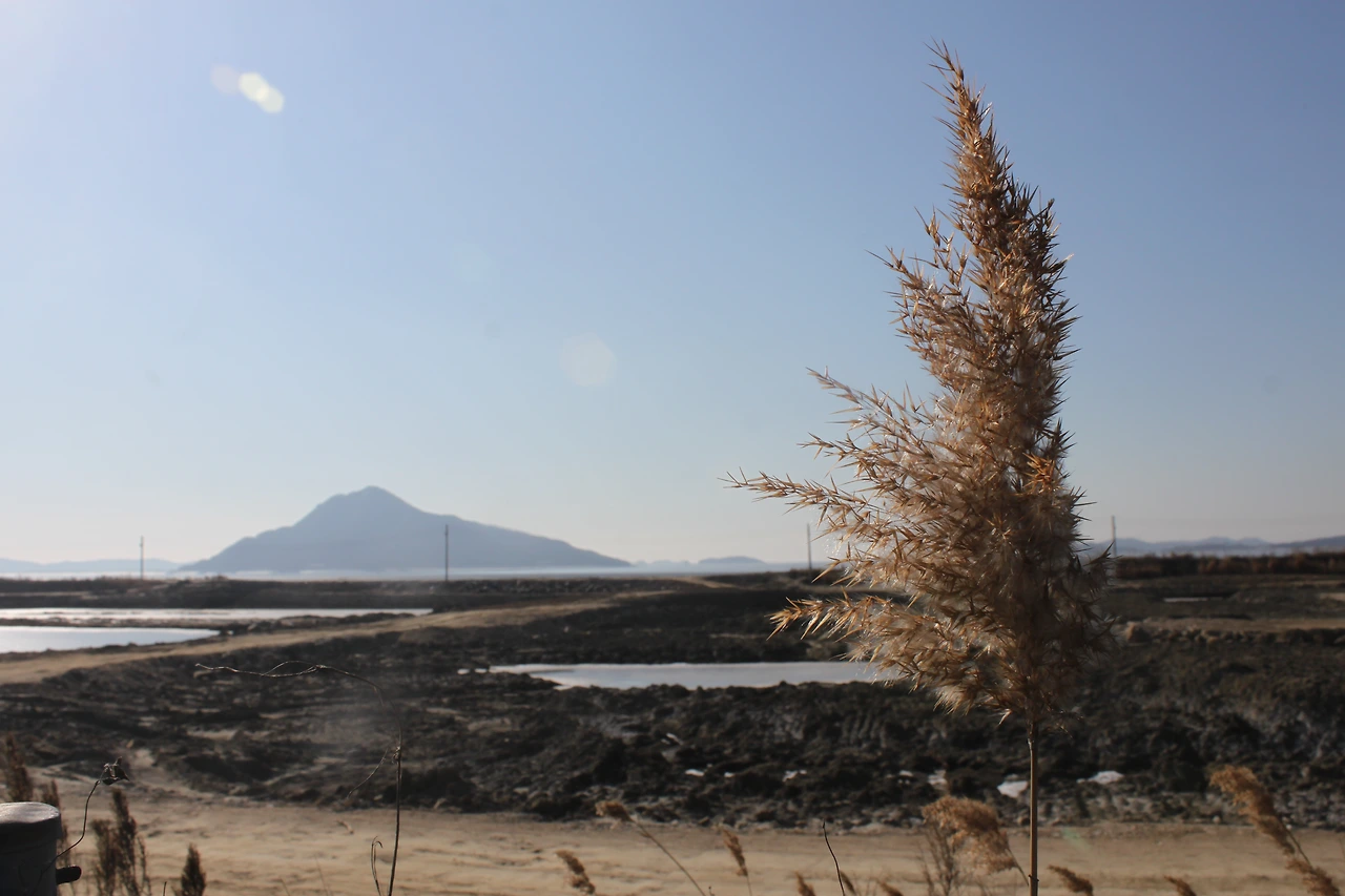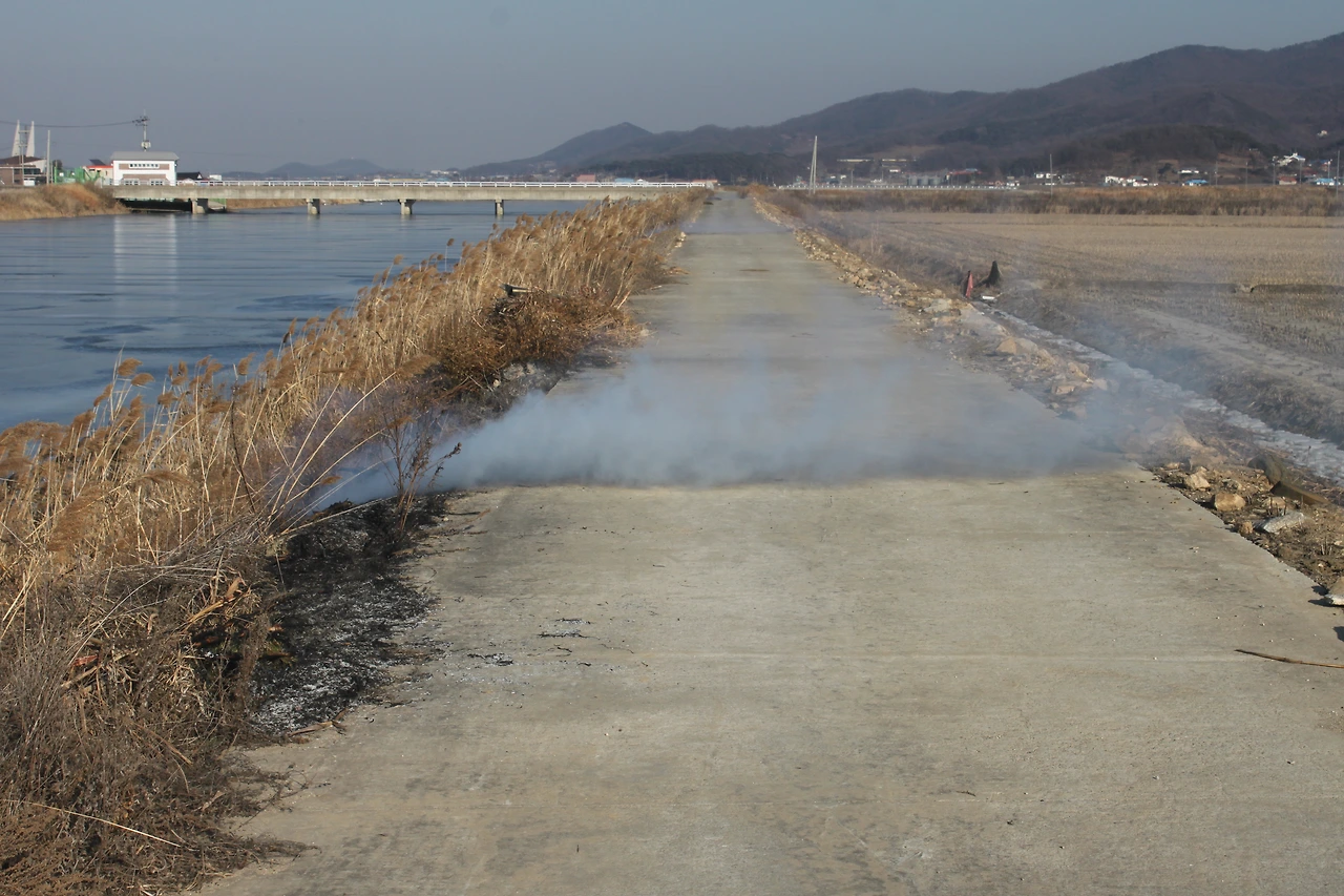 한참을 걷다 보니 바다 반대편으로 겨울 들에 들불을 놓은 듯 연기들이 난다.