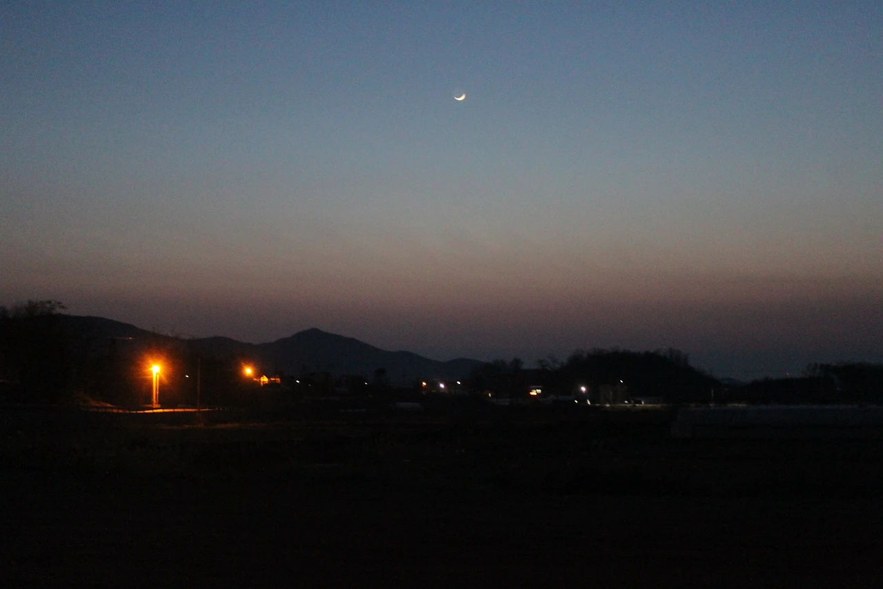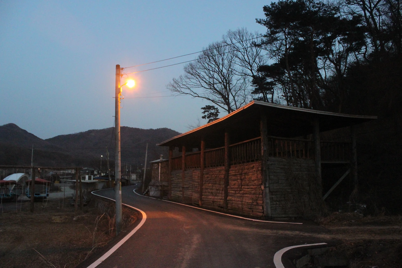 해가 건너 섬 너머로 사라지자 짐을 챙겨 빠르게 달린다. 이제 30여분이면 길과 하늘은 어둠으로 깔릴 텐데... 허겁지겁 ‘용두레 마을’로 접어든다.