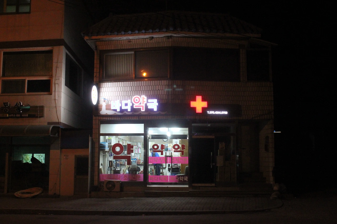 밝은 길을 따라서 조금은 안정된 맘으로 걸어가다 보니 바다가 보이고 배들이 어둠을 밝히며 서있다. 그 방향에 어둠 속에 묵직하게 자리 잡은 ‘망양 돈대‘