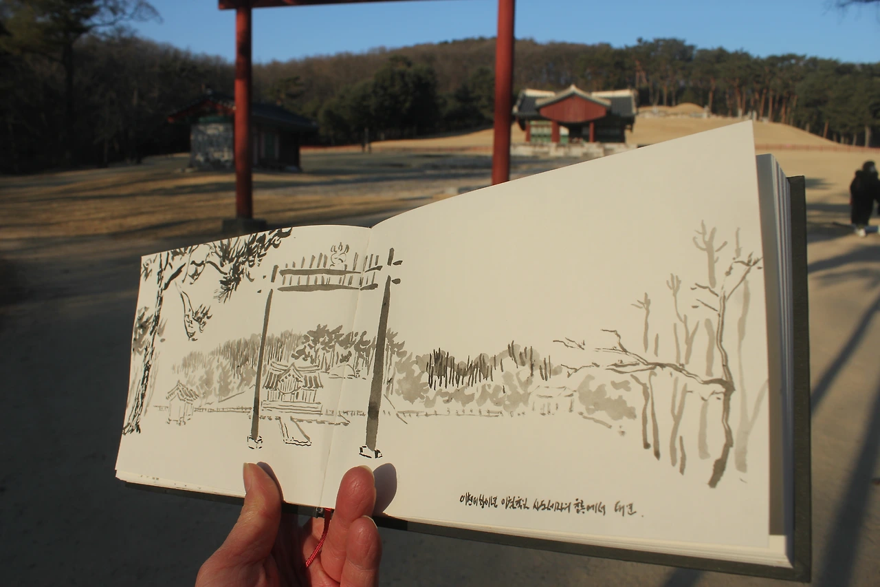 사도세자의 '융릉'에 먼저 도착하여 먹으로 스케치한다.