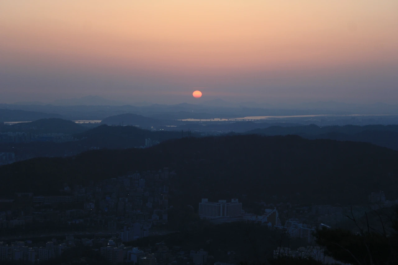 해가 붉은 해가 노란 서클을 그리며 사라지는 걸 보자마자 '기차바위'가 있는 곳으로 하산길을 나선다.