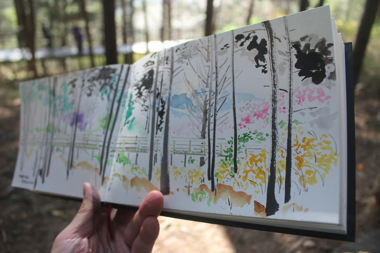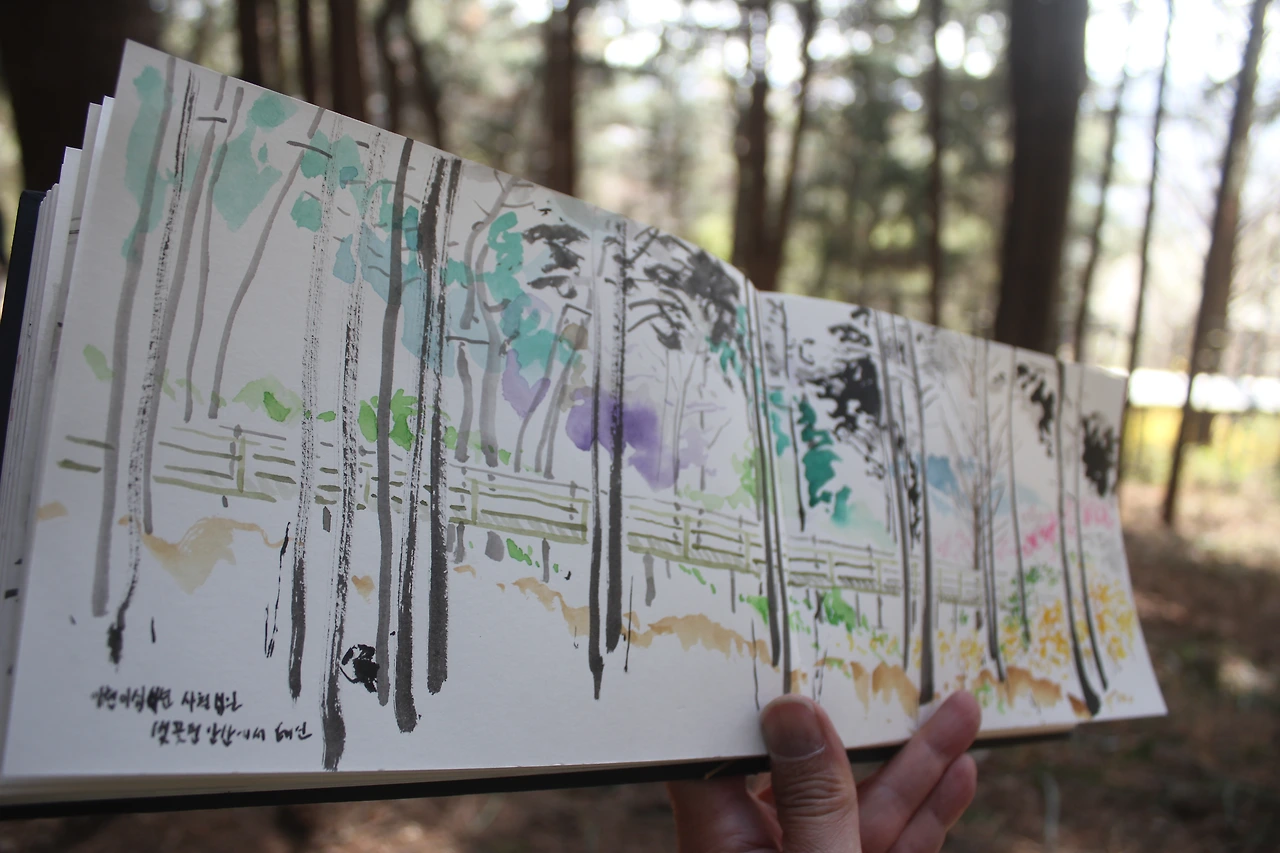 그 숲에서 잠시 숨을 쉬며 스케치를 하며 시간을 보낸다.