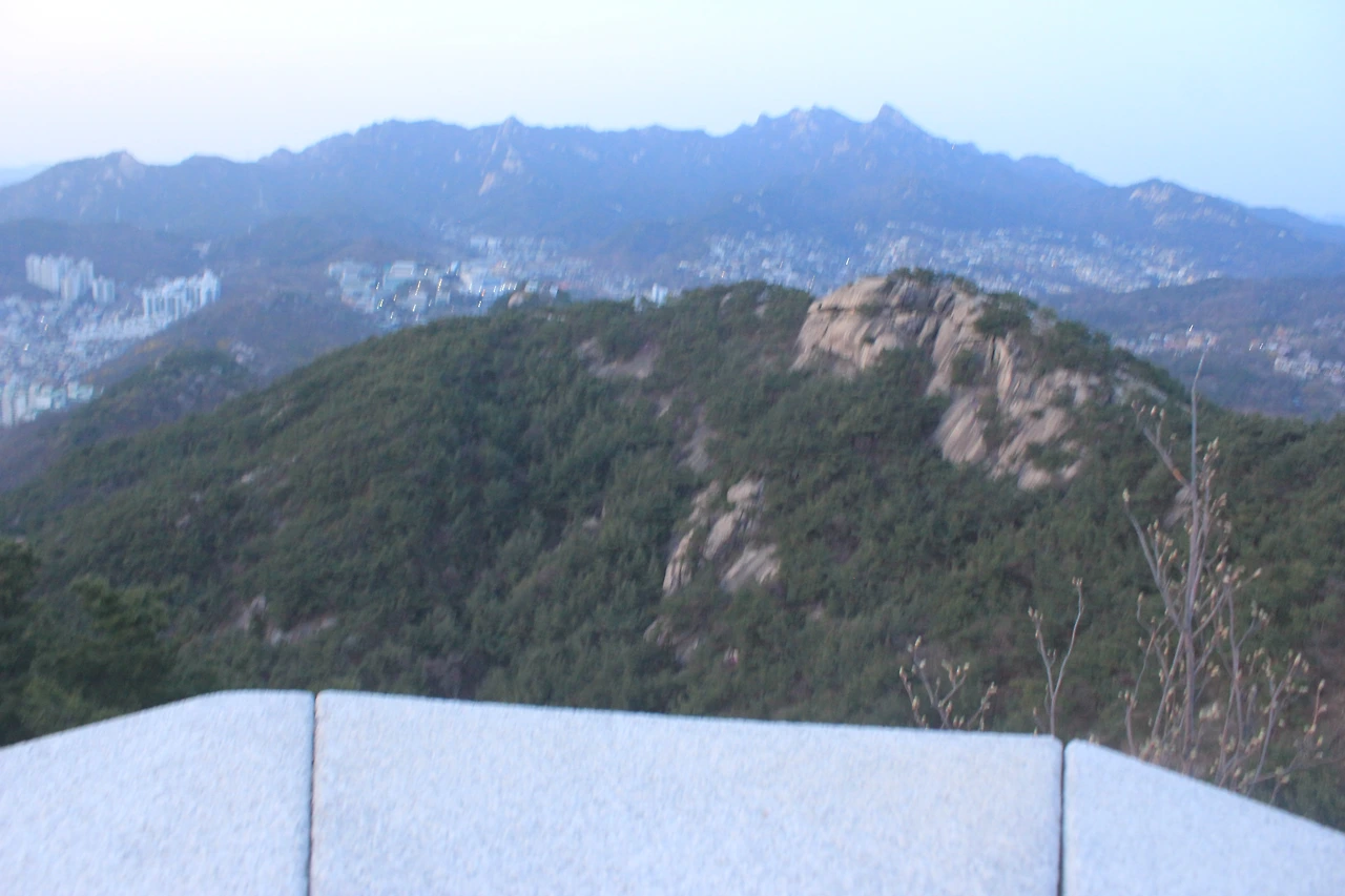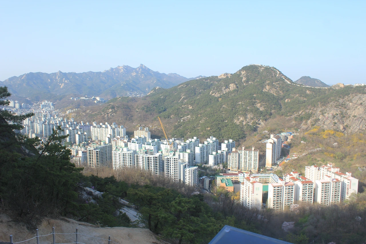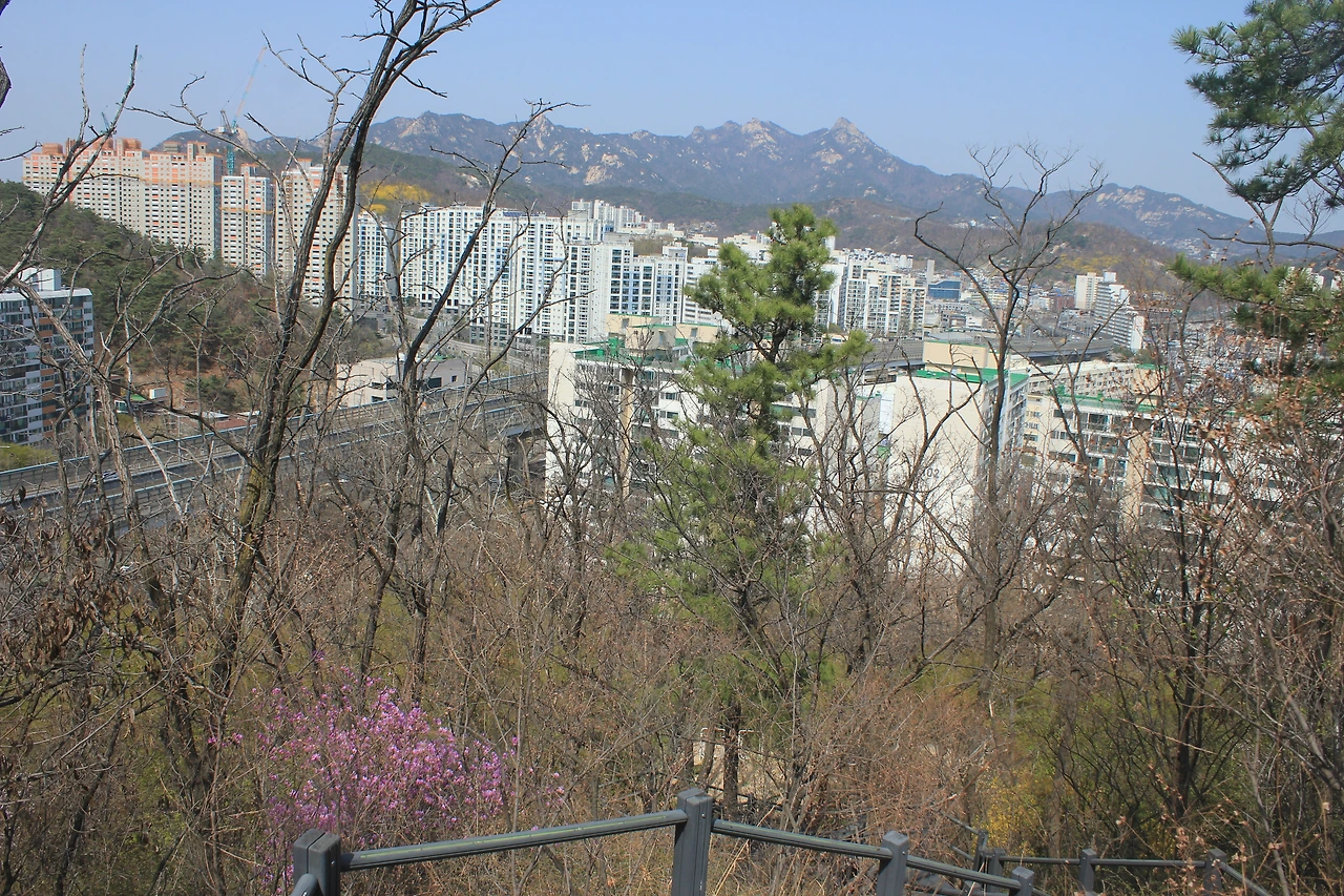북한산이 병풍처럼 향로봉, 비봉, 승가봉, 문수봉, 보현봉, 형제봉이 펼쳐지고 그 앞에 '인왕산'이 든든히 서있고 뒤로는 북악산이 삐죽 자신의 존재감을 드러낸다.