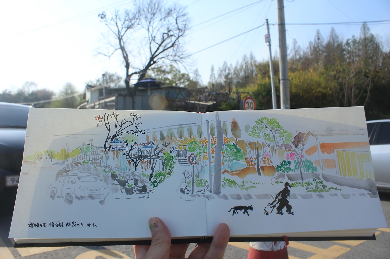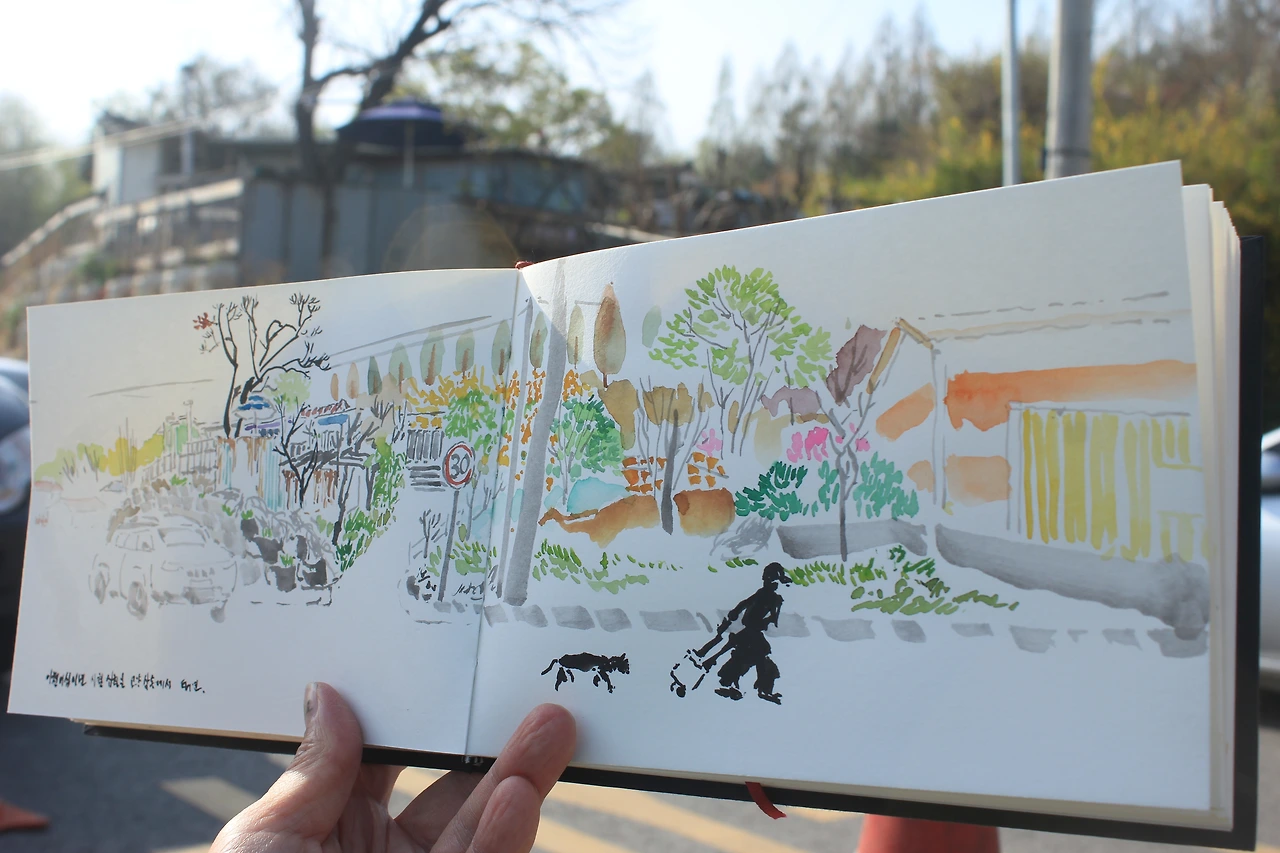 동네 한편 봄이 늘어지게 하품할 것 같은 풍경에서 스케치북을 펴고 스케치를 하는데 장을 보러 가시는지 신나게 종종걸음으로 사라지는 할아버지가 정겨워 한쪽에 담는다.