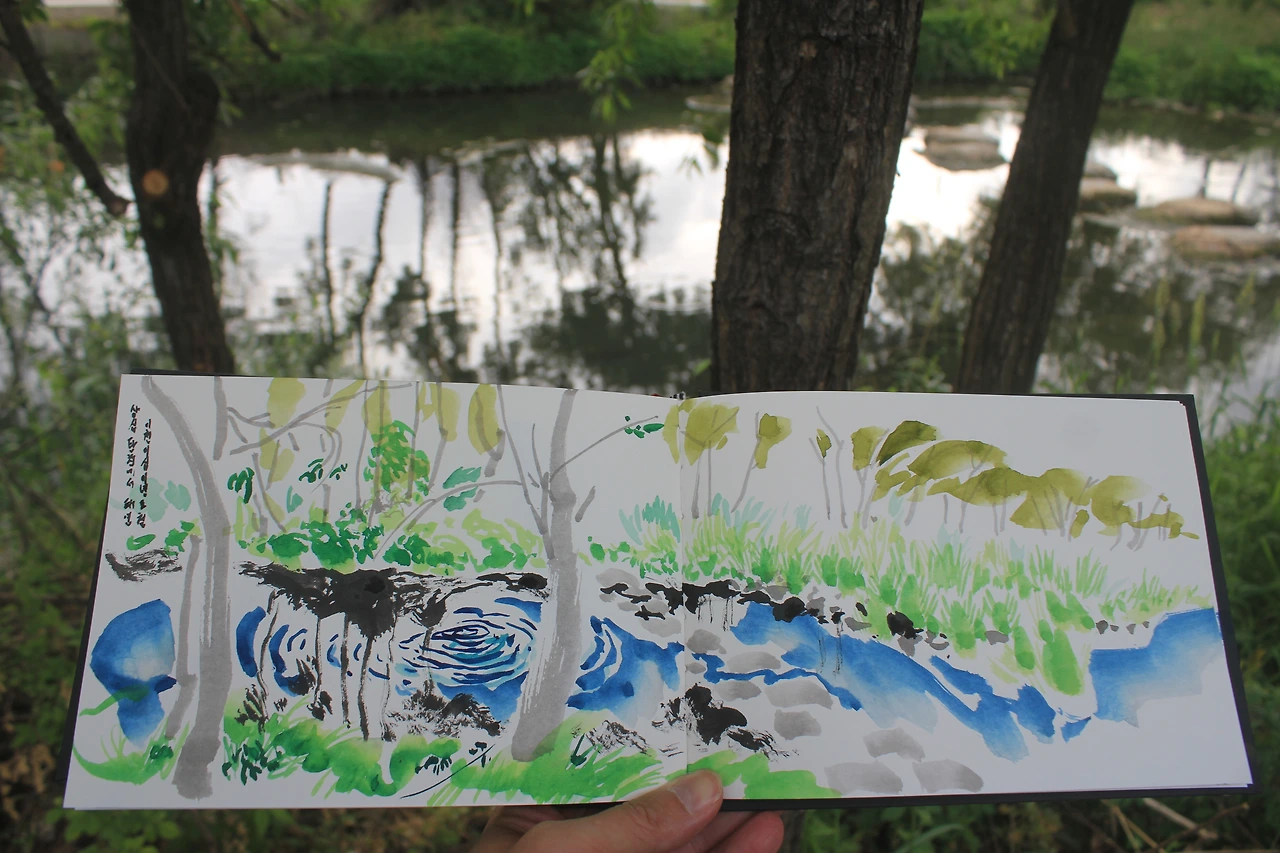 죽전, 용인, 마북리 석불입상, 민영환 묘, 스케치, 어반스케치, 동양화
