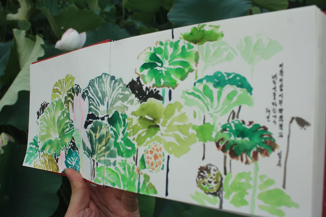 용인, 연꽃, 용인 시외버스터미널, 무궁화위성, 어반 스케치, 한국화