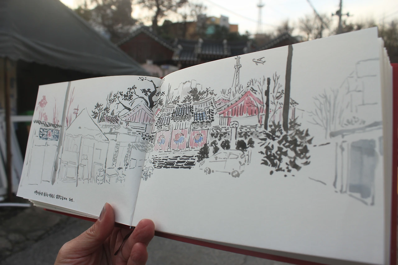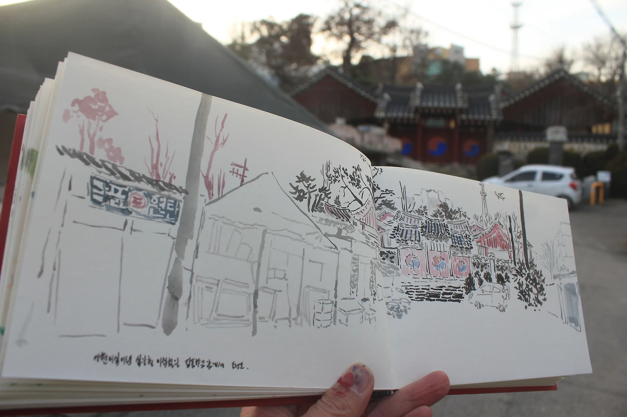 800년 역사를 가진 김포 향교를 그리고 있자니 역사의 주인공이었던 분들의 방문을 받게 되는 것 같다.
