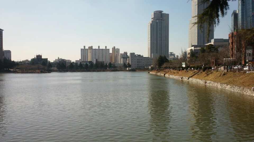 호수의 물은 잔잔하고 봄이 성큼 온 것 같다.