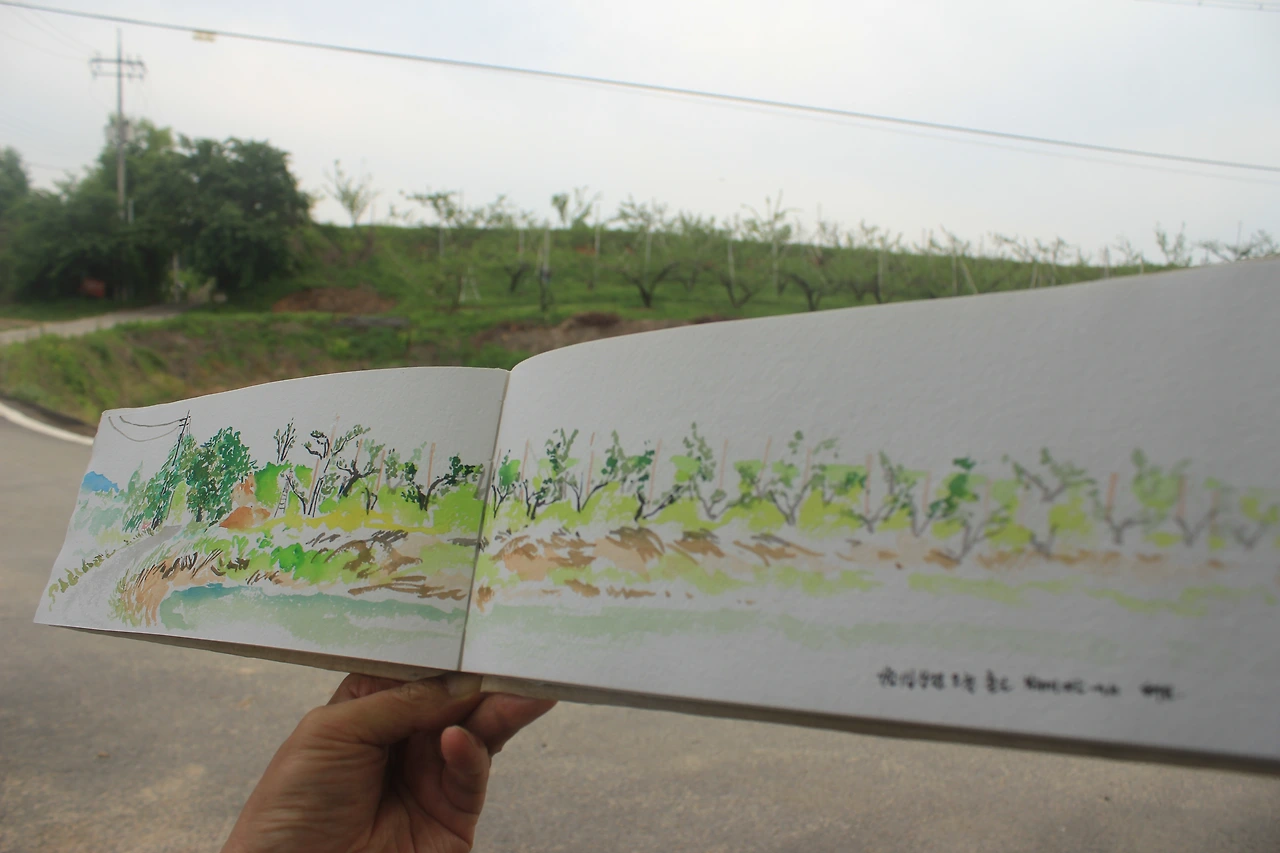 사람을 잘 그리지 않지만 일하시는 부부의 모습도 풍경으로 느껴져 살짝 그려 넣는다.
