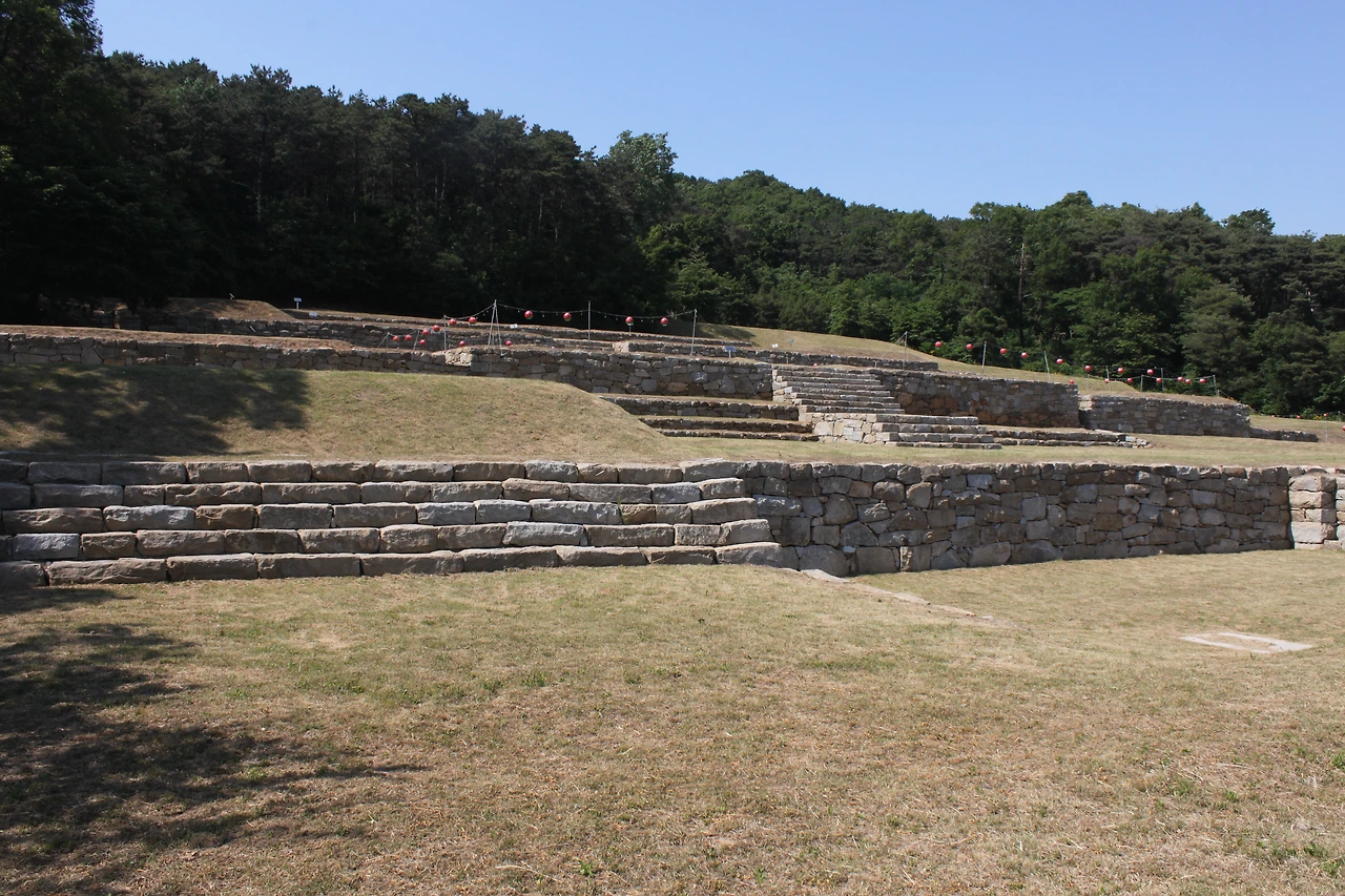 늦은 듯해서 서둘러 내려가니 절터가 나오고 절터의 내용을 보니 팔만대장경을 조각했던 '선원사'란 절이 있던 터였다. 한쪽에는 절의 복원을 위해 한쪽 건물을 세워놓은 절 건물이 있었고 거기서 연잎차로 목을 축인 뒤 연잎들로 가득한 주변 재배지를 둘러보며 '월하쉼터'란 곳에서 잠깐 쉬었다가 길을 잘못 가서 이상한 마을에 도착했다.