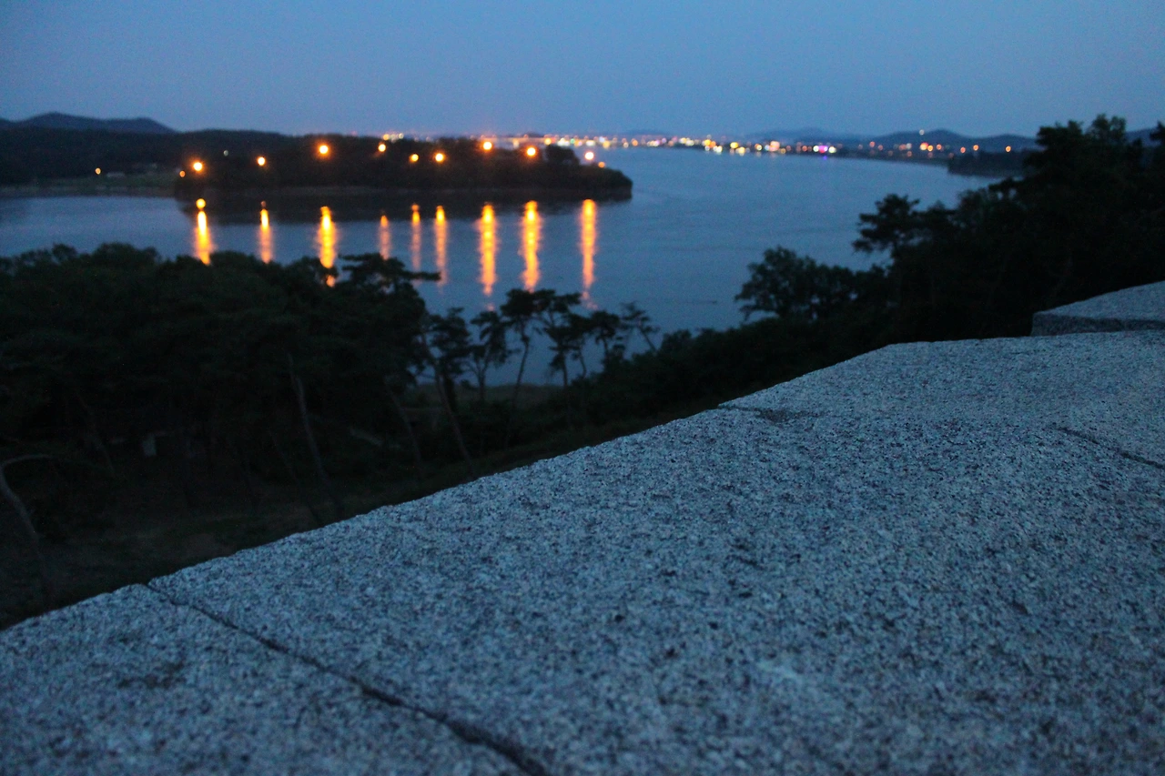 열심히 달려서 '삼동암천'을 넘어서 '두두미 마을'이란 곳에 도착했다. 그 마을은 마을 벽화를 비롯해서 사람들이 재미있게 살기 위해 힘을 모으는 곳이라 여겨졌다. 두두미 마을을 둘러보며 가다 보니 '화남생가'가 어디인지 모른 체 다시 산을 넘는다. 바다와 뚝이 있는 '터진 개' 란 곳에 다 달아 갯벌을 보니 몇 개의 미술작품들이 뻘밭과 잘 어울러진다. 둑을 따라서 걷다 보니 저녁 노을이 황홀하다. 사진을 연방 찍어대다가 앞쪽에 뻘에서 불을 놓는 사람들을 보고 조심스레 다가가니 그쪽에서 더 조심스럽다. 바깥 어르신이 돌아가셔서 옷을 태우러 왔다고 한다. 아마 환경문제로 사진이 찍힐까 걱정하시는 듯했다. 조용히 지나와서 '광성보'에 도착했다. 광성보에는 이미 어두워져 사람들이 없고 조용히 어둑해진 하늘을 바라볼 수 있는 고요만 있을 뿐이었다. '손돌목돈대'를 돌아 물 앞으로 툭 튀어나와 있는 '용두돈대'를 가려했으나 용두돈대는 보수 중이라 되돌아 와야만 했다.