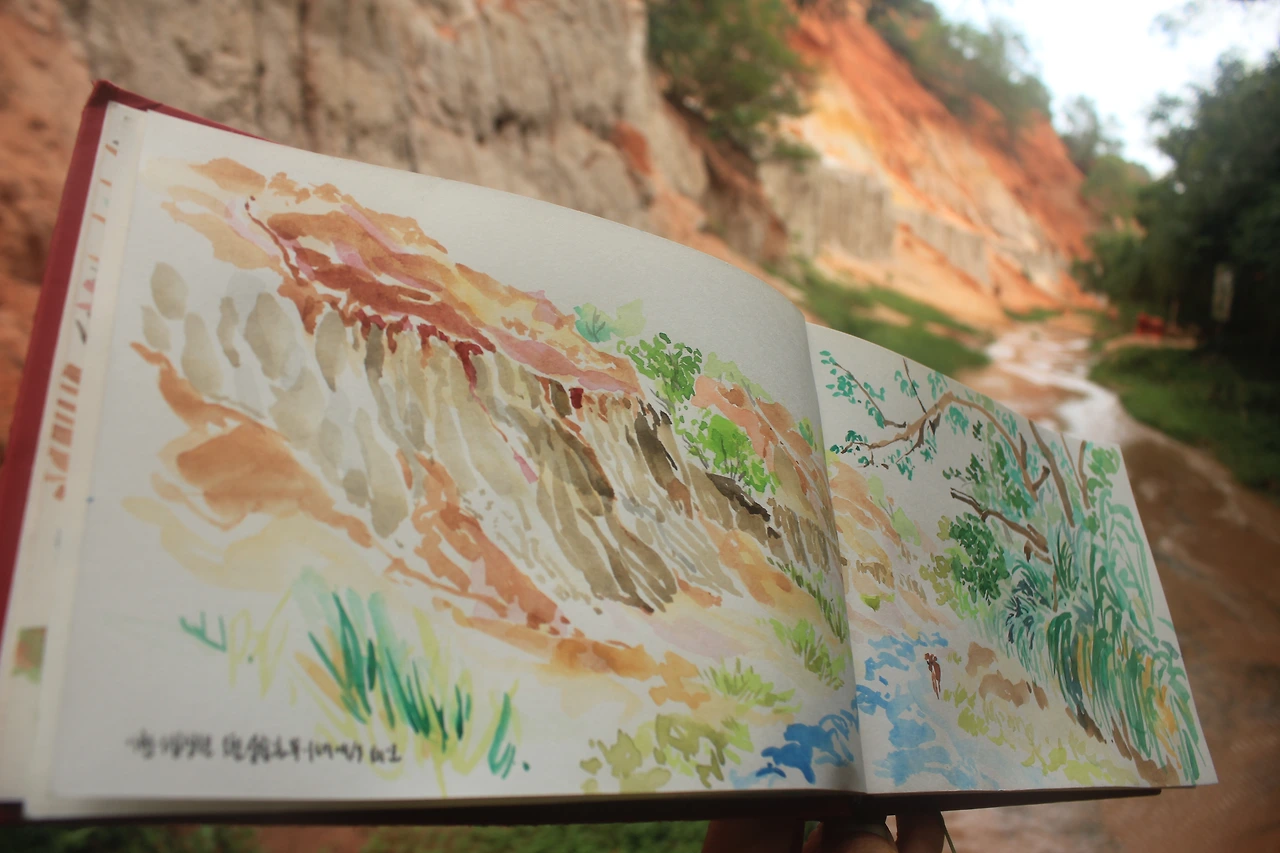가서 스케치를 하고 나니 다시 비가 내린다.
