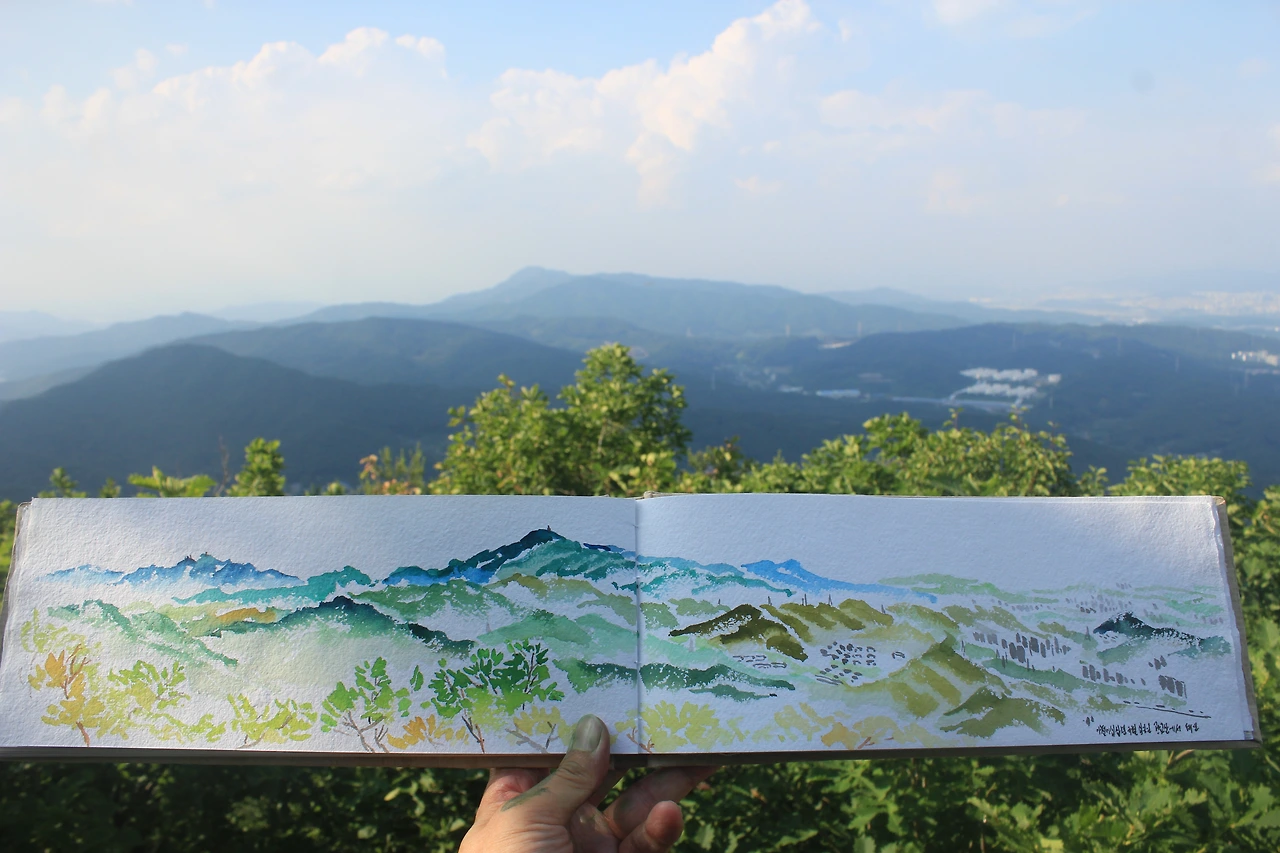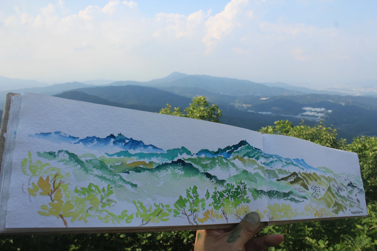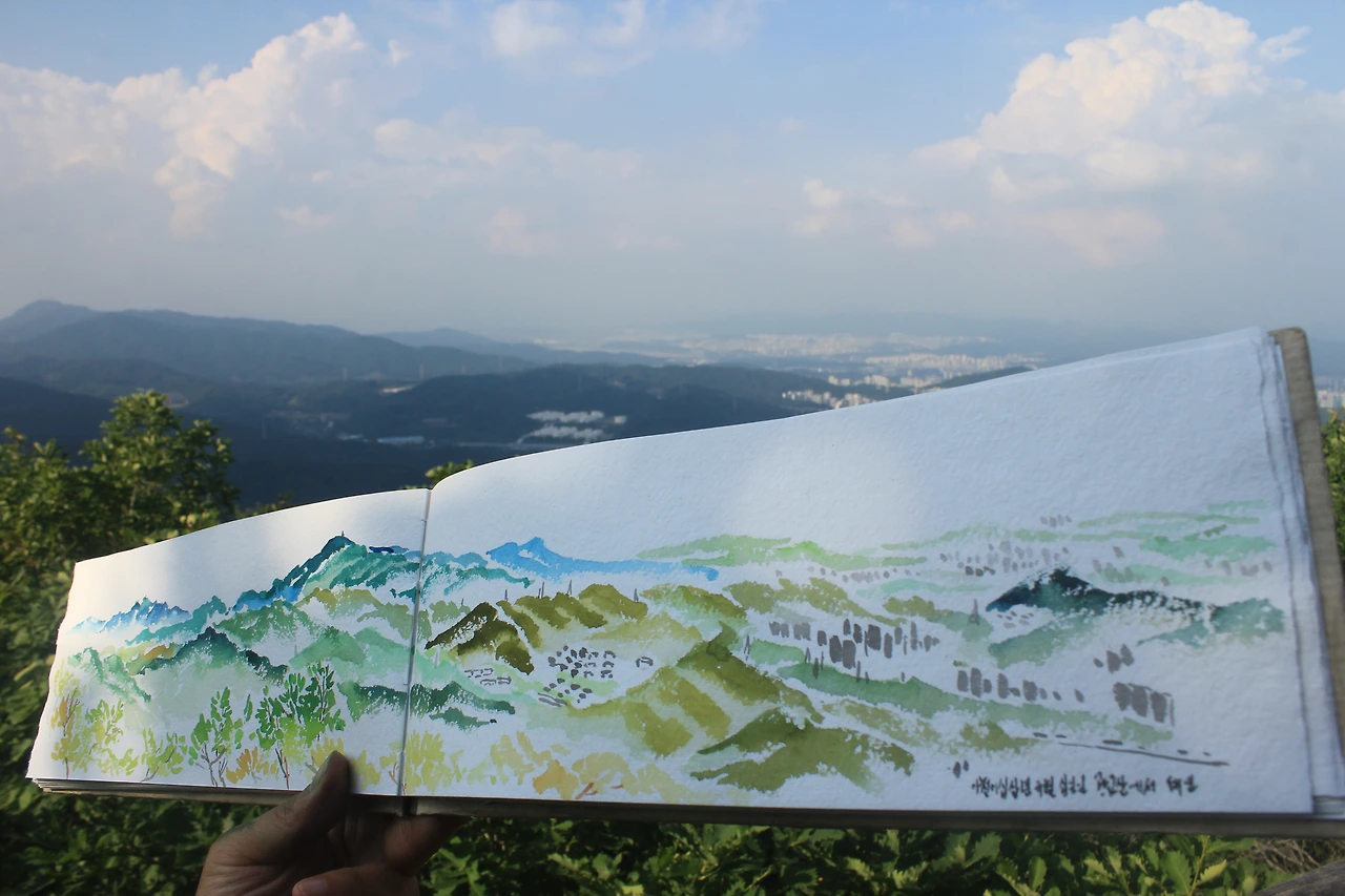 점심을 먹고 스케치 도구를 꺼내 한 시간 정도 전망을 바라보며 스케치한다.