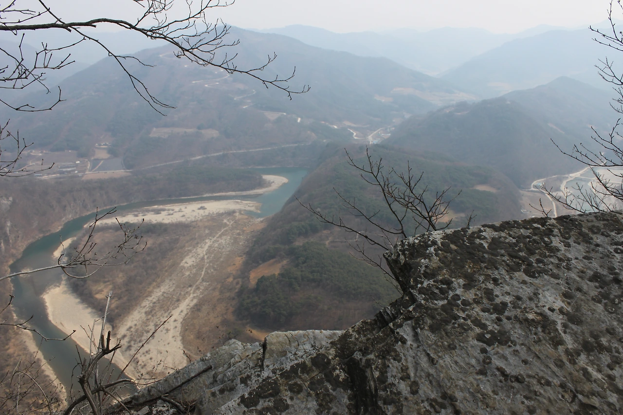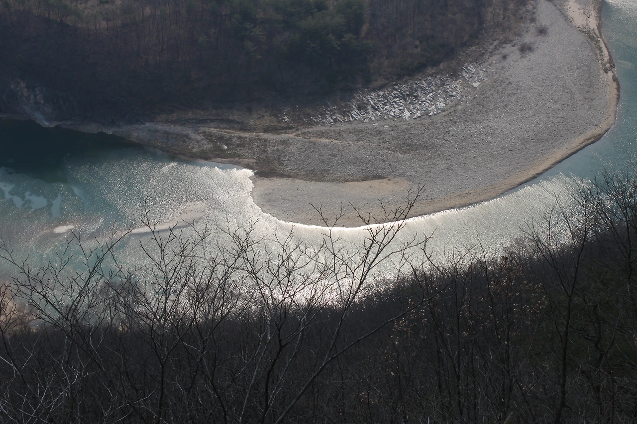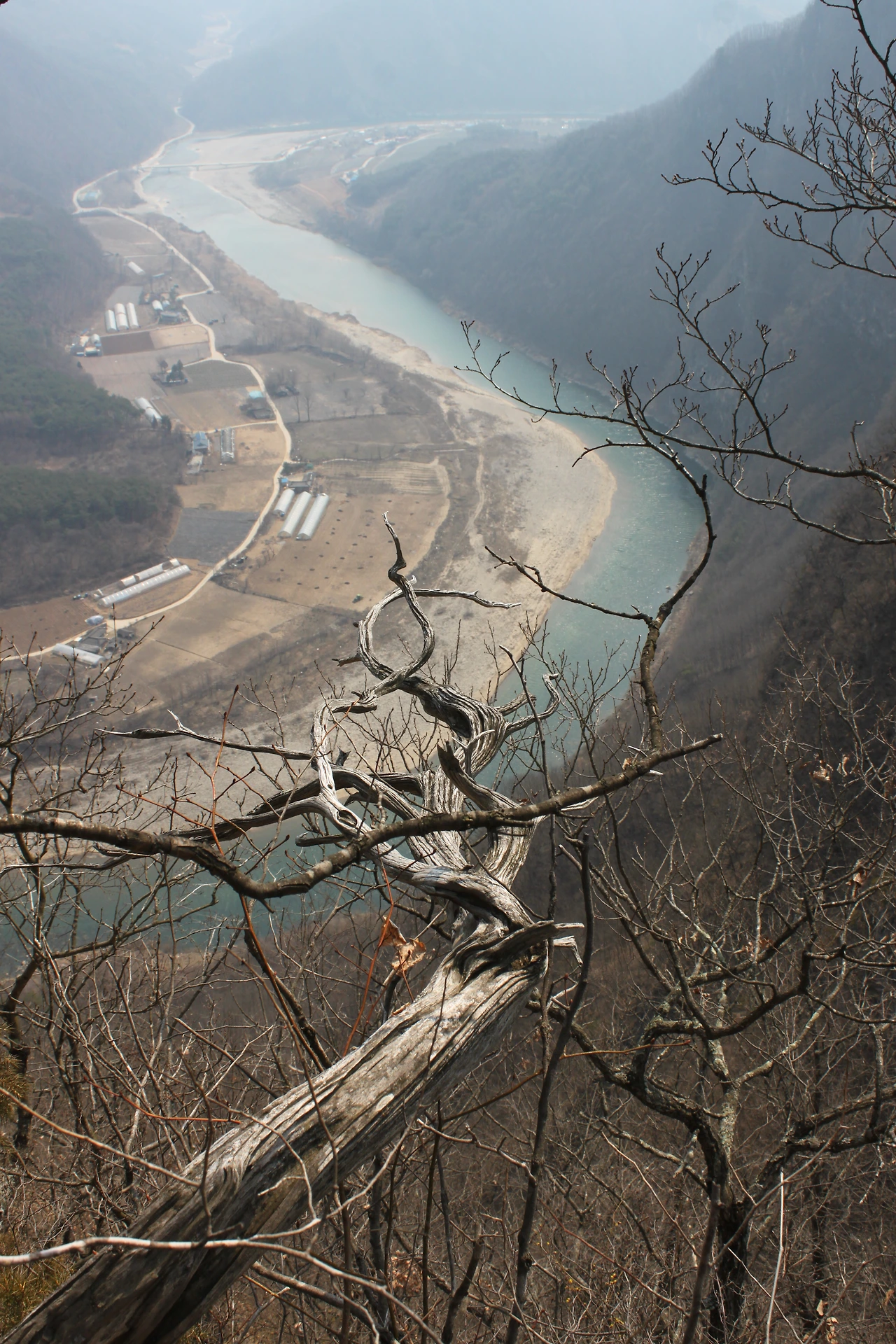 정선의 동강은 그 물색깔도 찬란할 뿐 아니라 굽이굽이 몰아쳐가는 역동적인 물의 힘찬 모습에도 매료되는 강이다. 남쪽에서는 매화가 진다느니 하는 이야기가 무색하게 강원도 여긴 봄이 더디게 찾아오는 중이다.