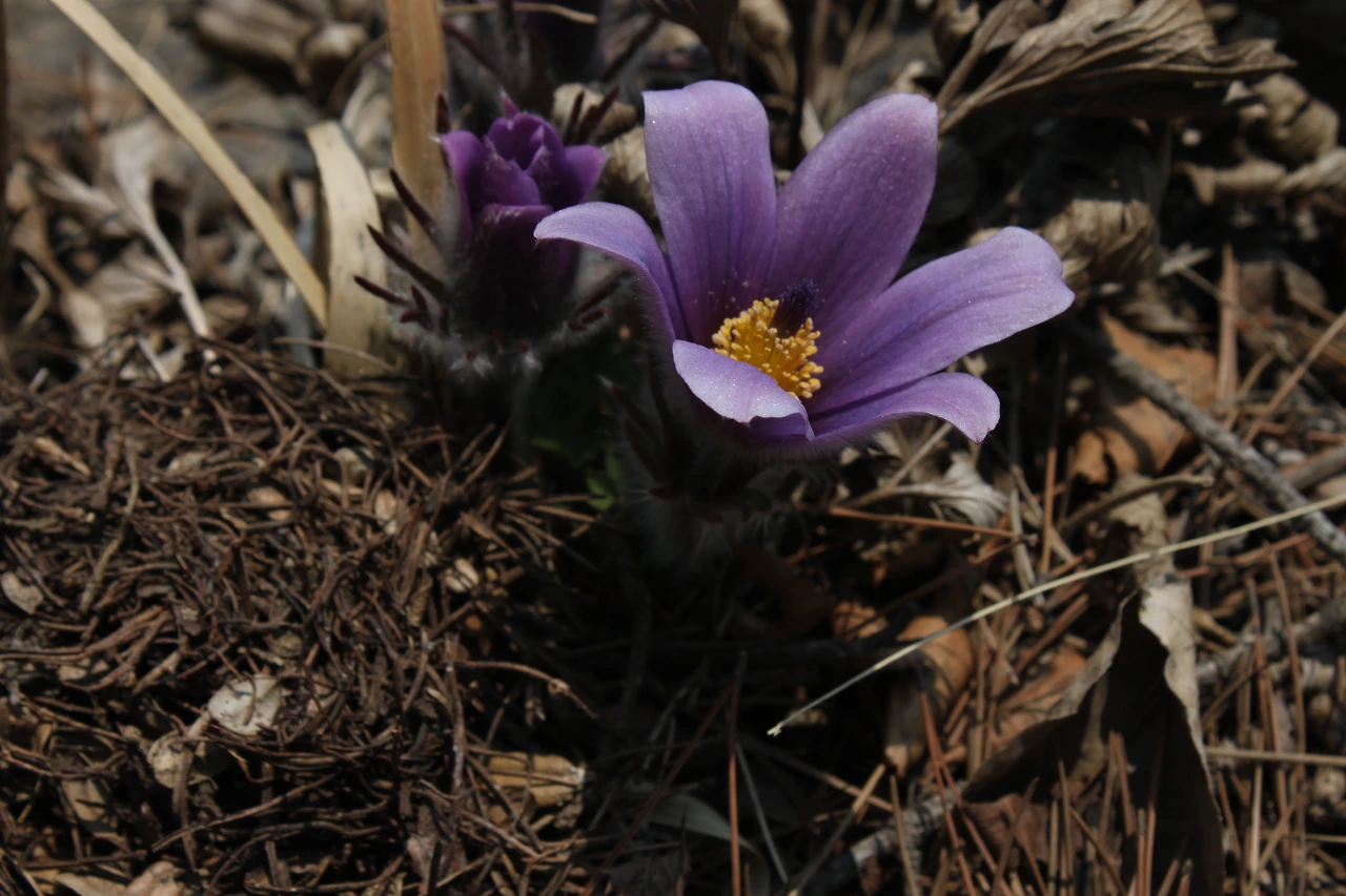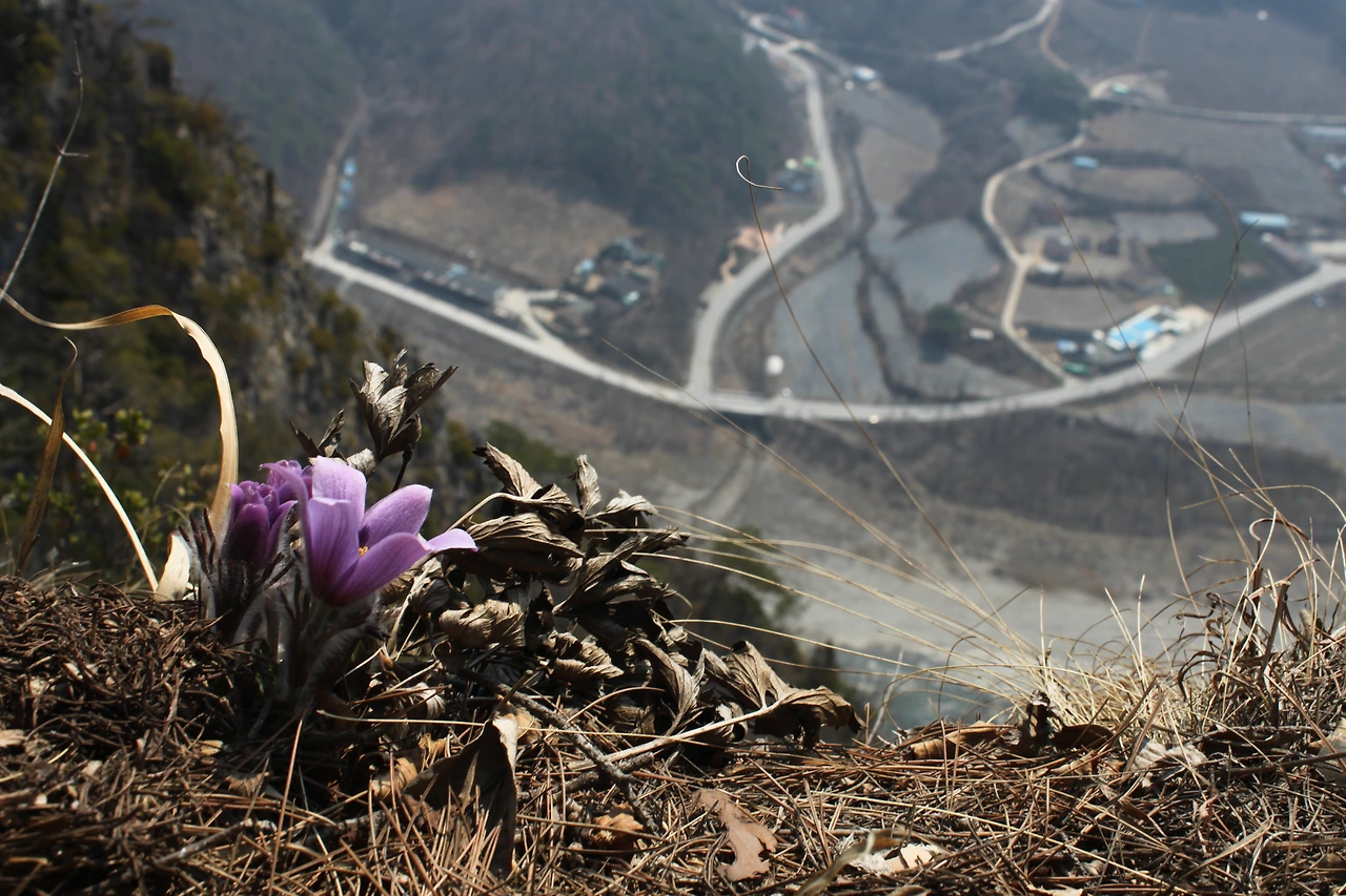 조금 더 올라가 절벽이 시작되는 곳에서 친구가 나를 부른다. 그곳에 올라서니 그쪽으론 바로 수직 절벽이 깎아지르고 있었고, 그 절벽 끝에 보랏빛 세 송이가 부끄러운 듯 자신의 아름다움을 뽐내고 있었다. 왜 이렇게 아름다운 꽃을 '할미꽃'이라 부르기 시작했을까? 어렸을 때 읽은 꽃말 이야기에 '할미꽃'은 더욱 아름답고 슬프게 보였다. 홀로 된 어머니가 세 딸에게 박대받고 죽어 할미꽃이 되었다는 내용의 이야기는 '할미꽃'을 볼 때마다 그 서글픔이 묻어 나오는 듯했다.