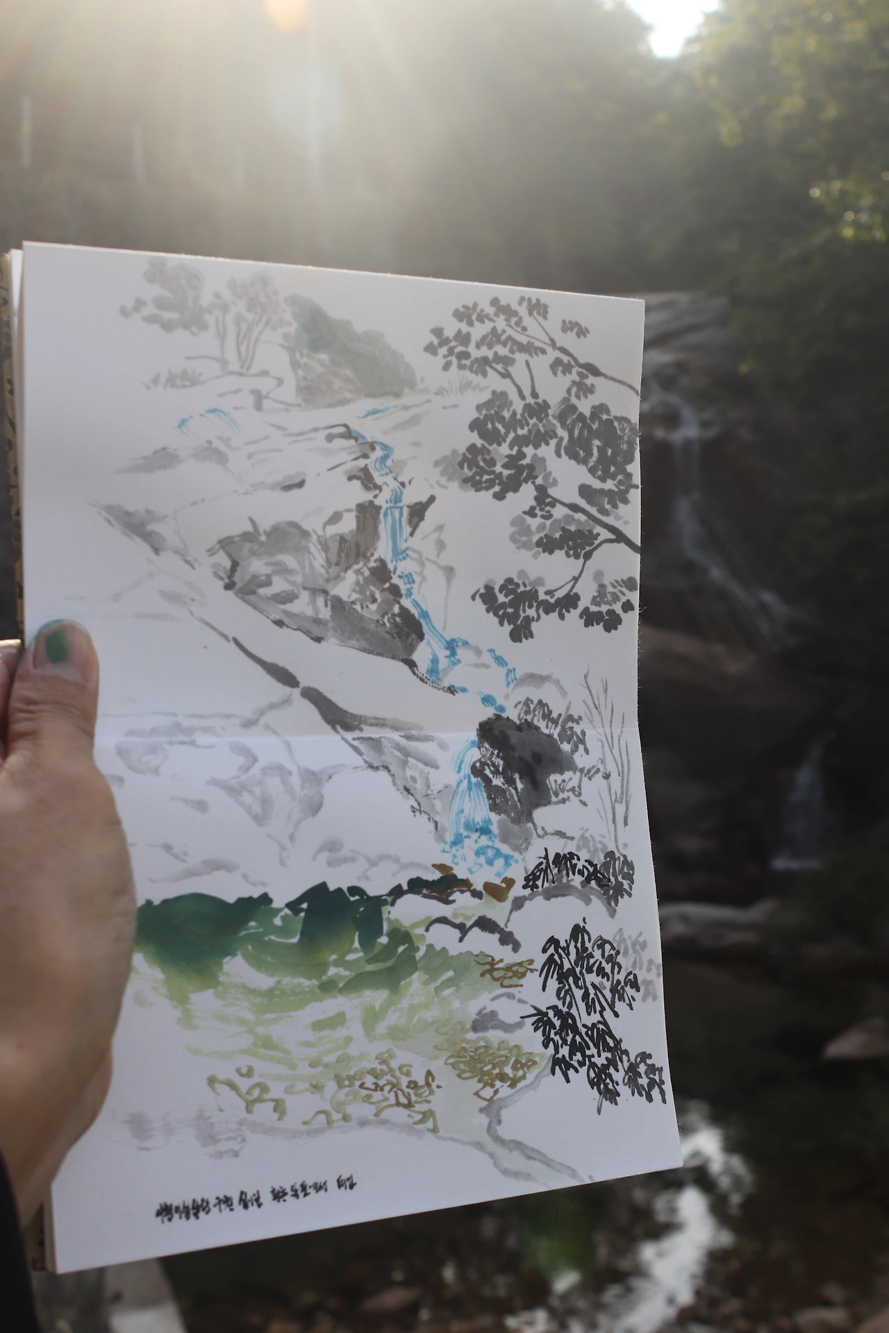 그곳 경사진 길에서 여장을 잠시 풀어놓고 시원한 물줄기를 화첩에 담아본다.