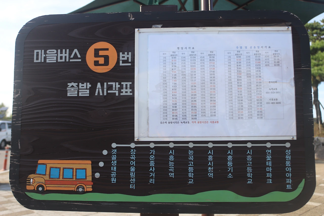 새로 생긴 지하철 서해선을 타고 시흥능곡역으로 가서 마을버스 5번을 타고 '시흥 갯골 공원'으로 간다.