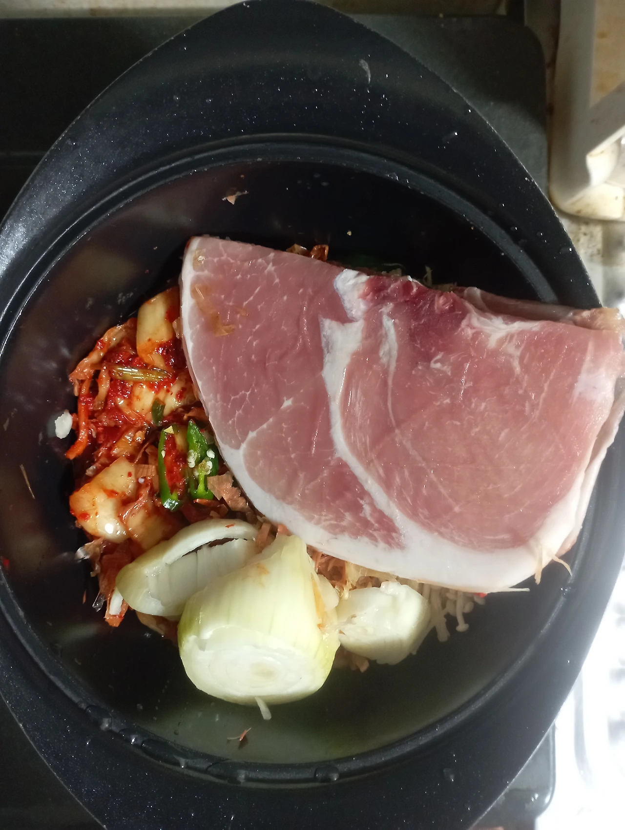 비지찌개는 소고기도 스팸도 소시지도 안 어울린다. 오로지 돼지고기만이 궁합이 맞는다.