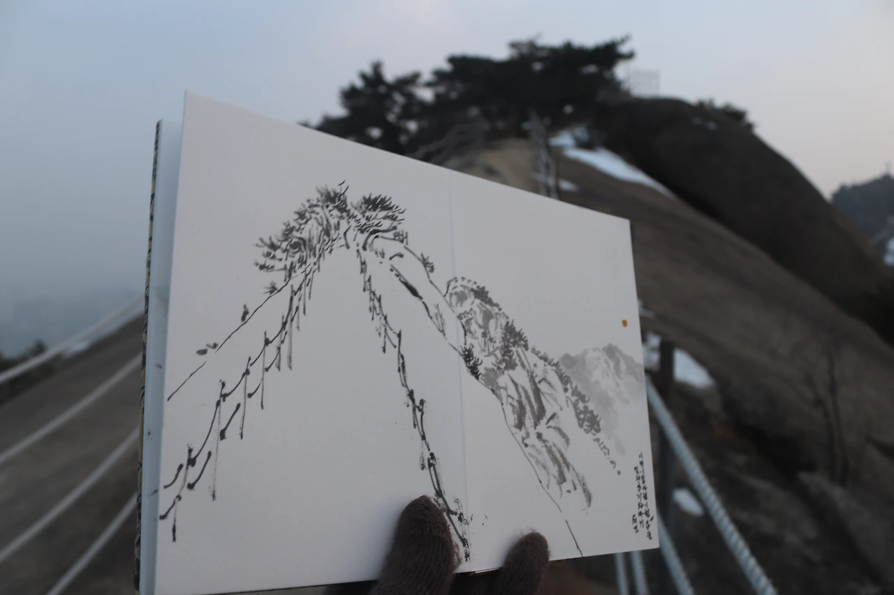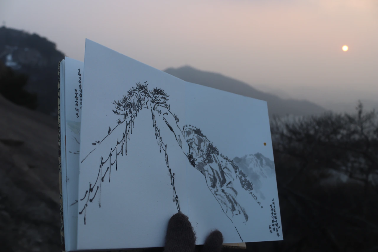 인왕산, 겨울산, 서울야경, 한국화, 동양화, 어반스케치, 스케치