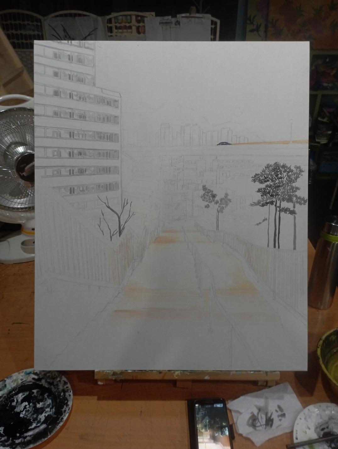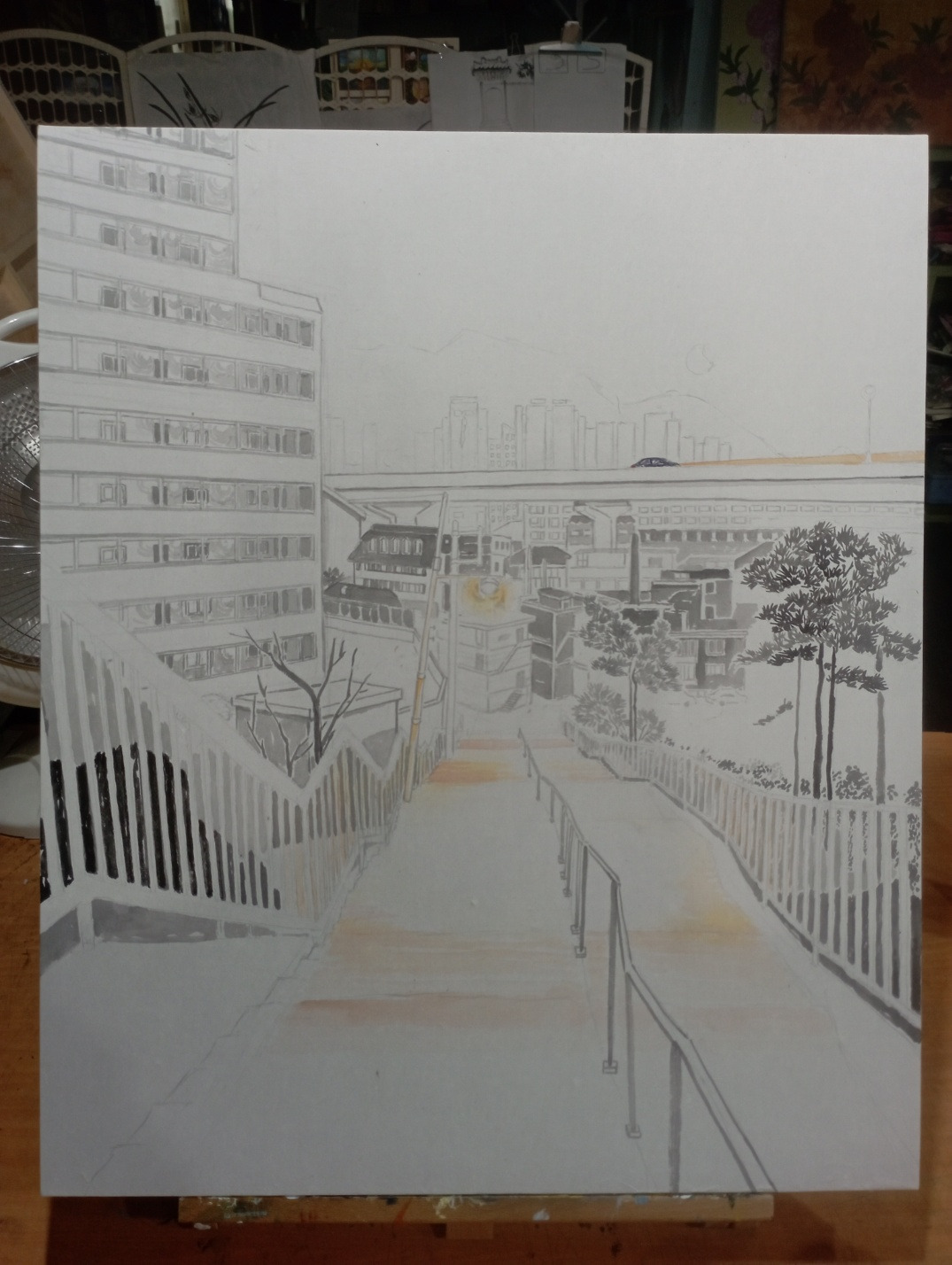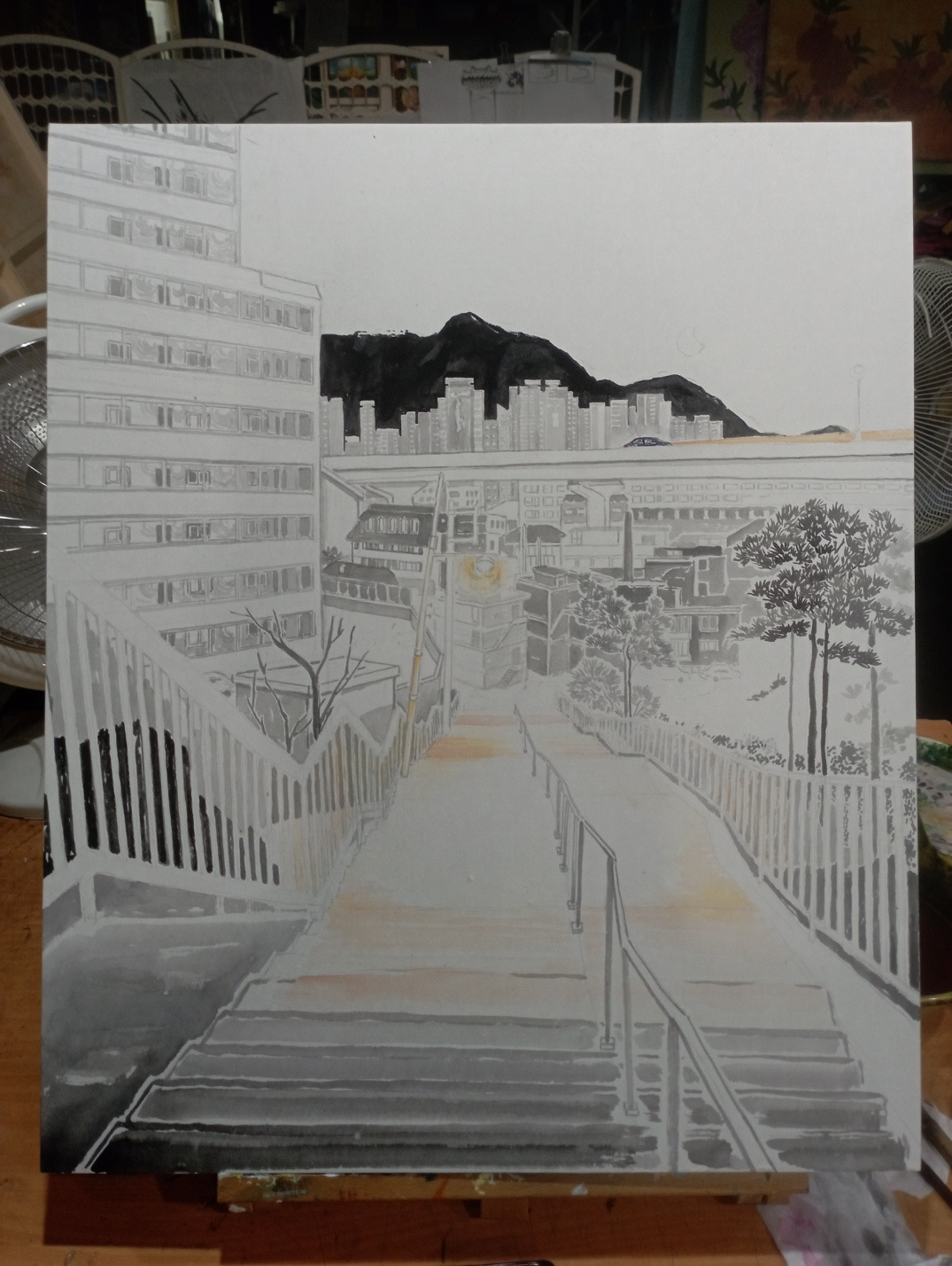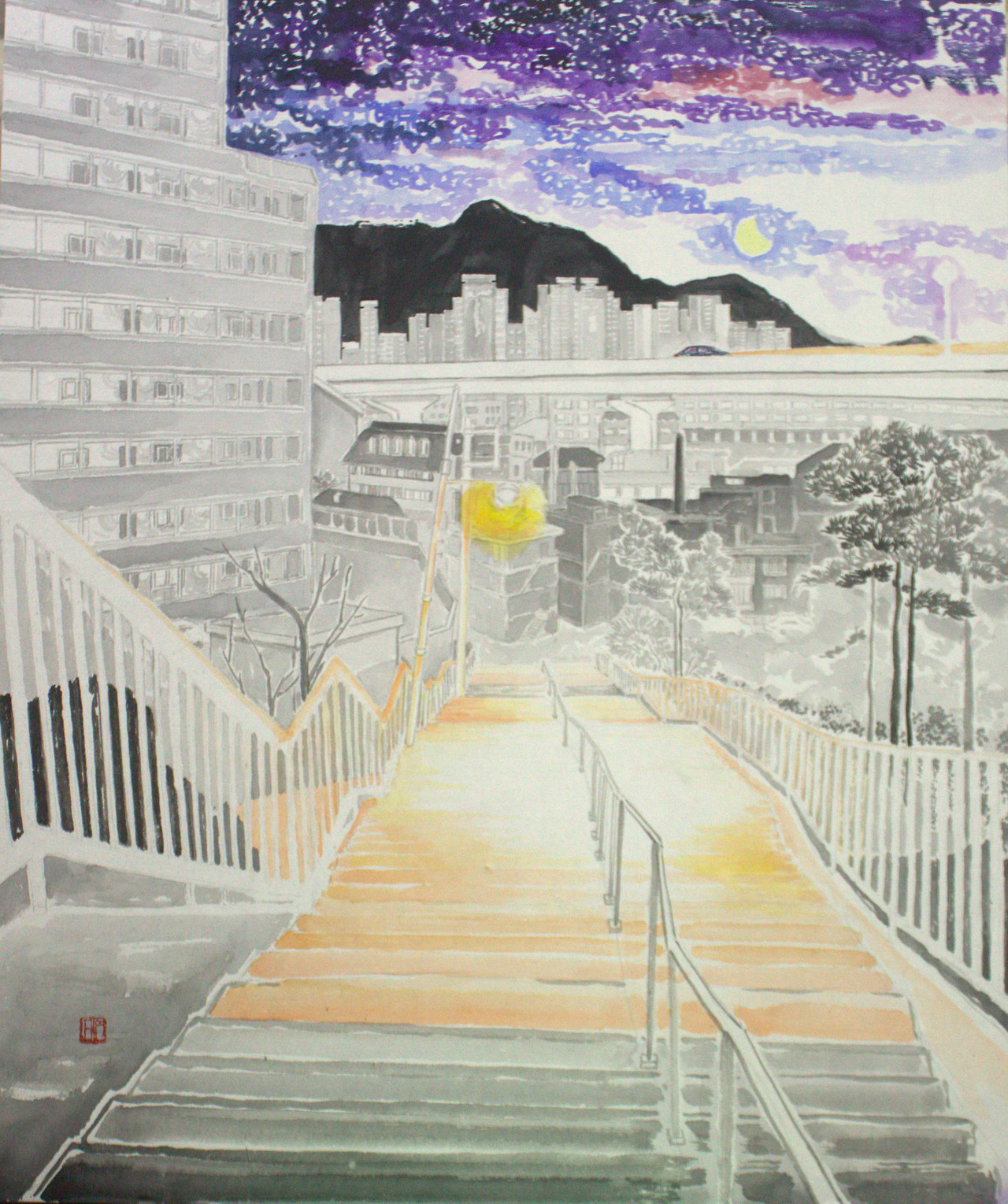 한국화, 동양화, 회화, 김태연작가, 홍제동, 인왕산, 야경, 수묵담채화